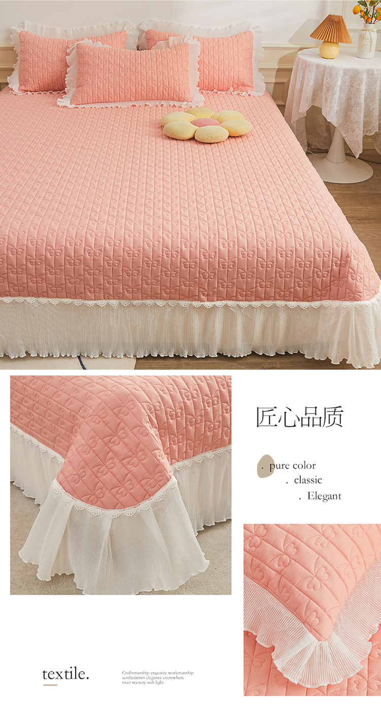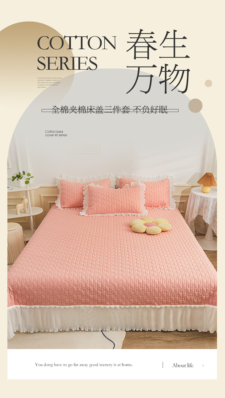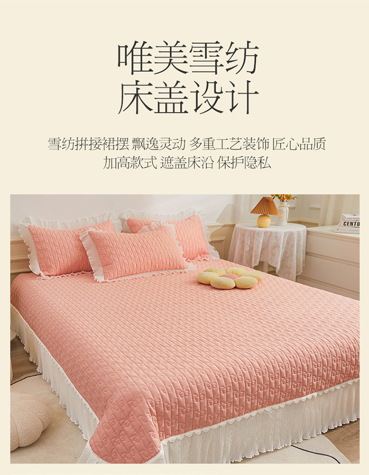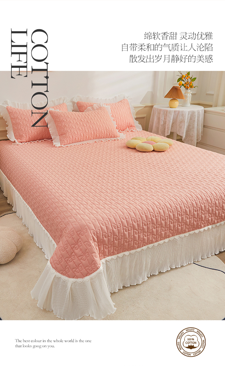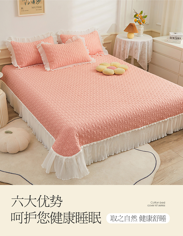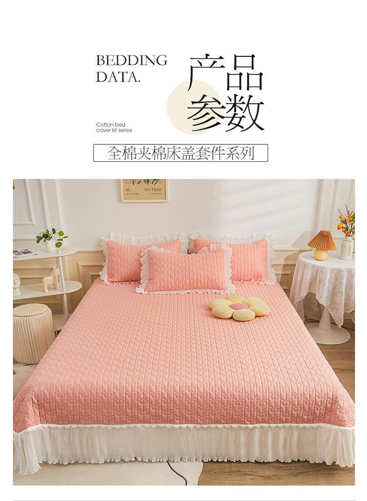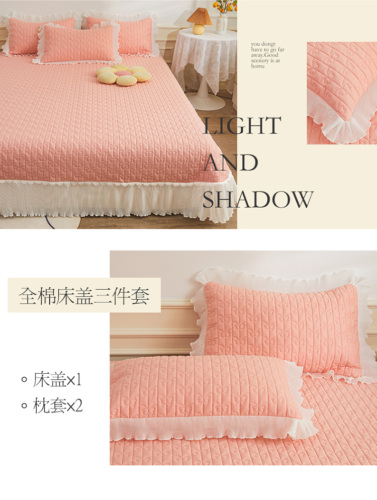 当前位置: 91家纺网 > 商品网购 > 床品套件 > 四件套 > 全棉普通四件套 > 宜凡家纺 2023新款全棉花边床盖三四件套 雅蜜粉