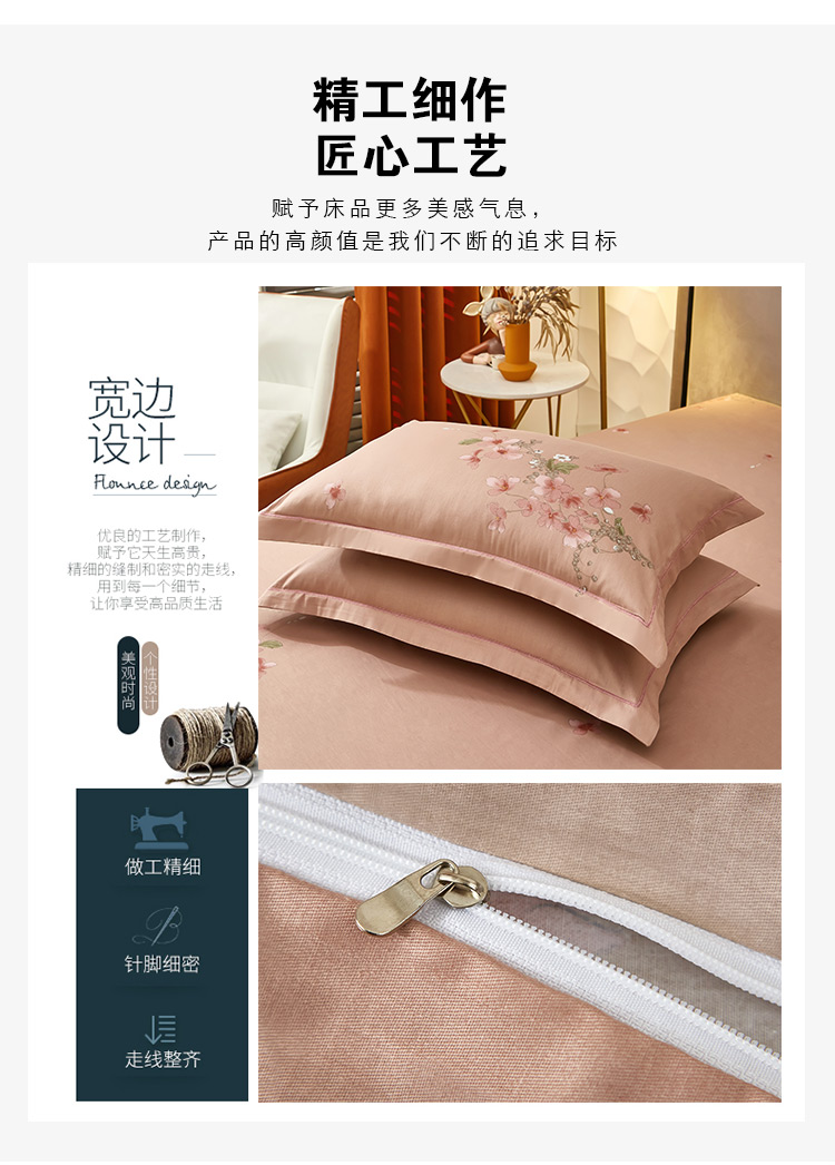 (总)雲归梦 2021新款全棉生态磨毛刺绣四件套,慕思-橙色,慕思-粉紫,慕思-灰,慕思-米黄,慕思-青绿,慕思-天蓝