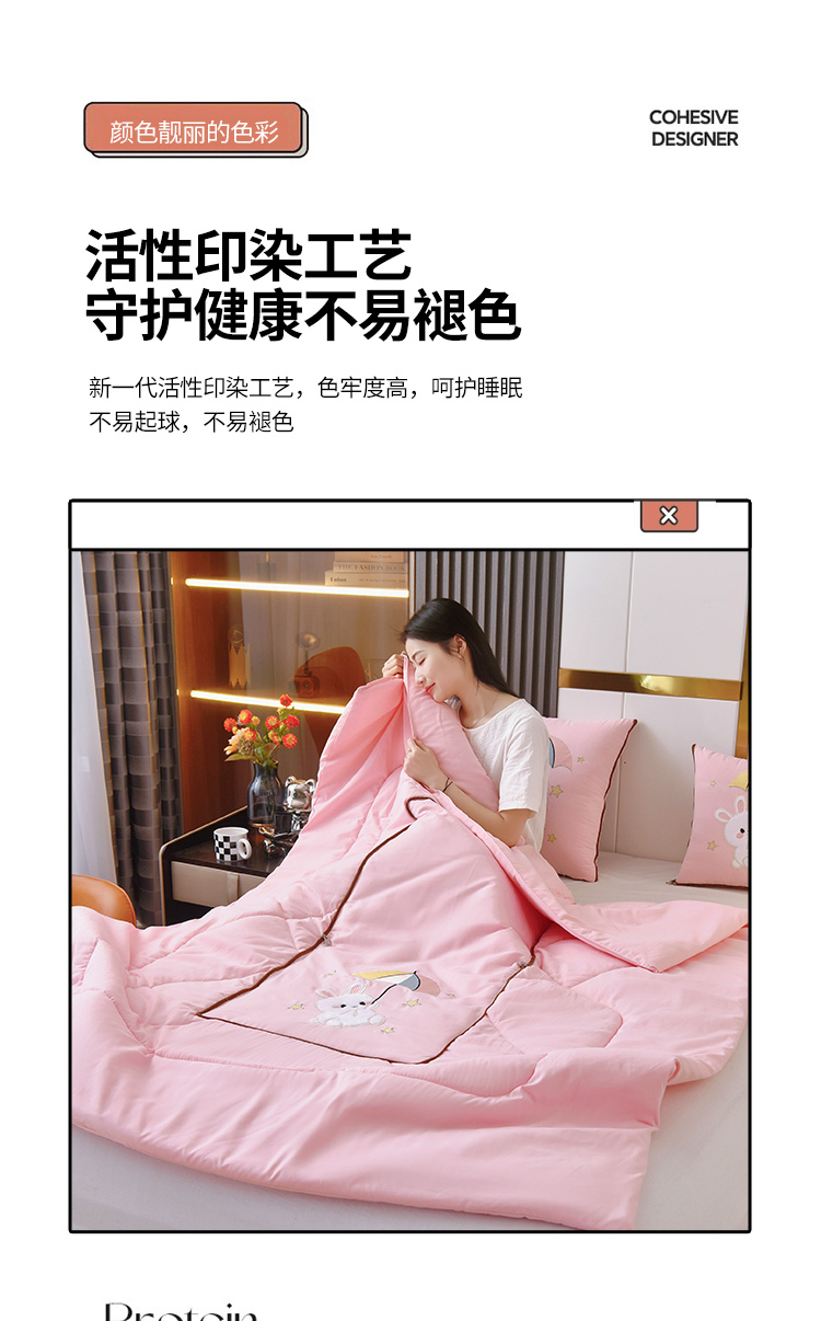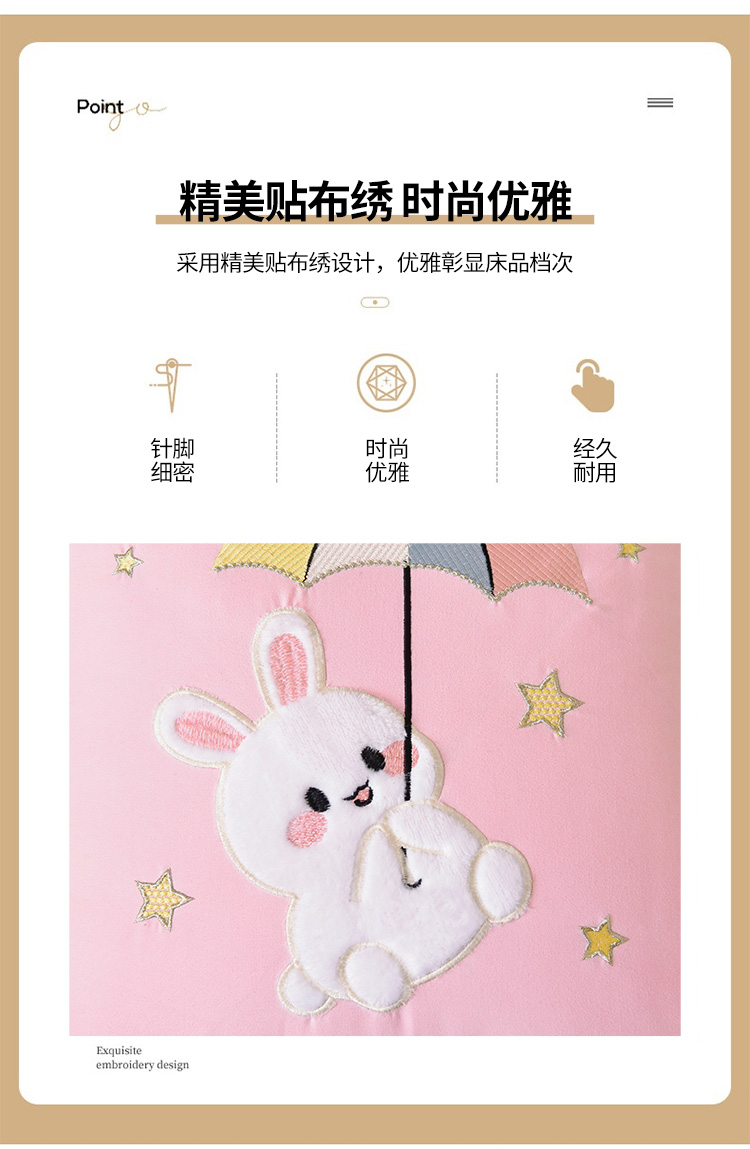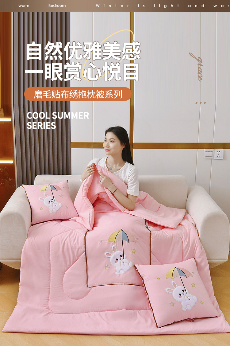 阳光依佰 2023新款磨毛贴布绣四季款抱枕被-梦里兔 梦里兔-粉色
