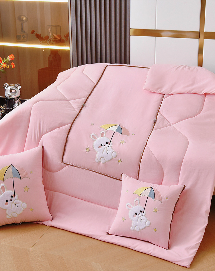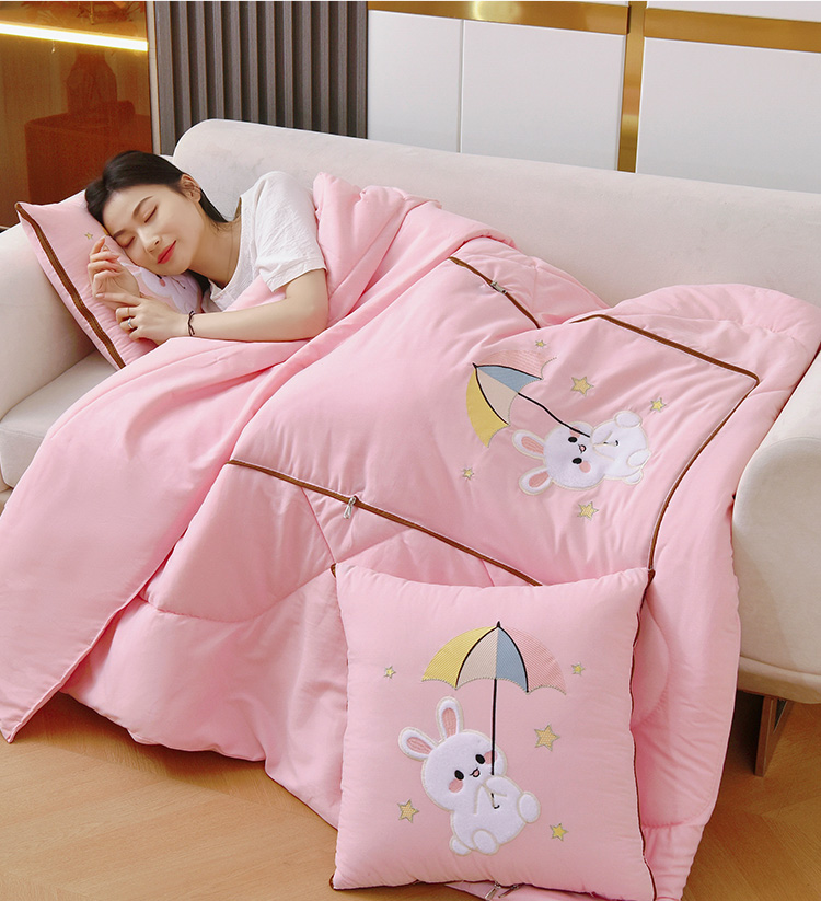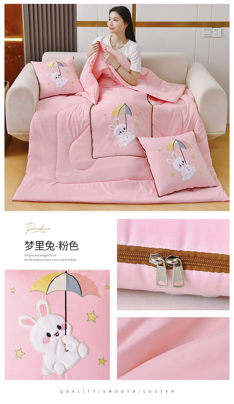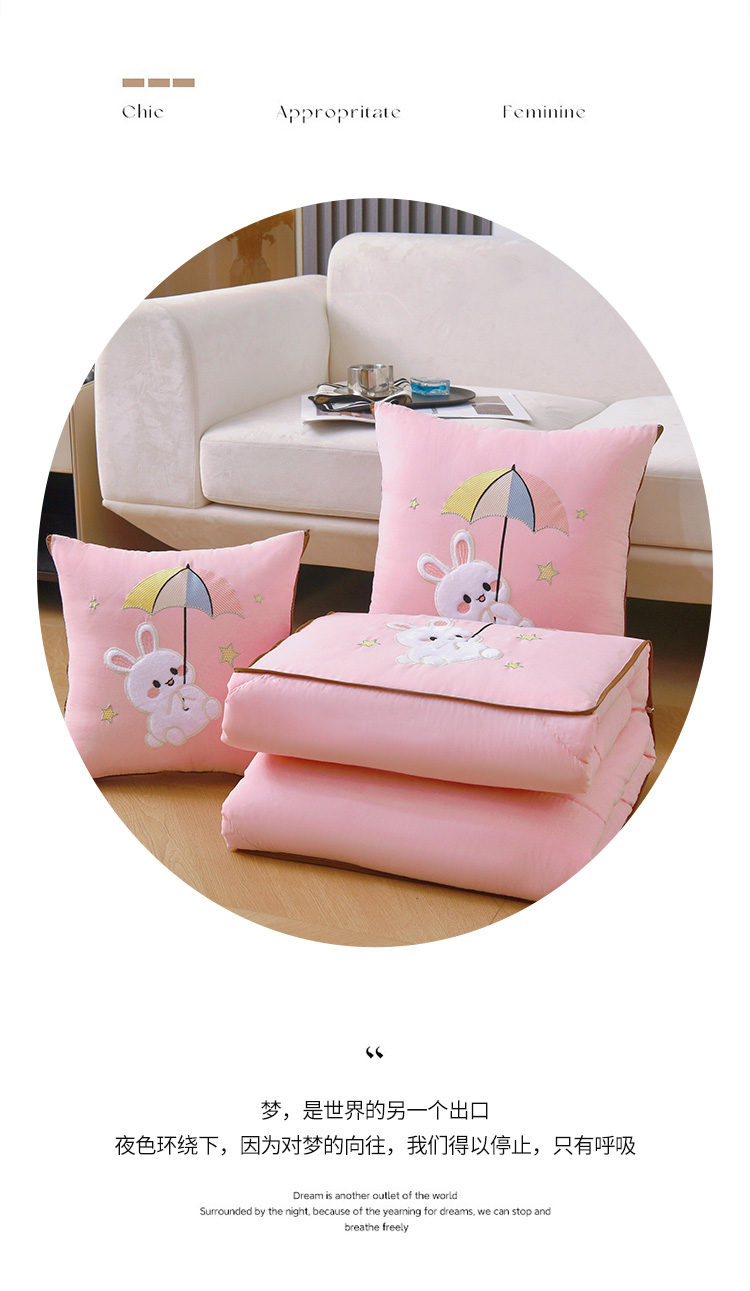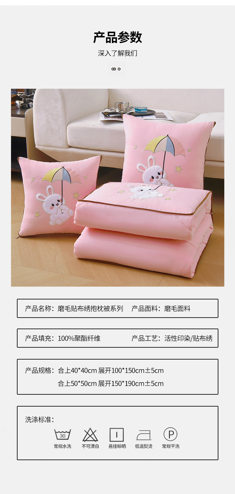 商品名称:阳光依佰 2023新款磨毛贴布绣四季款抱枕被-梦里兔 梦里兔-粉色