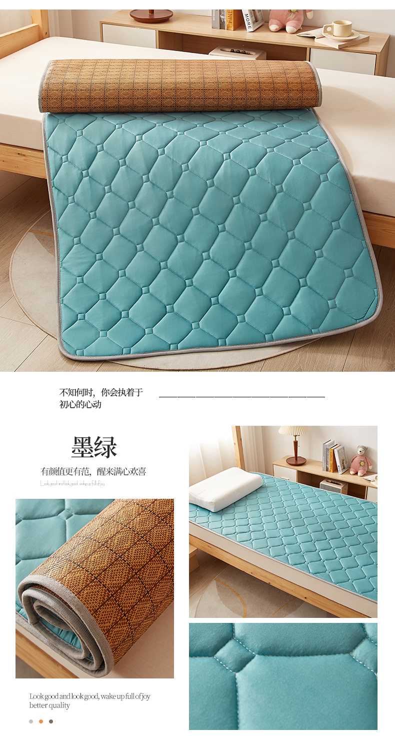 商品名称:花言狐语 2025新款AB双面可用藤席夹棉床褥地垫单人款 墨绿