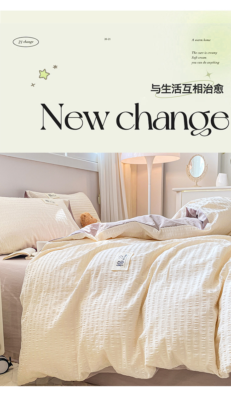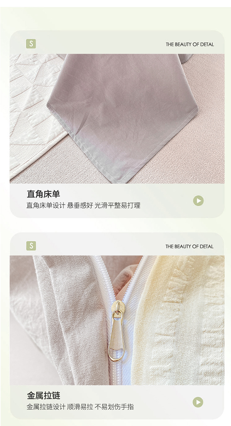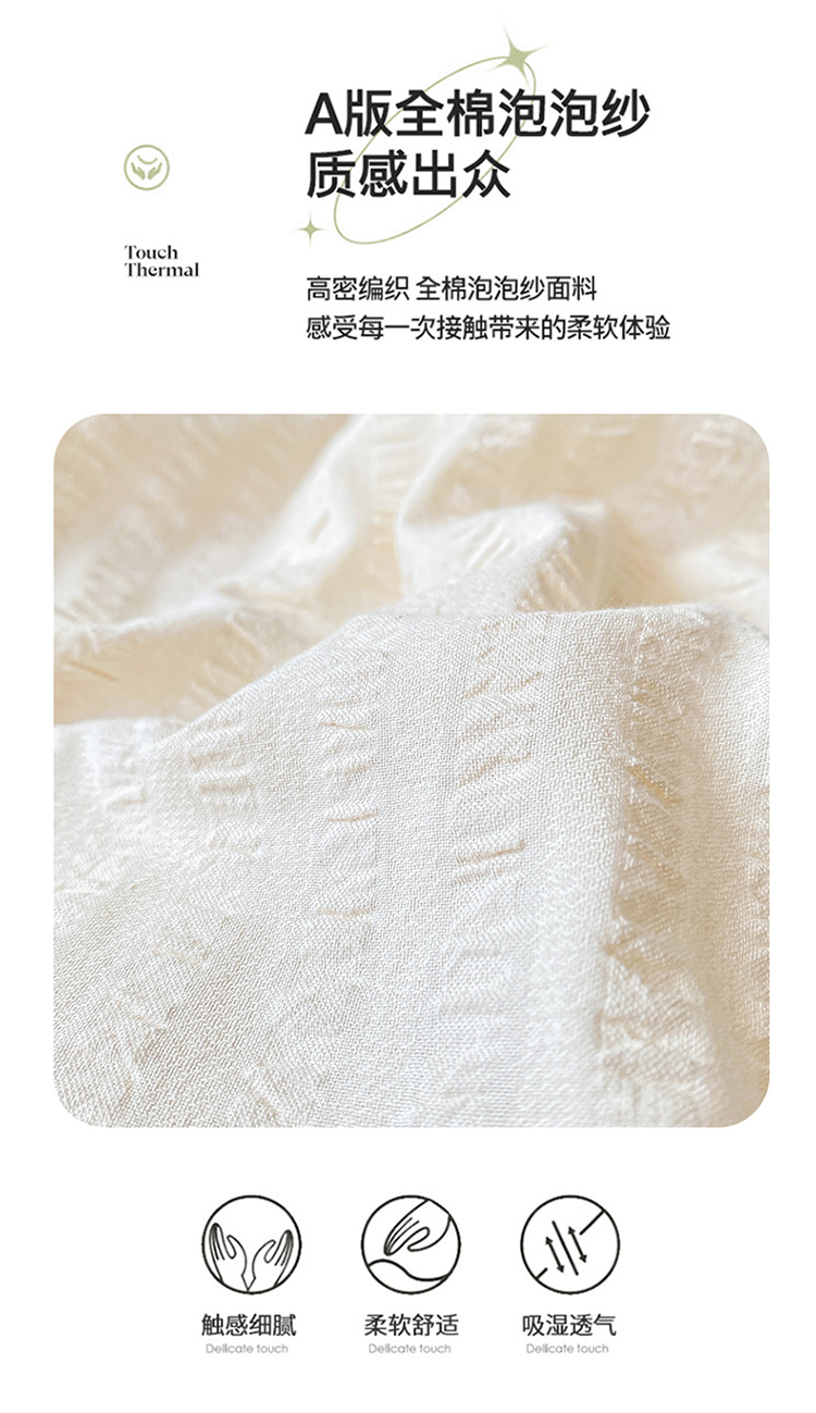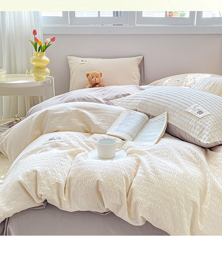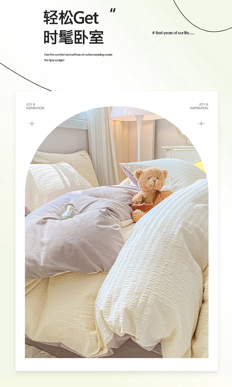 九沐良品 新款全棉泡泡纱四件套 珍珠白