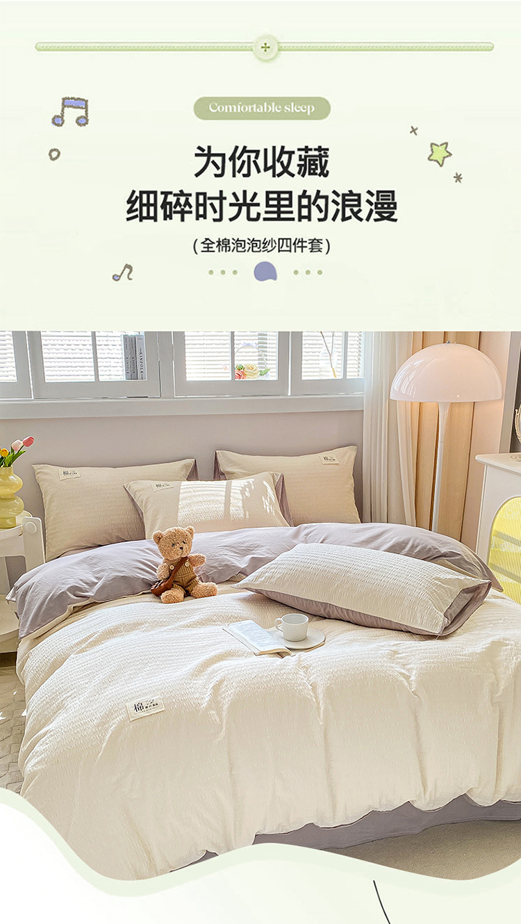 (总)九沐良品 2025新款全棉双层皱皱沙纯色四件套--安娜,安娜-水绿,安娜-浅灰,安娜-雾蓝,安娜-豆沙,安娜-奶咖