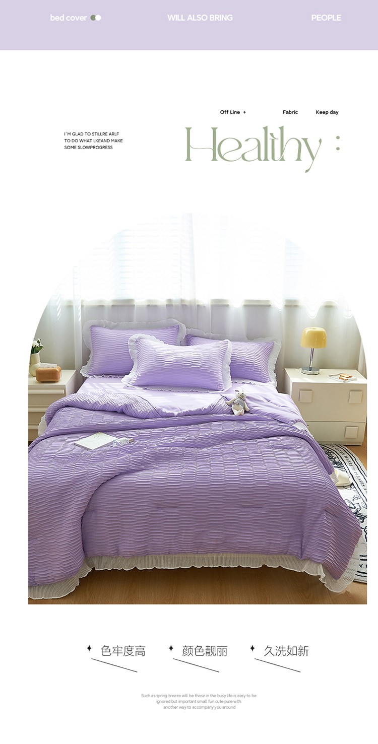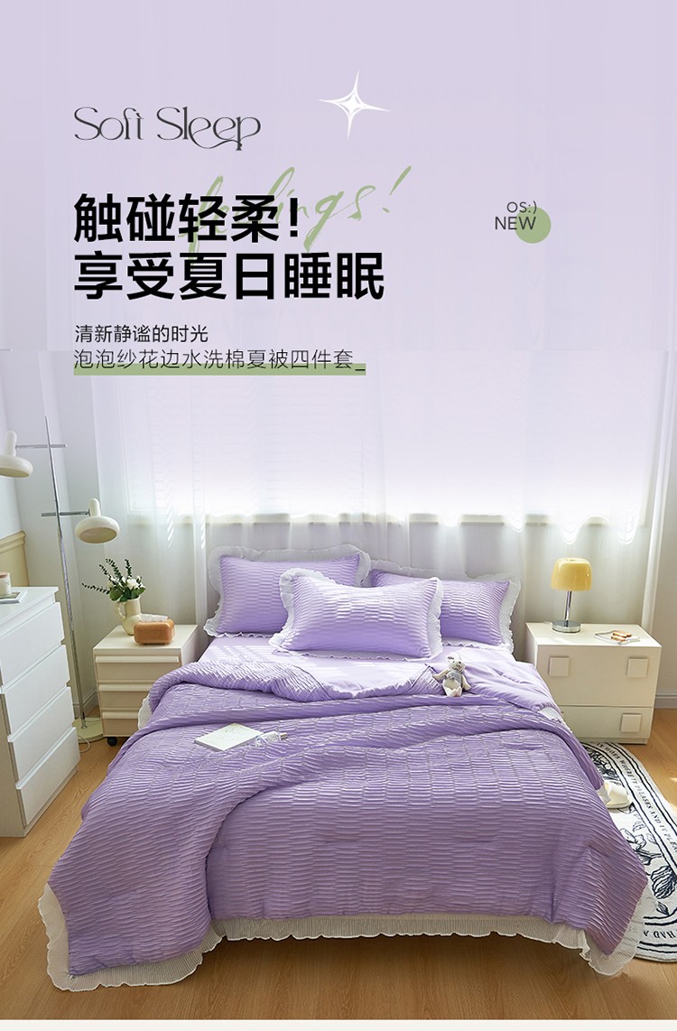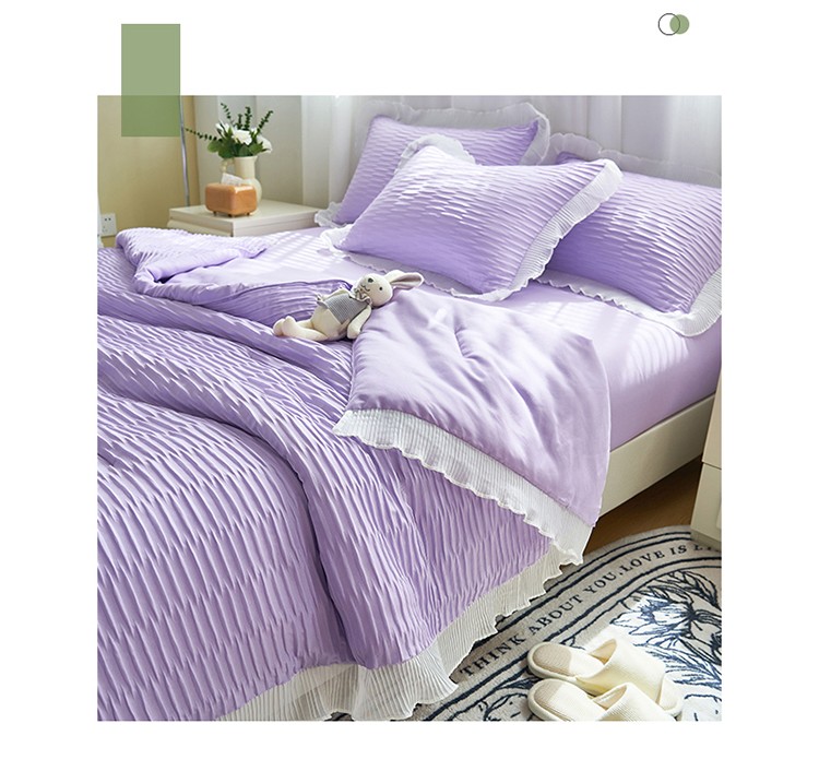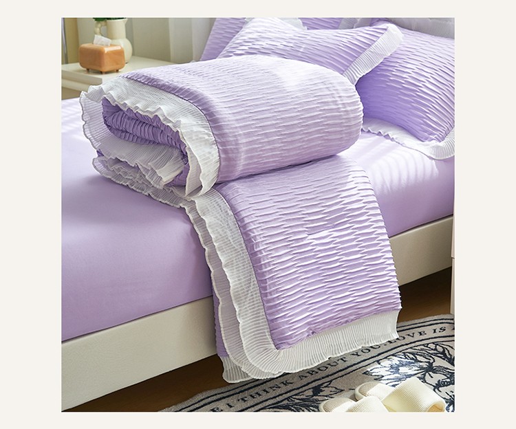 当前位置: 91家纺网 > 商品网购 > 床品套件 > 四件套 > 夏被四件套 > 畅销被业 2024新款泡泡纱花边夏被四件套 花边款泡泡纱-浅紫色