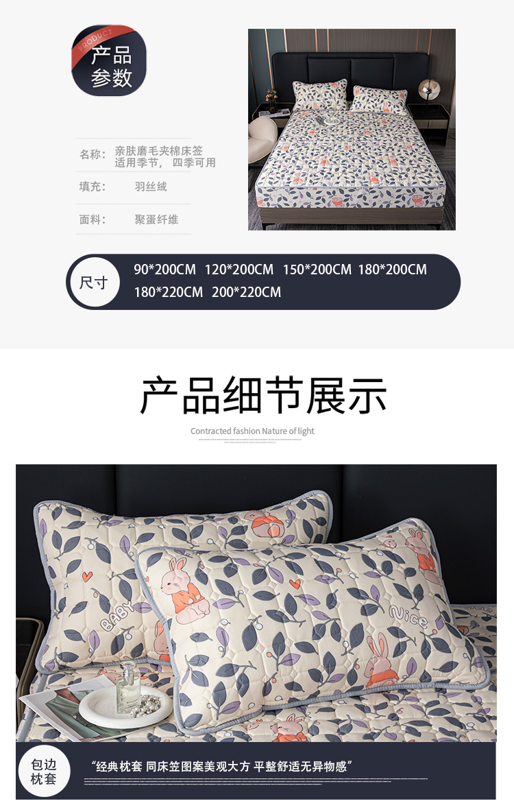 • 91家纺网 家纺一手货源 找家纺 暖季 2025新款印花磨毛夹棉床笠 花中兔
