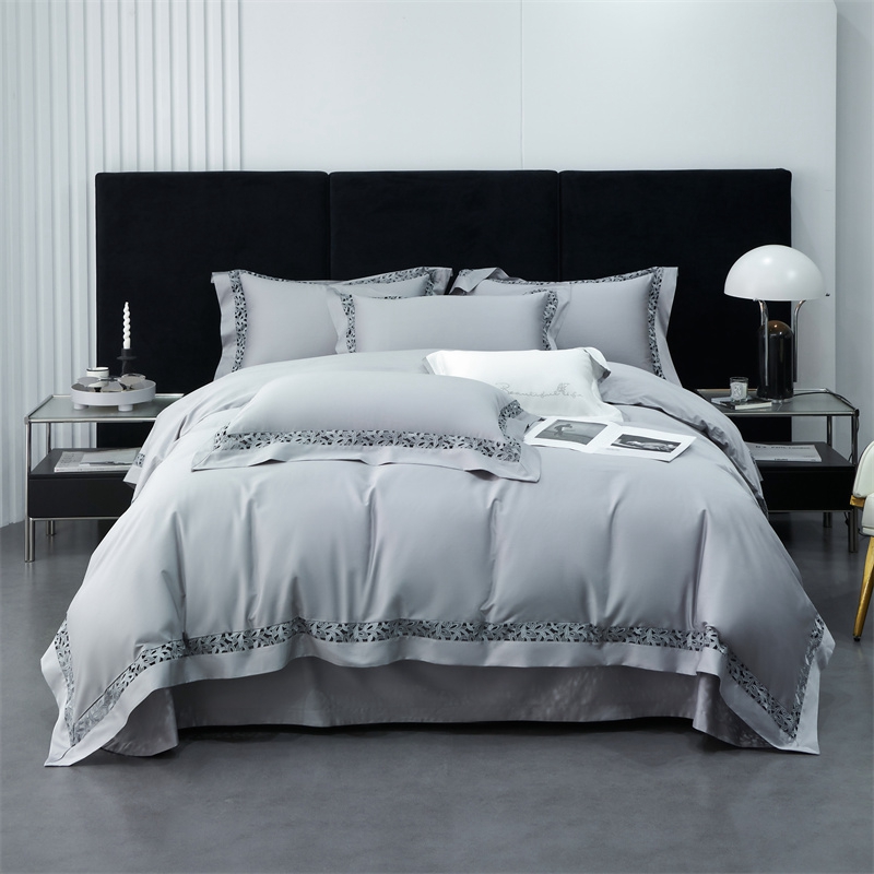 总榻尚家居 2023新款格瑞斯系列100贡缎长绒棉四件套工艺款四件套,格瑞斯紫,格瑞斯白,格瑞斯灰,格瑞斯蓝