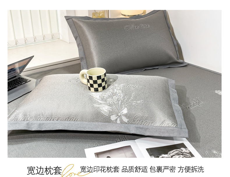 商品名称:柒月 2023新款600D提花冰丝席 捧花-灰