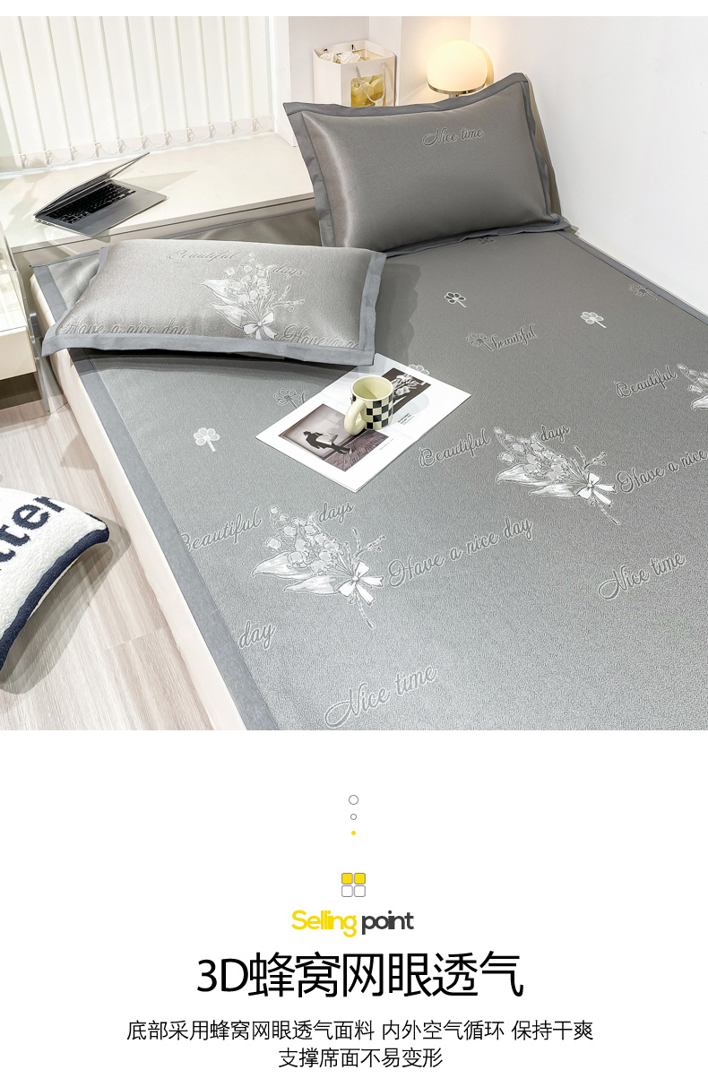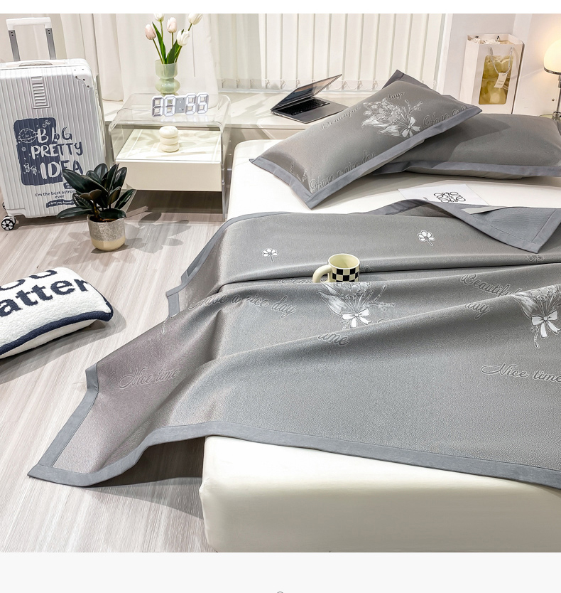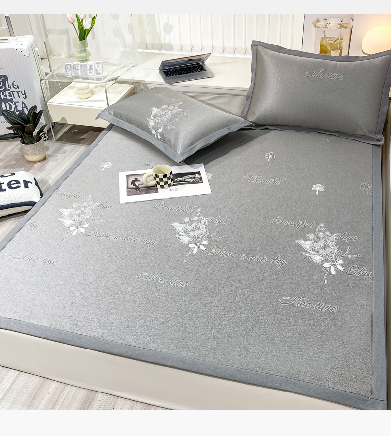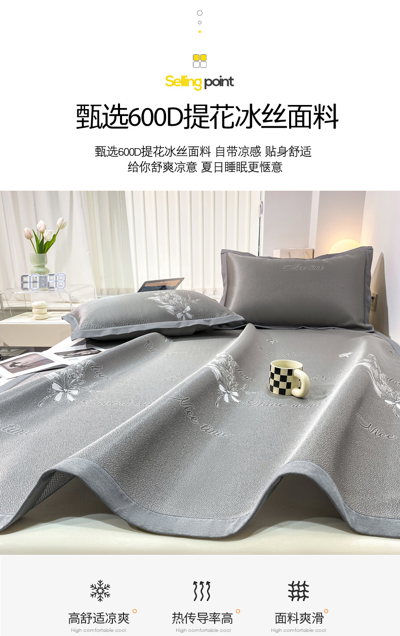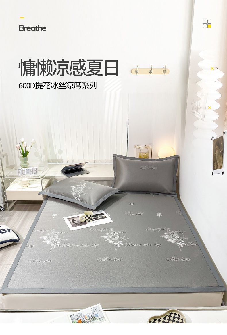柒月 2023新款600D提花冰丝席 捧花-灰