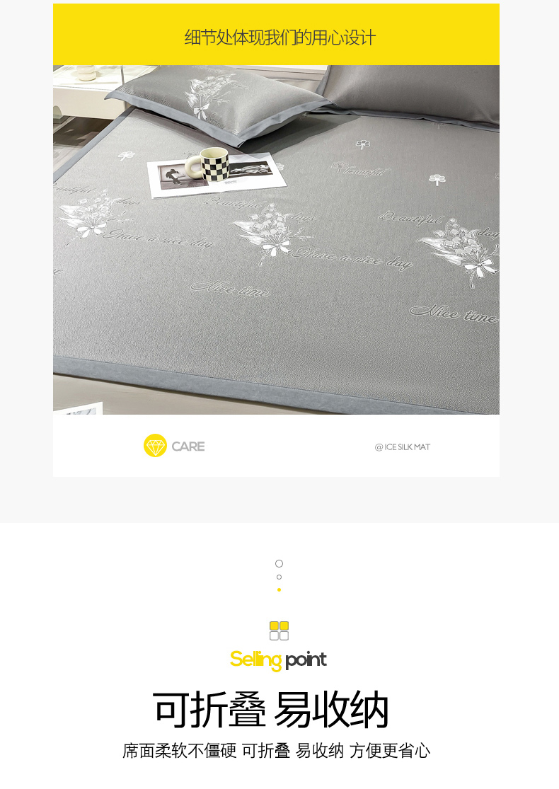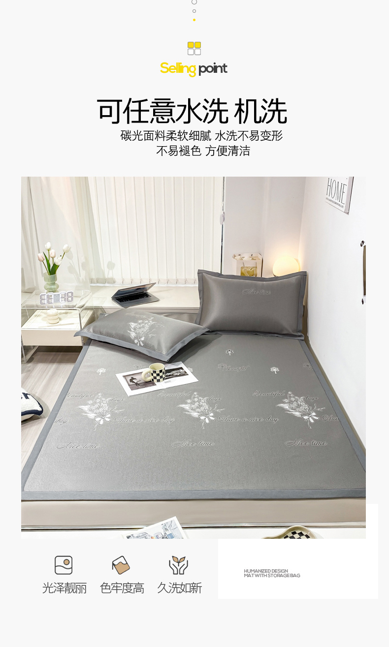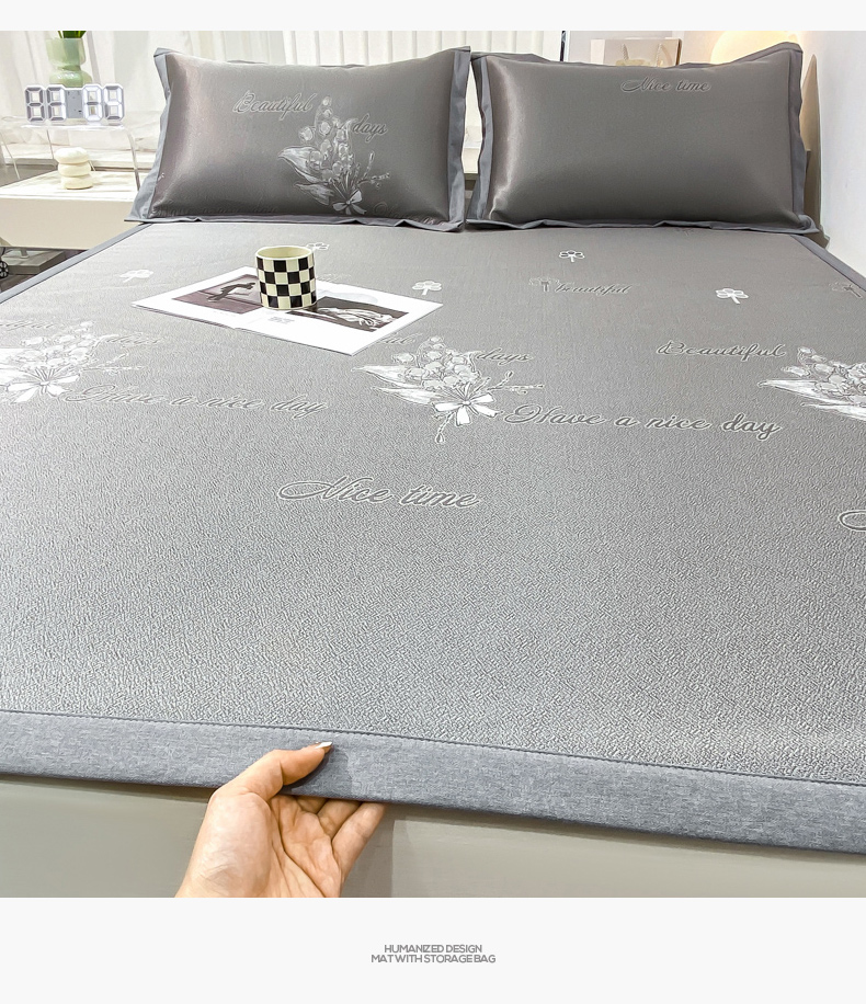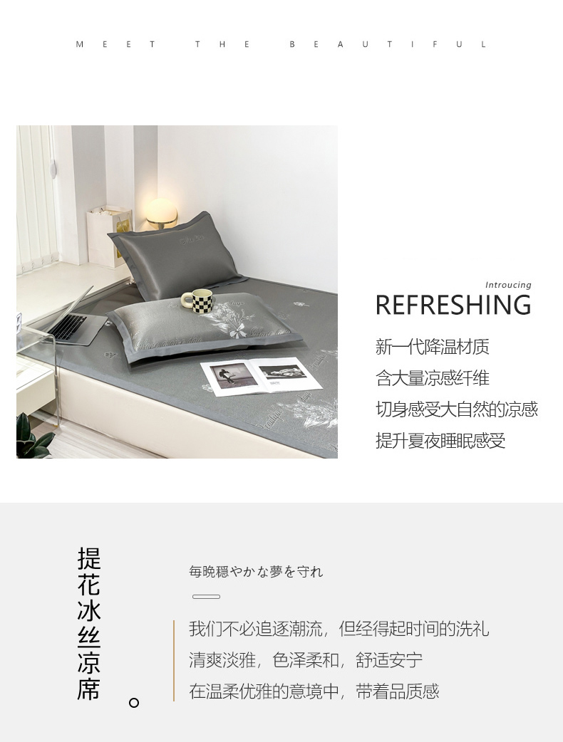 柒月 2023新款600D提花冰丝席 捧花-灰