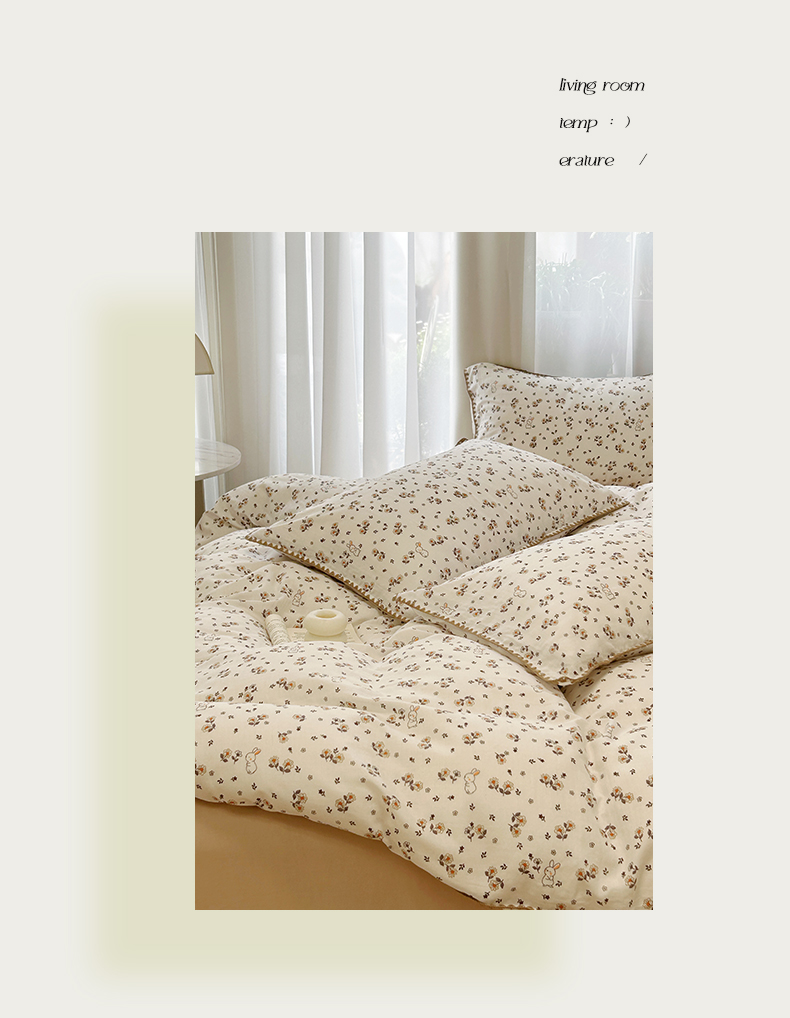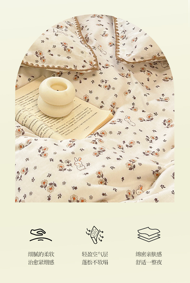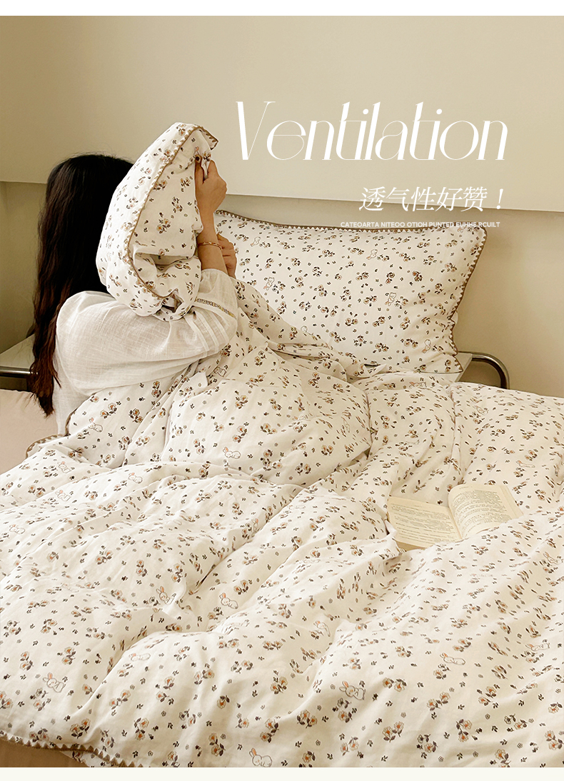 商品名称:雅居纺家纺 2023新款全棉A类双层纱贝壳边四件套 花丛兔