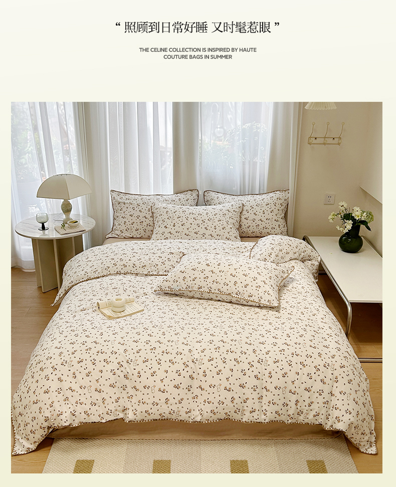 (总)雅居纺家纺 2025新款简约兔绒球球保暖舒适四件套-波点,波点-白咖,波点-粉黄,波点-咖,波点-蓝黄