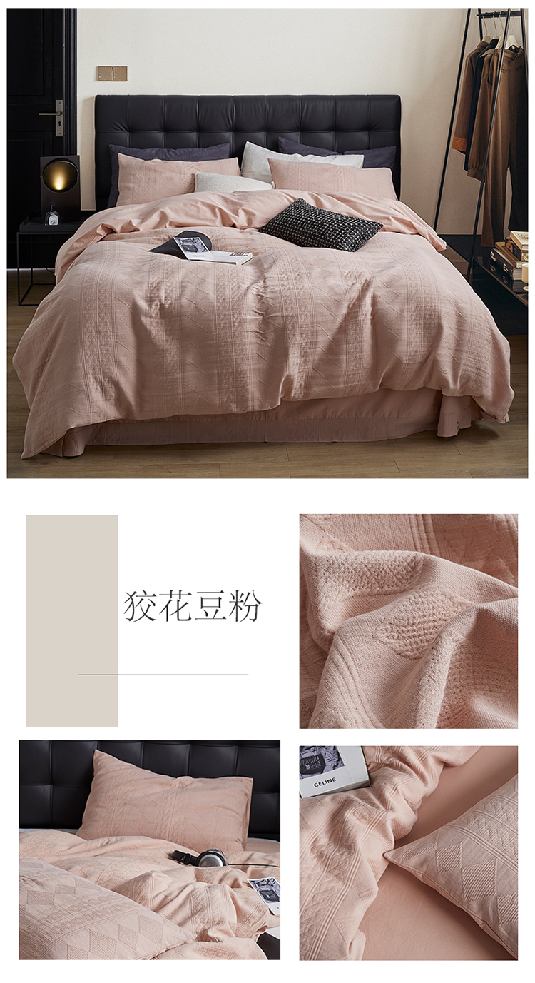 当前位置: 91家纺网 > 商品网购 > 床品套件 > 四件套 > 水洗棉四件套 > 名品优仓2023款水洗棉三层纱提花四件套-狡花系列 狡花豆粉