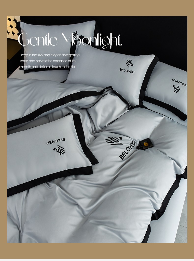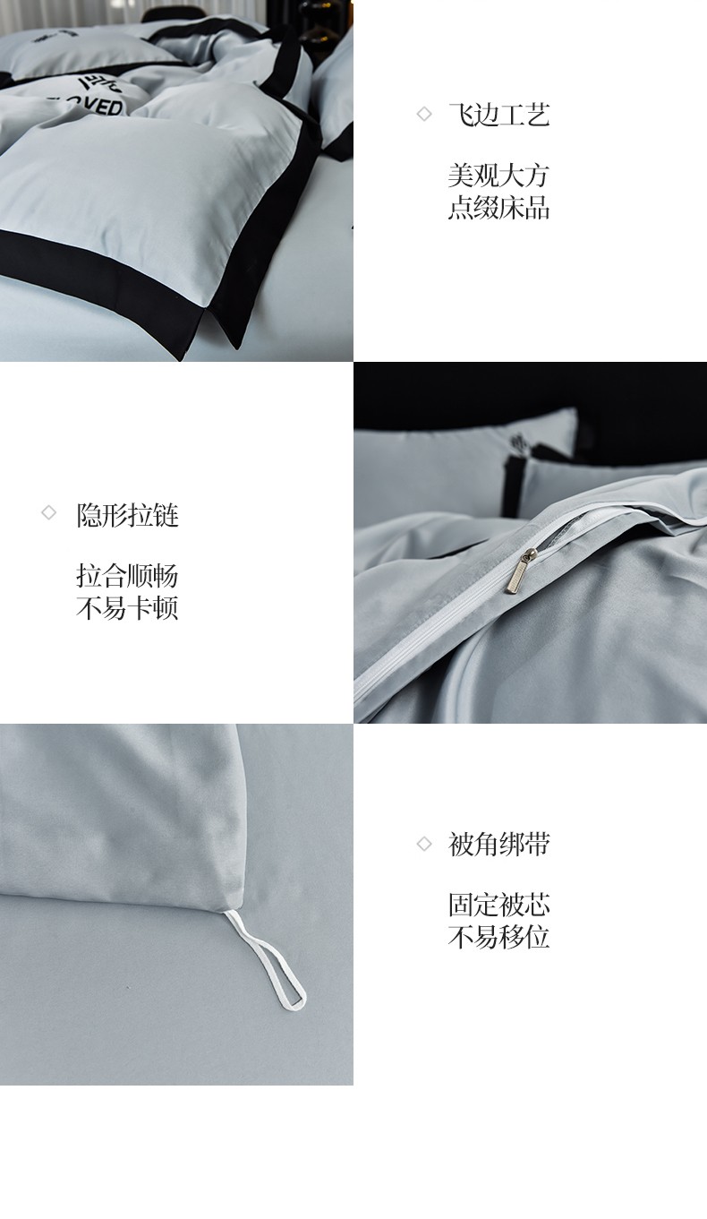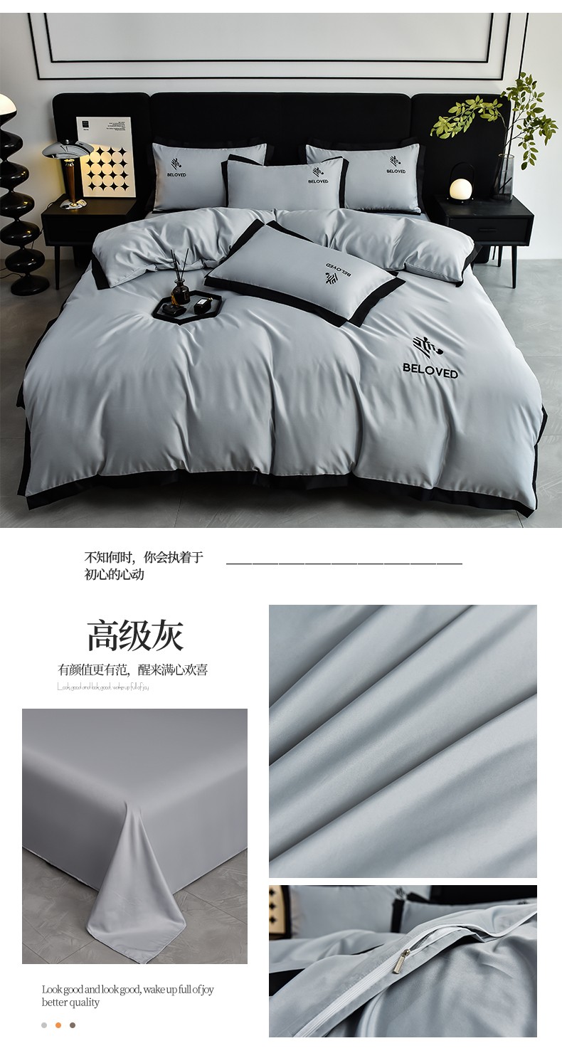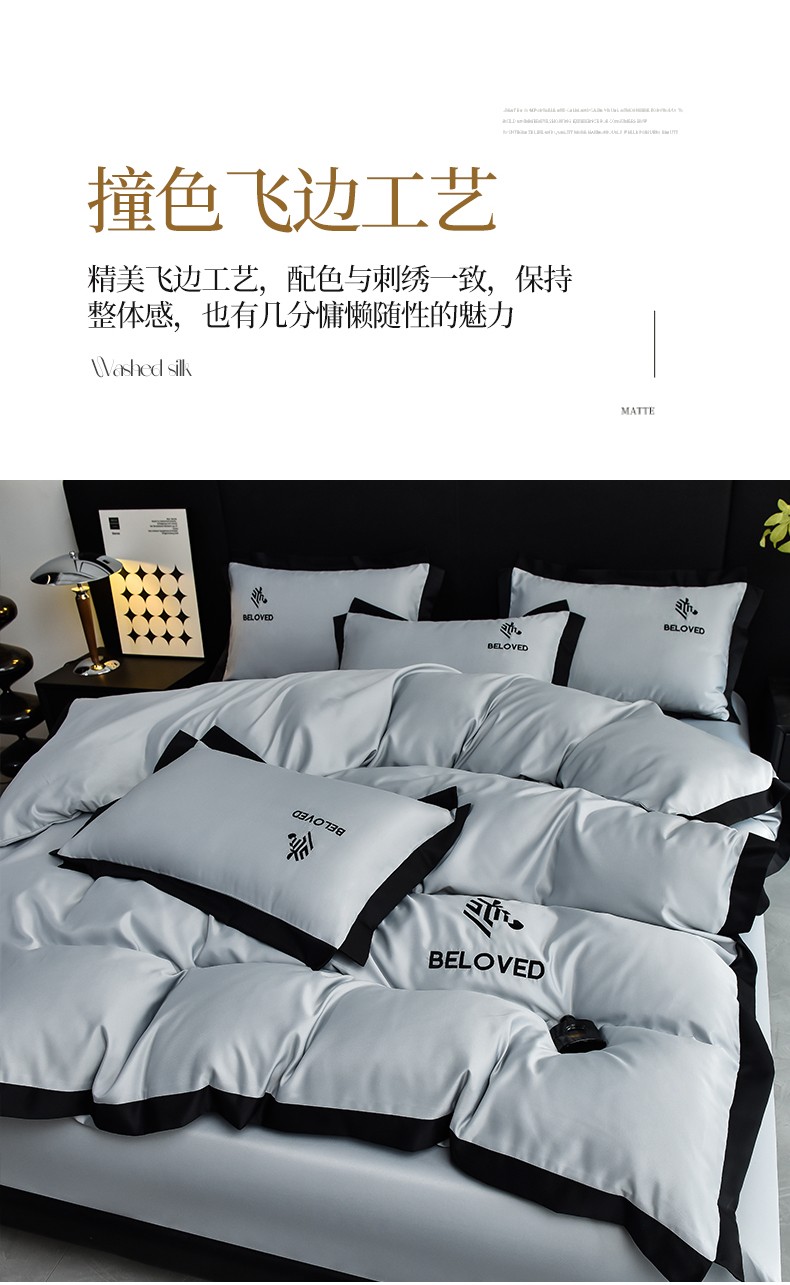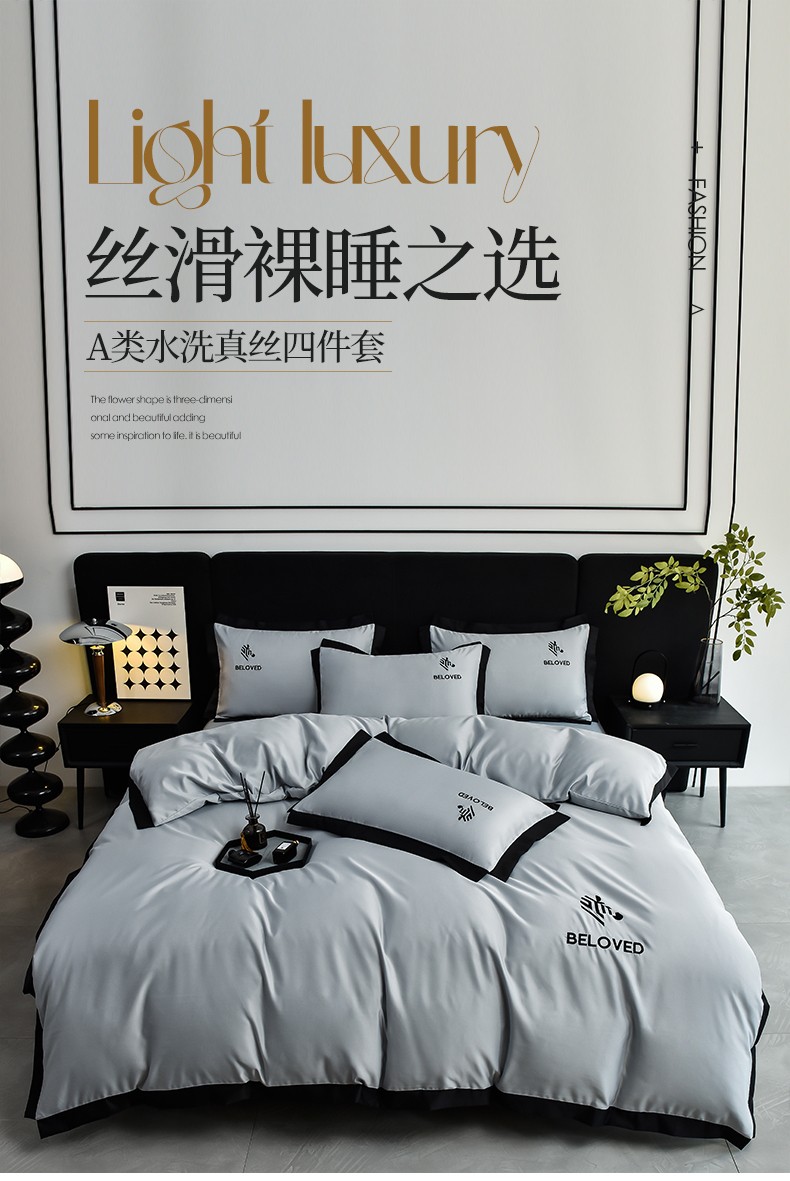 米奈 2024新款A类水洗真丝四件套-安迪 高级灰