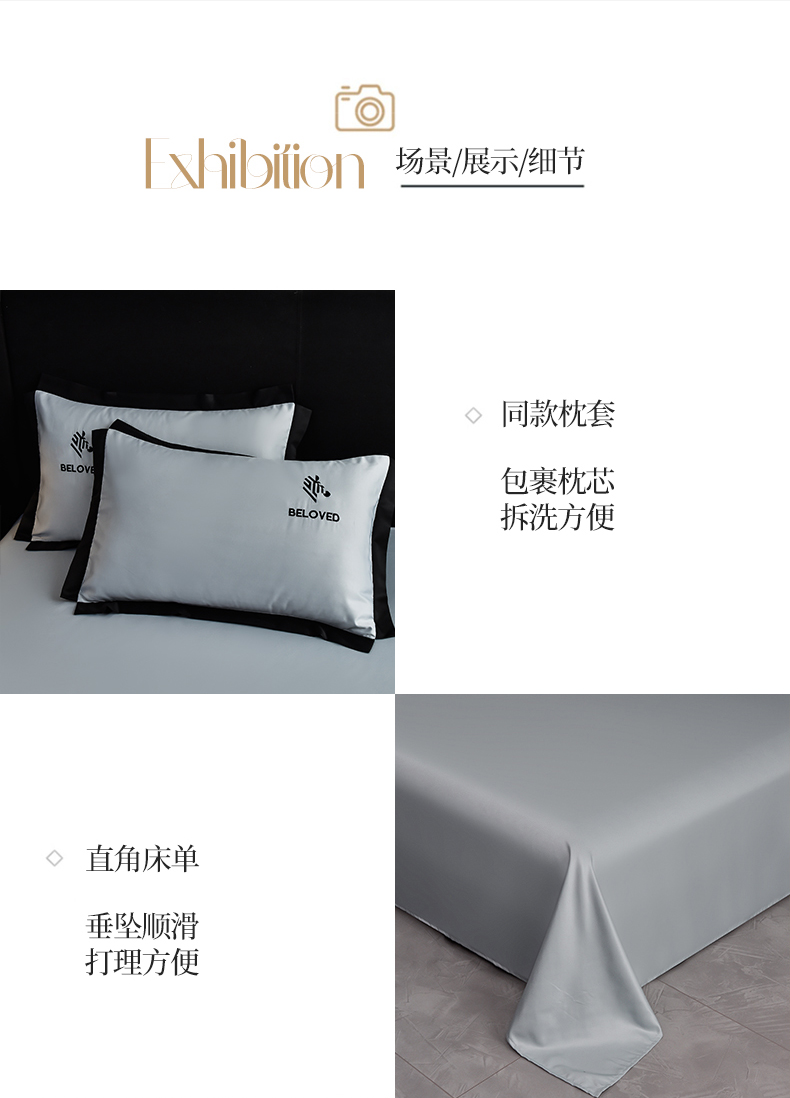 商品名称:米奈 2024新款A类水洗真丝四件套-安迪 高级灰