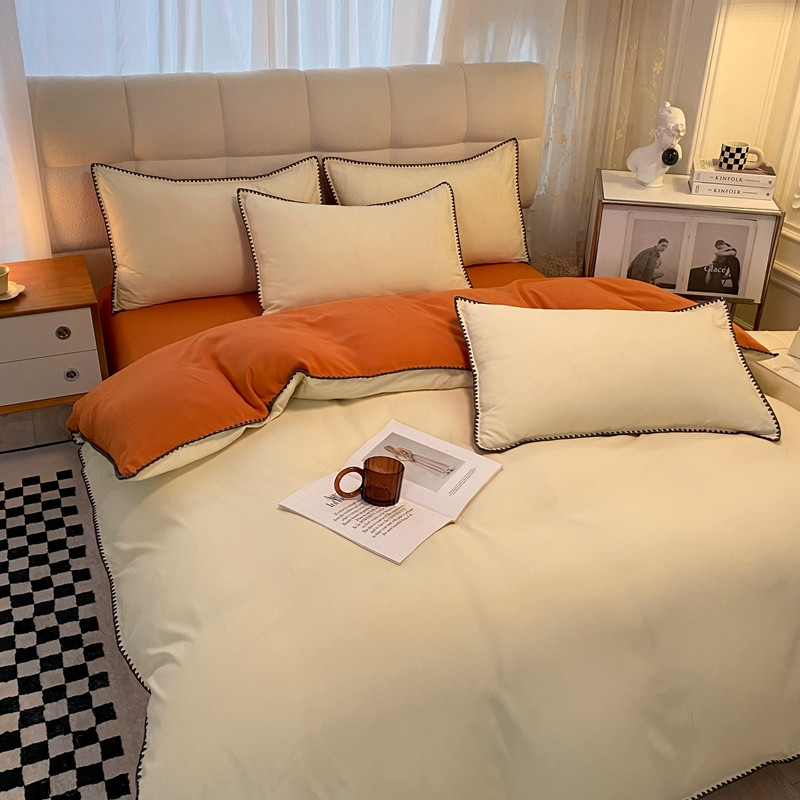 商品名称:妖妖家纺 2023新款水洗棉贝壳边纯色三角针四件套 浅黄+焦糖