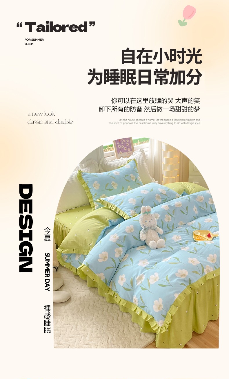 八十八家纺 2025新款全棉12868系列单品床笠雨叶梦,雨叶梦