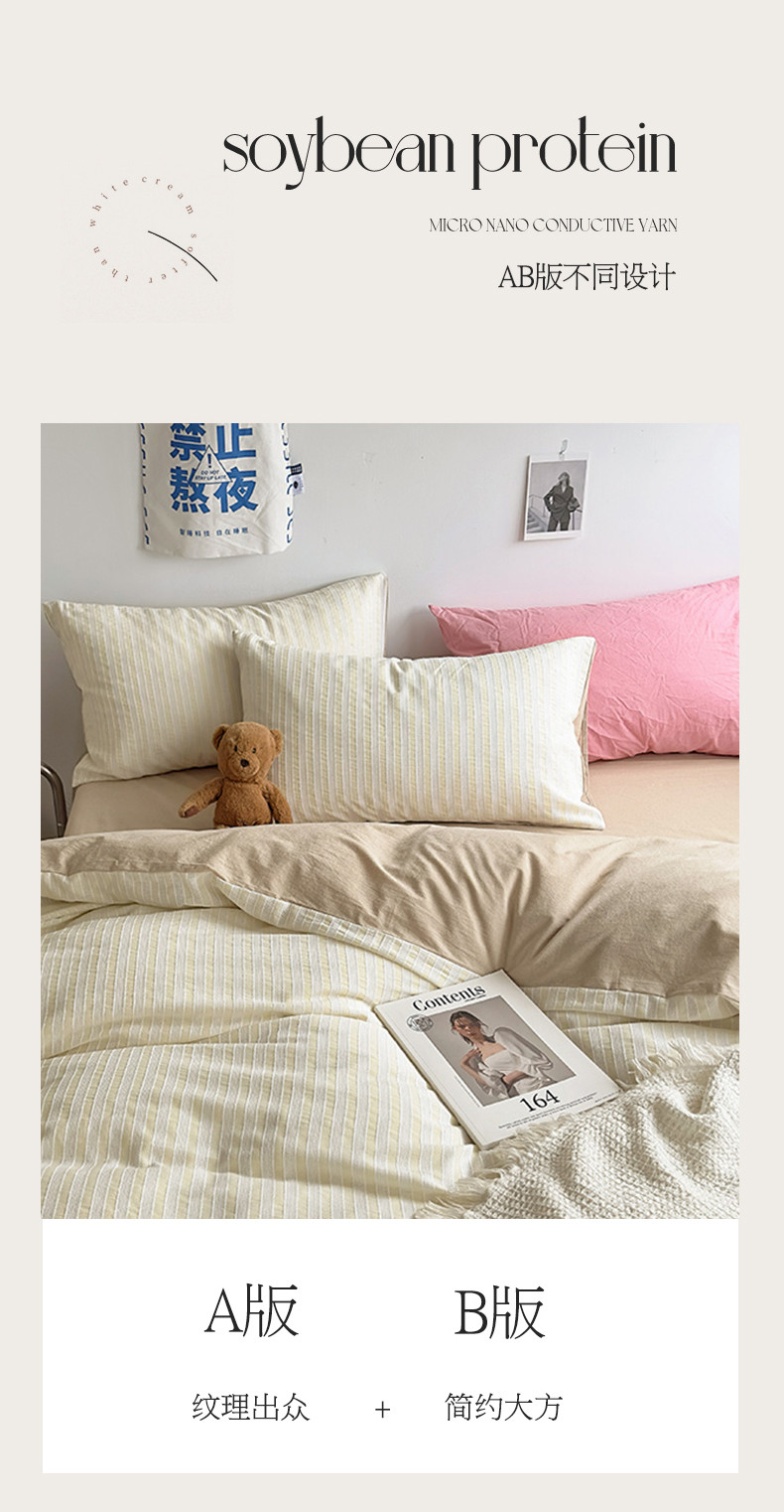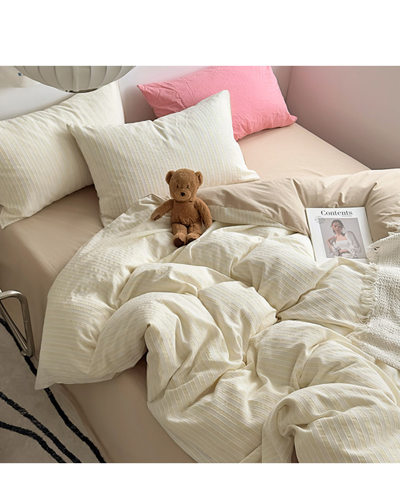 (总)2024秋冬新款A类简约日系全棉色织水洗棉纯棉四件套,粉密条,灰密条,绿密条,米密条,米雅,沐妍-粉,沐妍-黄,沐妍-灰,沐妍-绿,日落-粉,日落-灰,日落绿,中古绿条