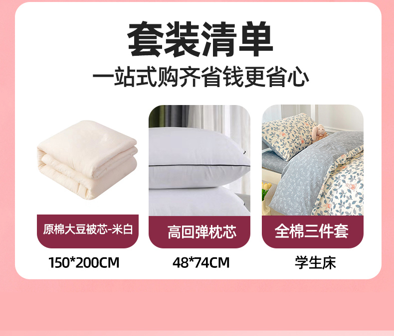 学生床五件套 【三件套+枕芯+春秋被约3斤】 | ¥136.00 |