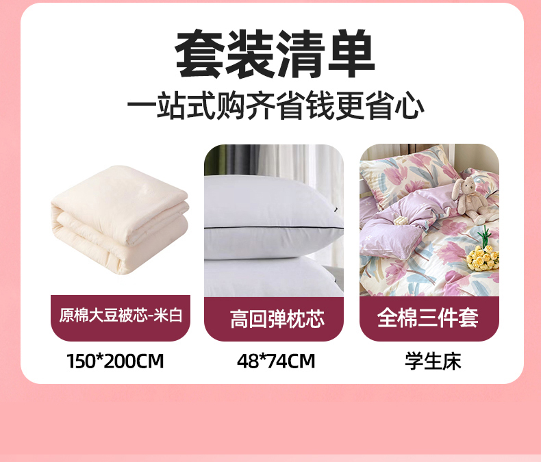 学生床五件套 【三件套+枕芯+春秋被约3斤】 | ¥136.00 |