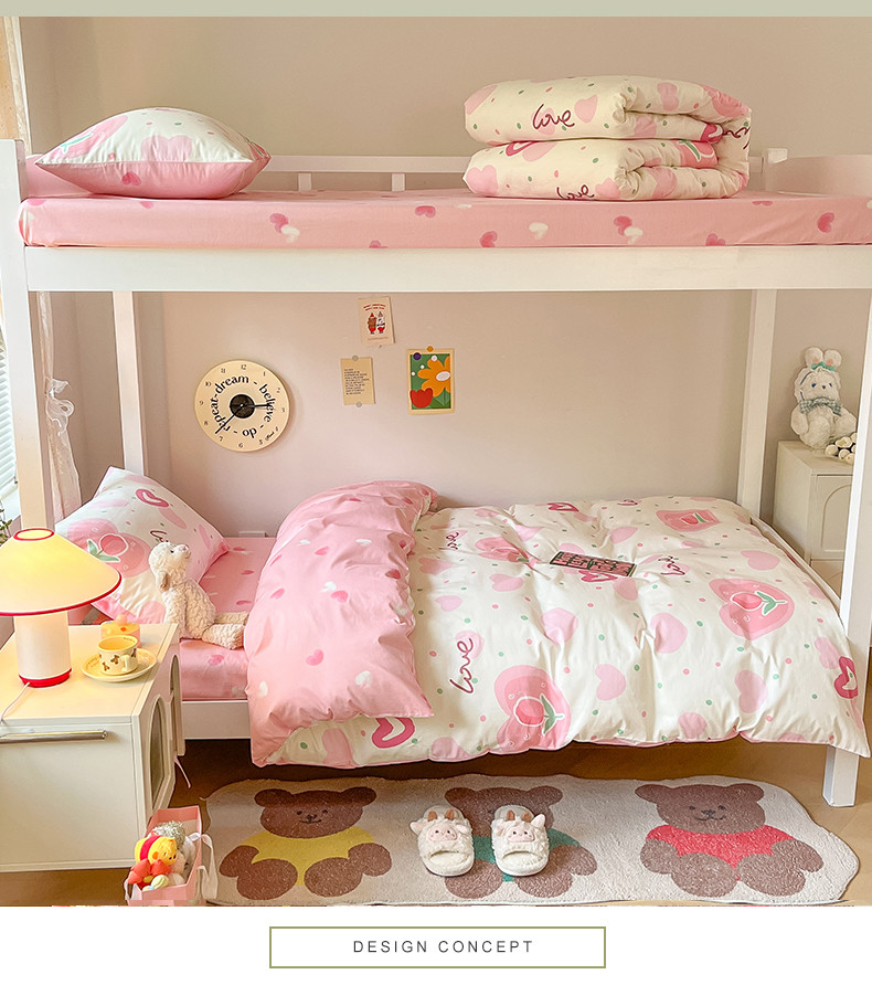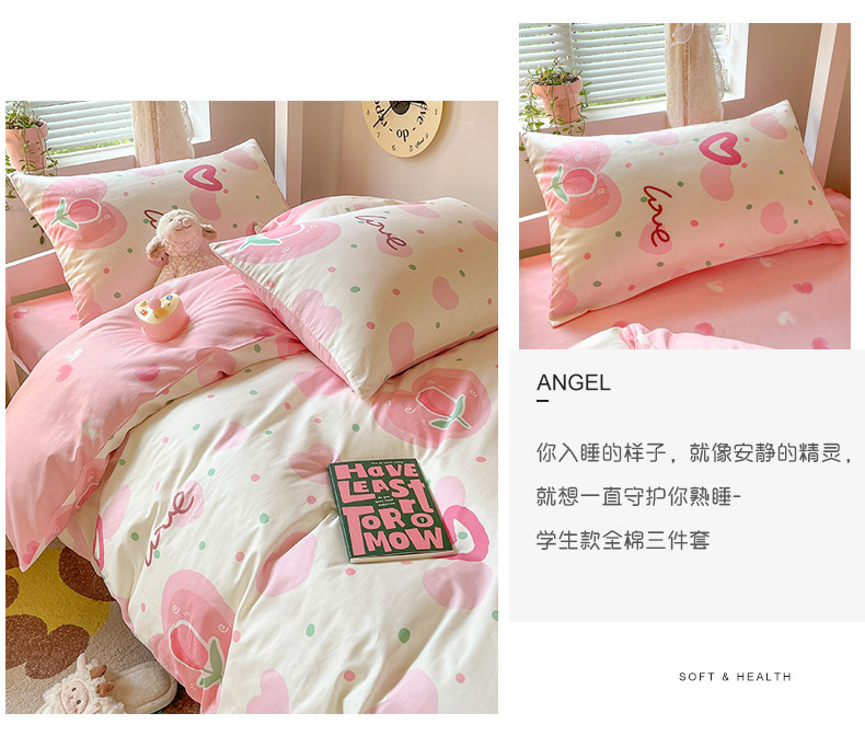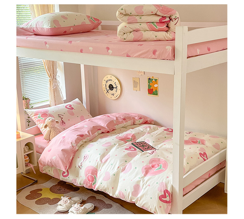 当前位置: 91家纺网 > 商品网购 > 床品套件 > 四件套 > 全棉普通四件套 > 麦伦 2023春夏全棉斜纹学生三件套四件套上下铺床品系列 爱心郁金香