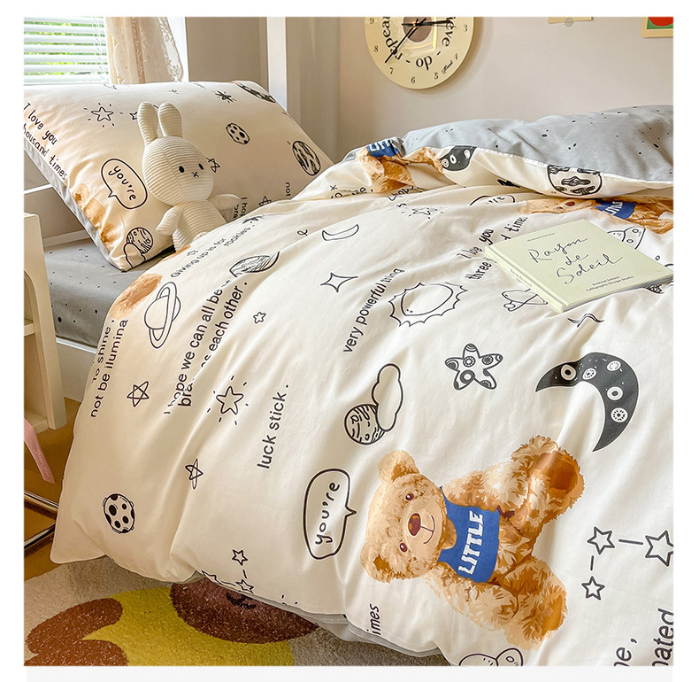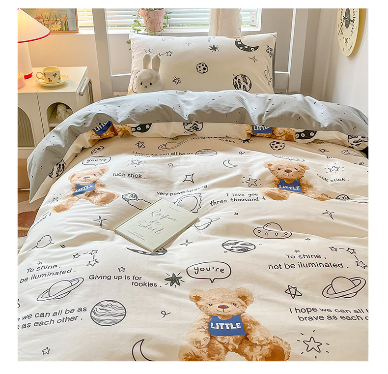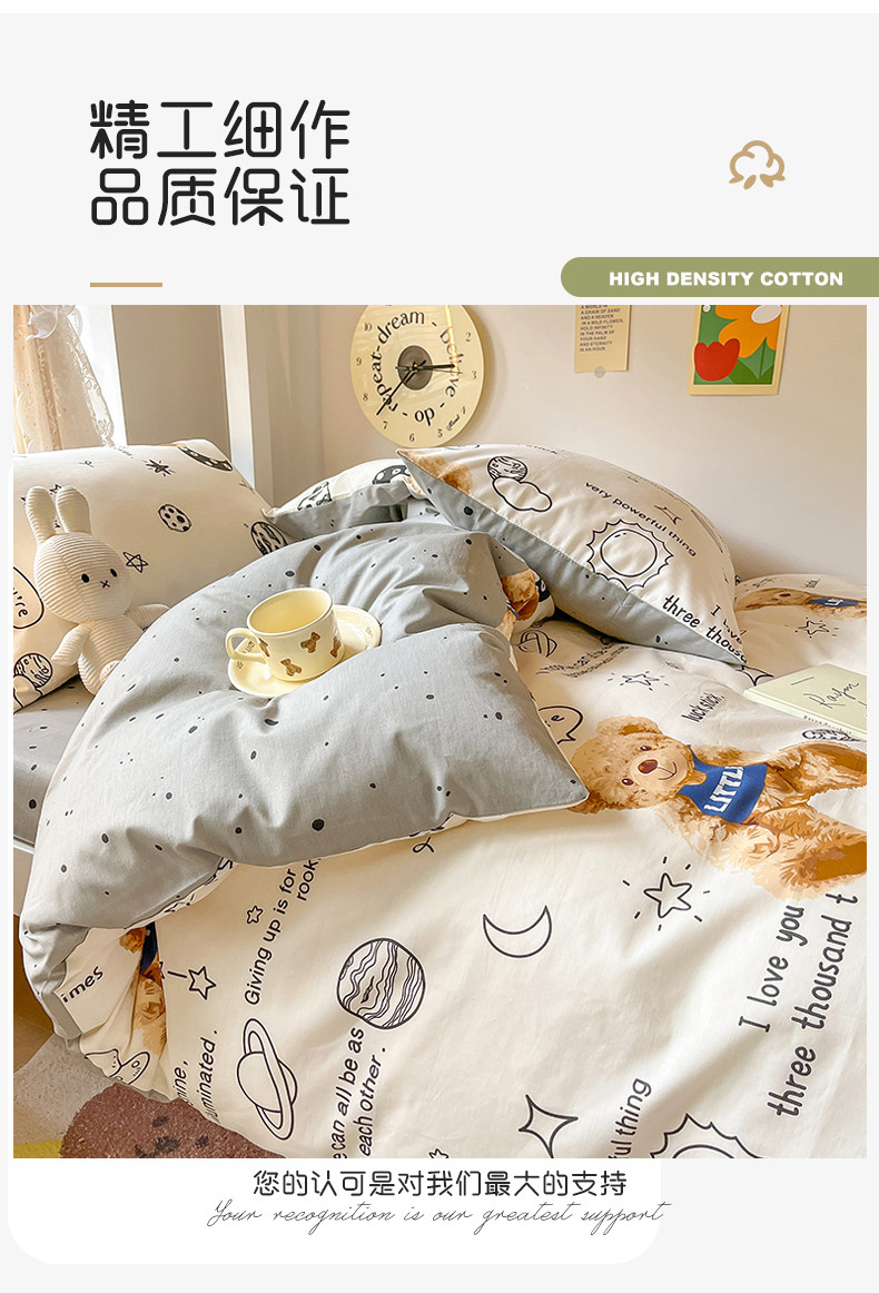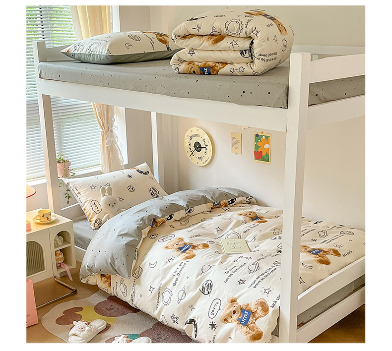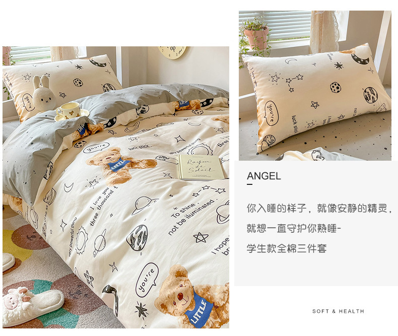 当前位置: 91家纺网 > 商品网购 > 床品套件 > 四件套 > 全棉普通四件套 > 麦伦 2023春夏全棉斜纹学生三件套四件套上下铺床品系列 星空小熊