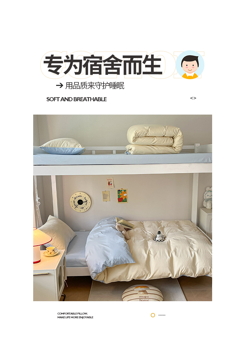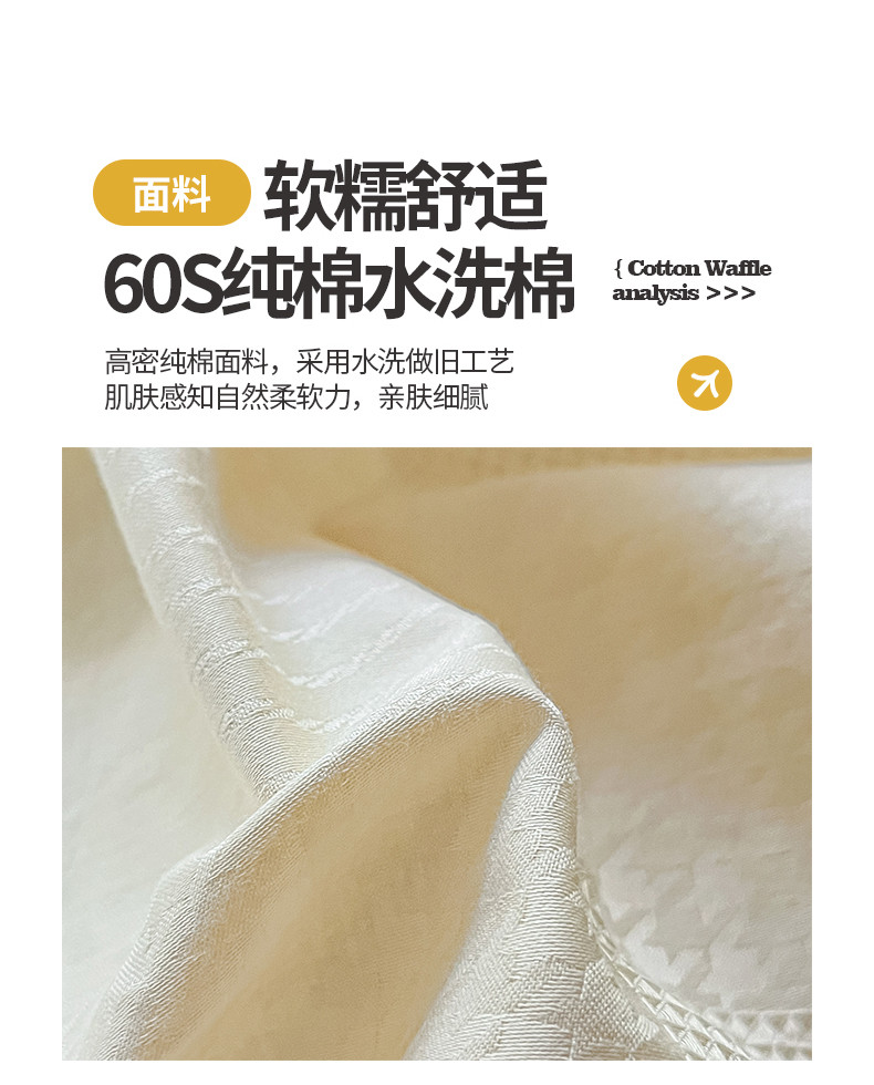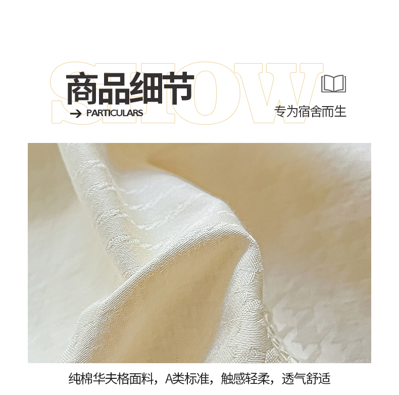 商品名称:桃子家居 2023新款A类60S水洗棉提花华夫格纯棉学生三件套 奶白蓝
