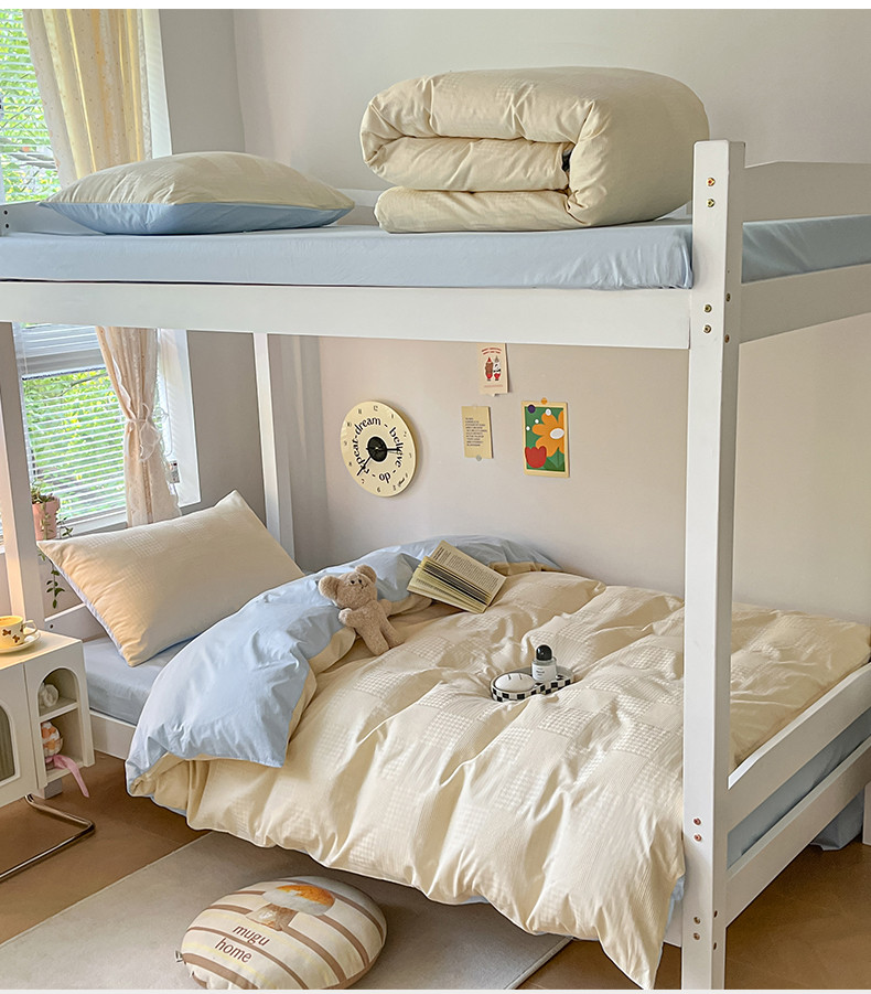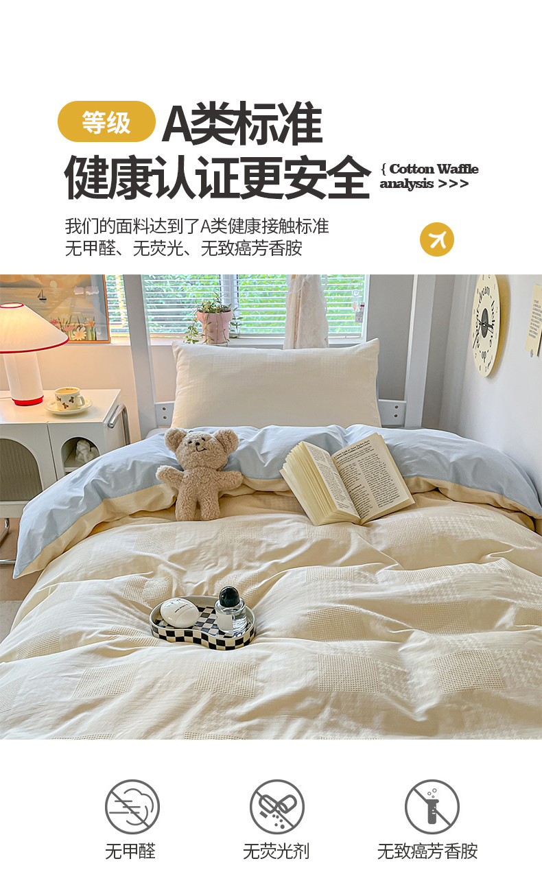 桃子家居 2023新款A类60S水洗棉提花华夫格纯棉学生三件套 奶白蓝