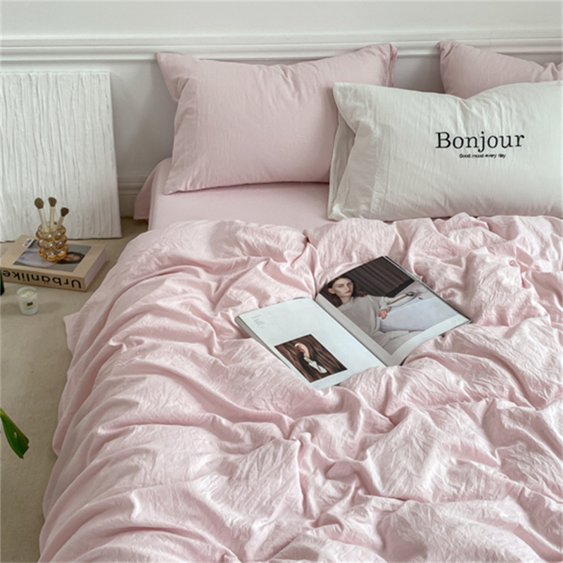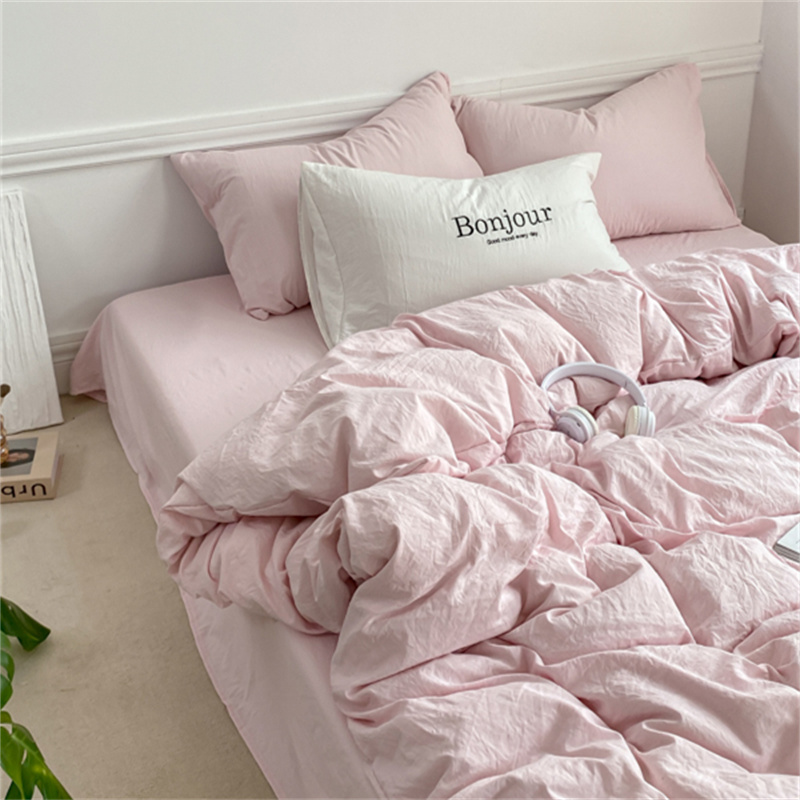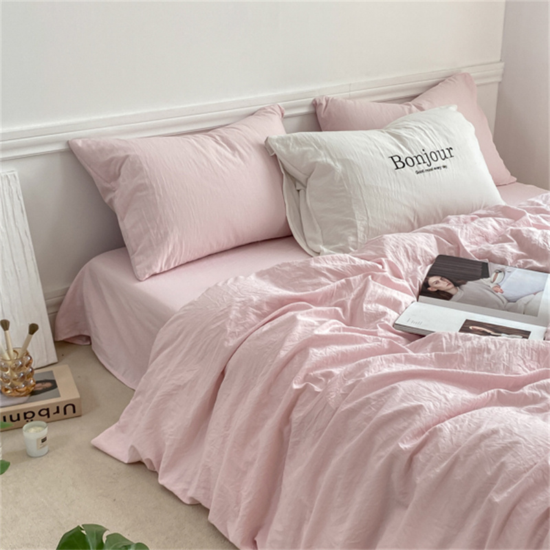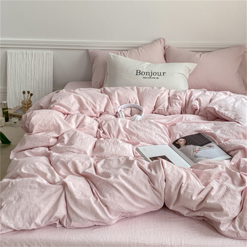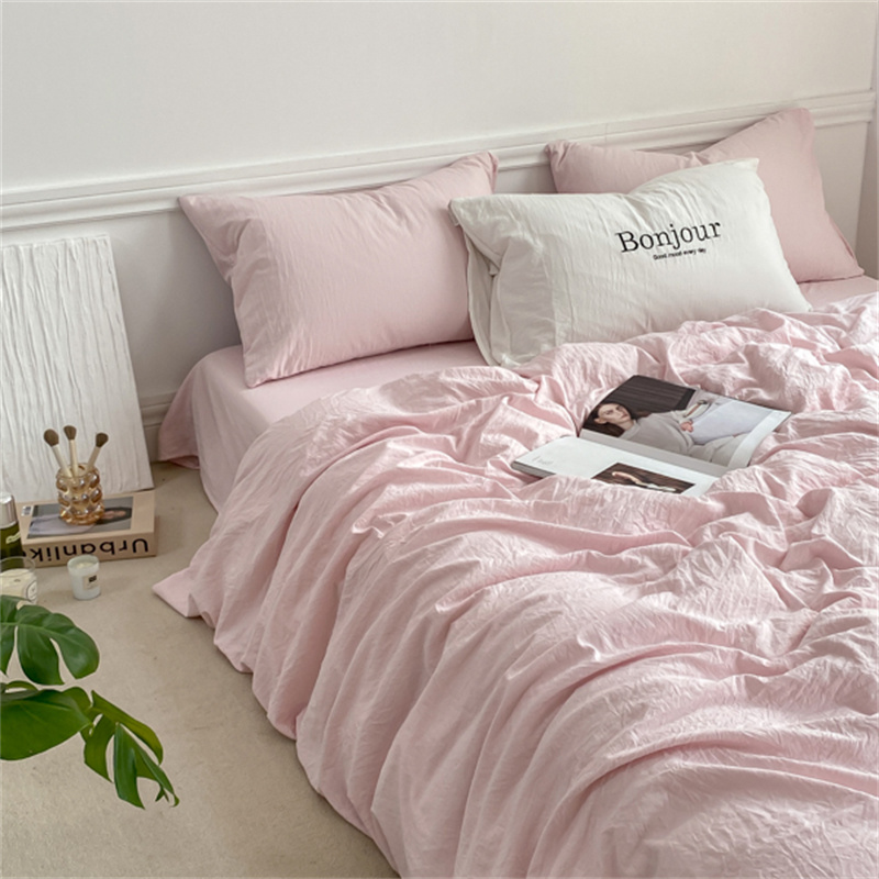雨帆家纺 2023新款ins风超柔水洗棉四件套 ins甜心粉