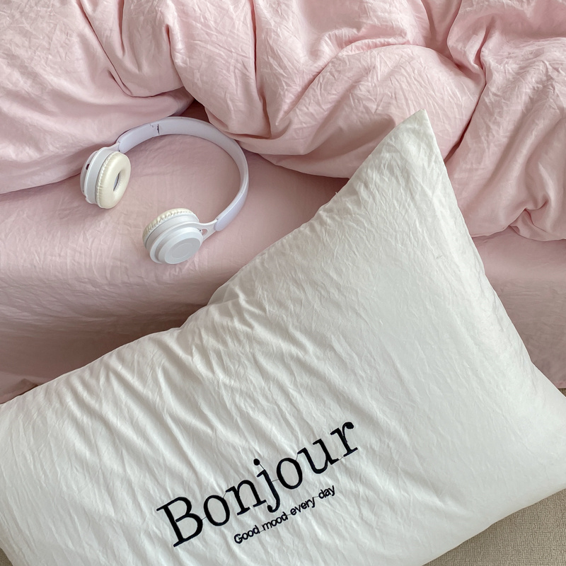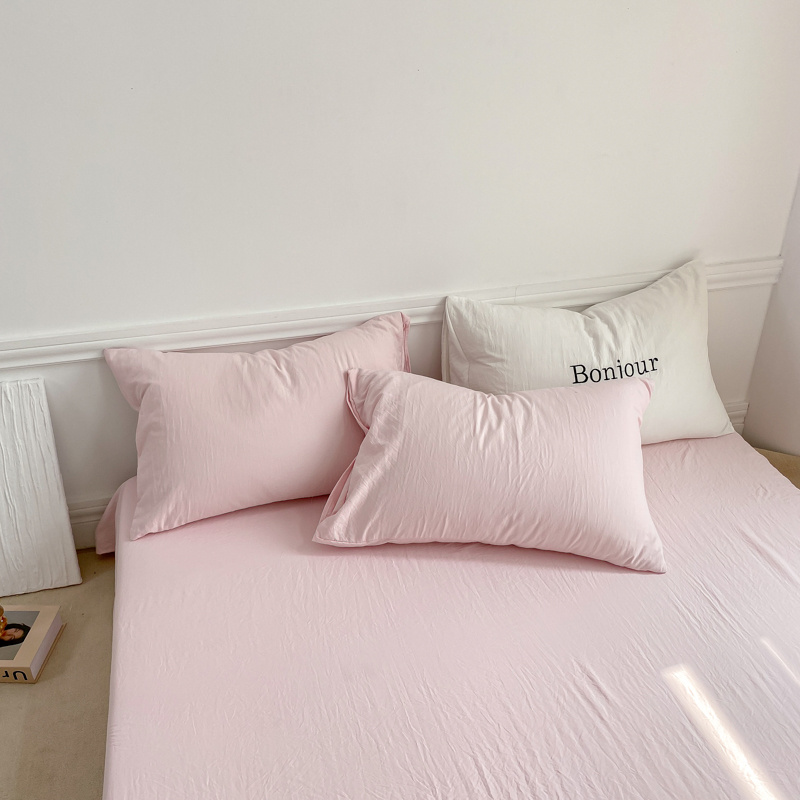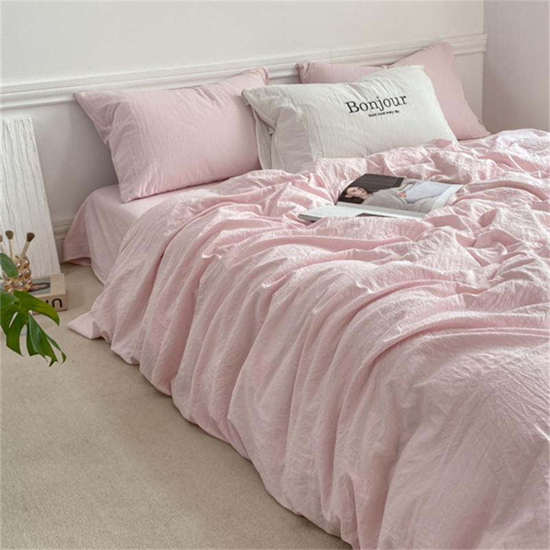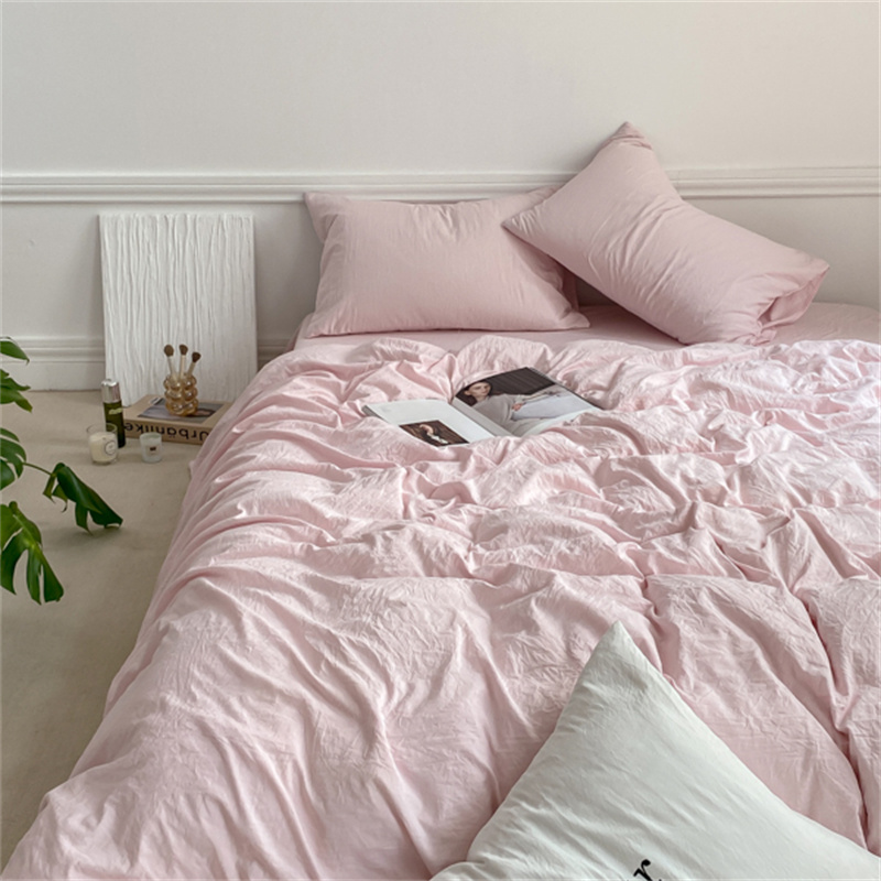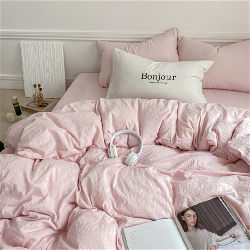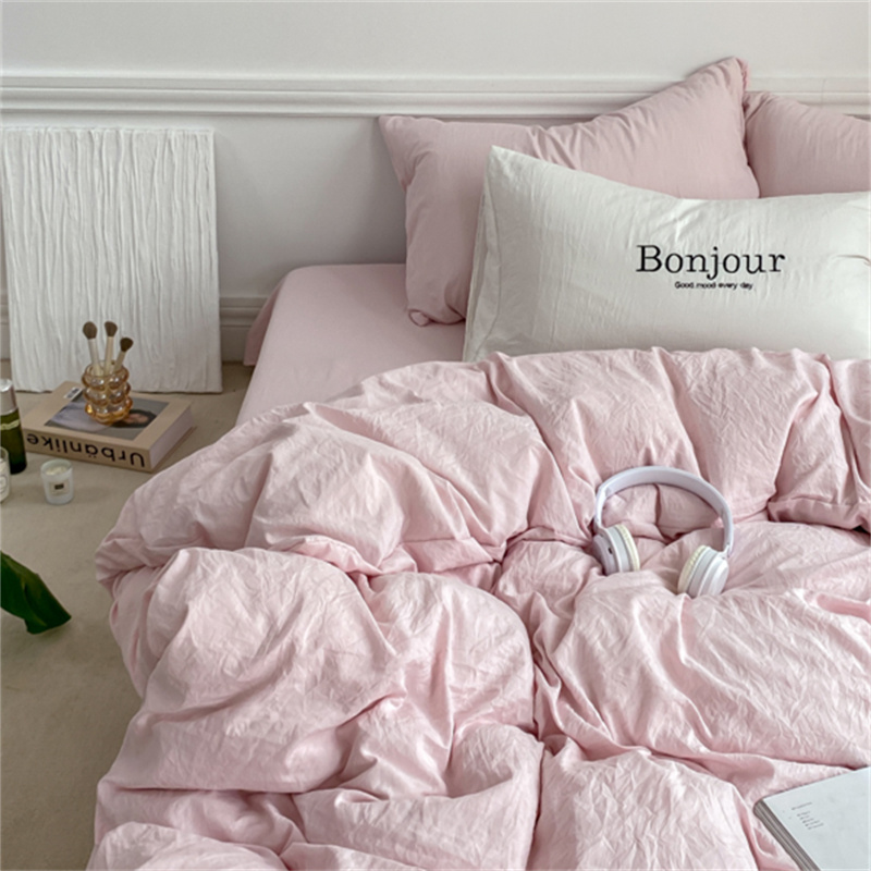 雨帆家纺 2023新款ins风超柔水洗棉四件套 ins甜心粉