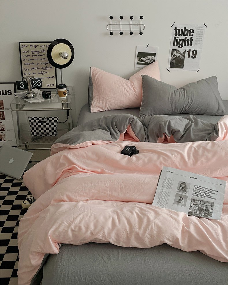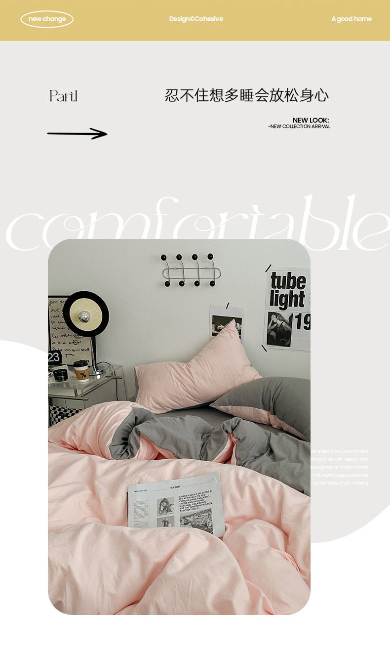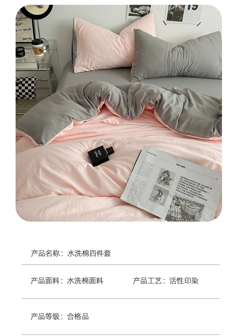 当前位置: 91家纺网 > 商品网购 > 床品套件 > 四件套 > 水洗棉四件套 > 优承佳 2023新款ins风超柔亲肤磨毛水洗m双拼四件套 浅粉灰