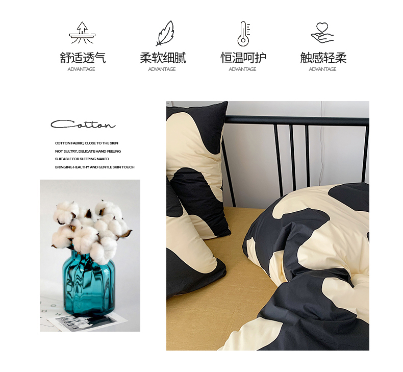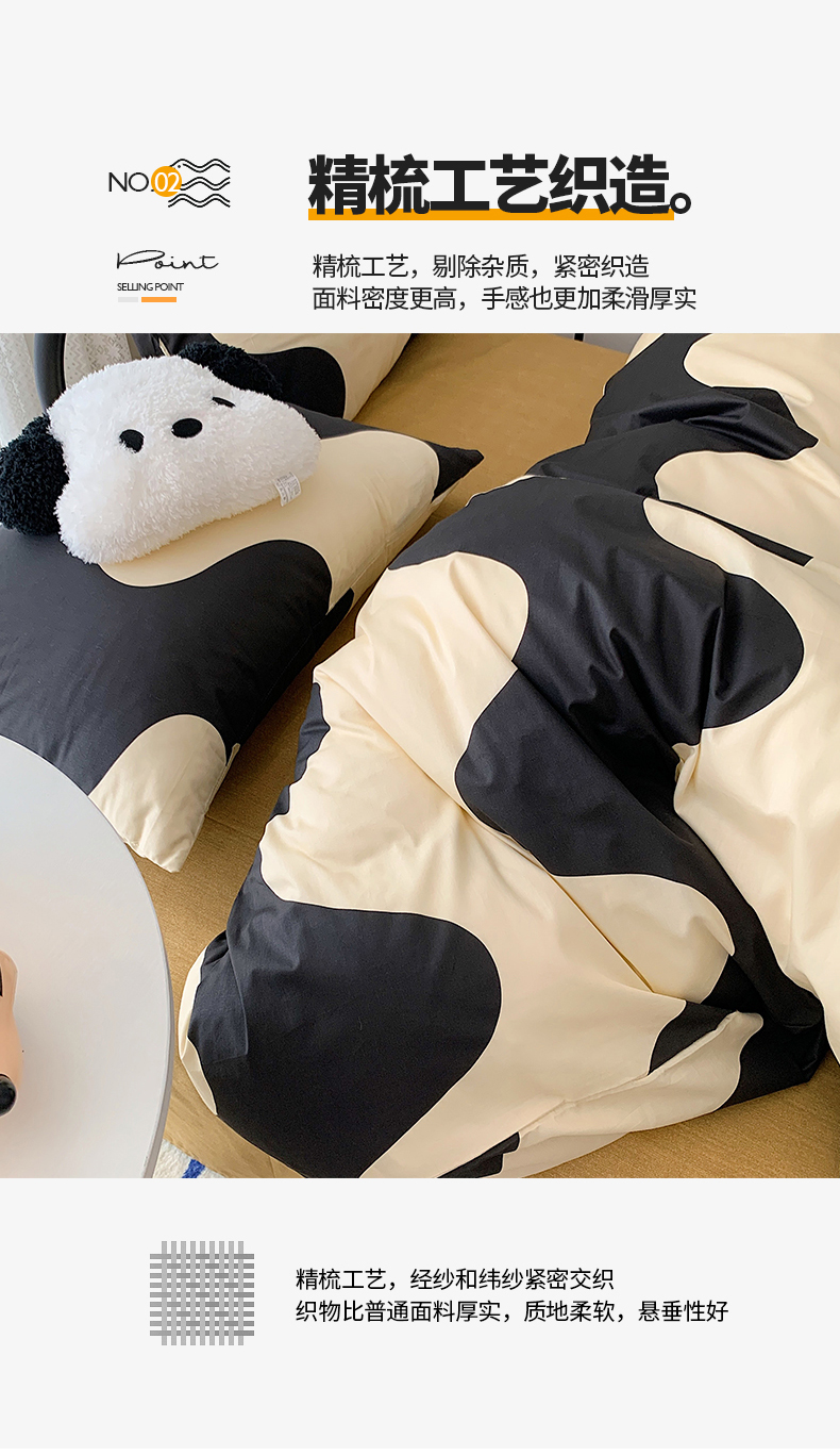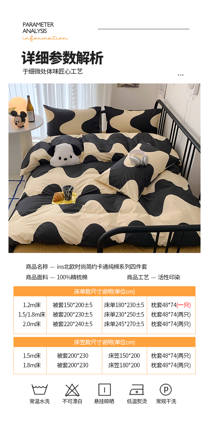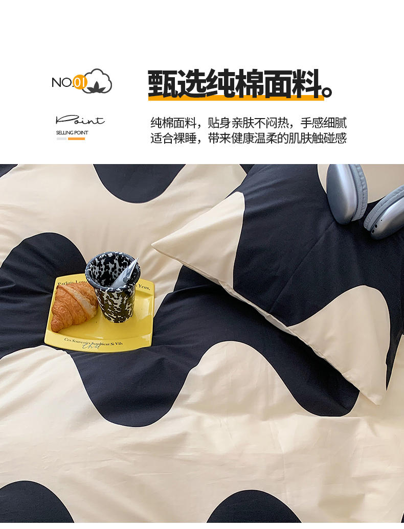 商品名称:桃子家居 2023新款ins北欧时尚简约卡通纯棉四件套系列 棉-黑白波浪
