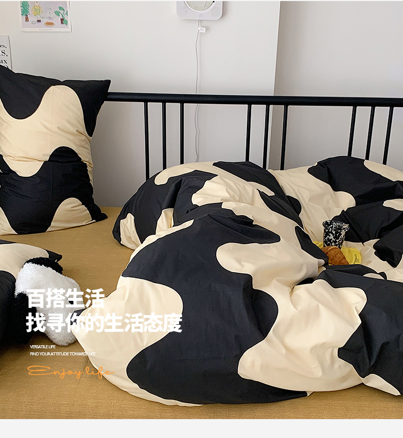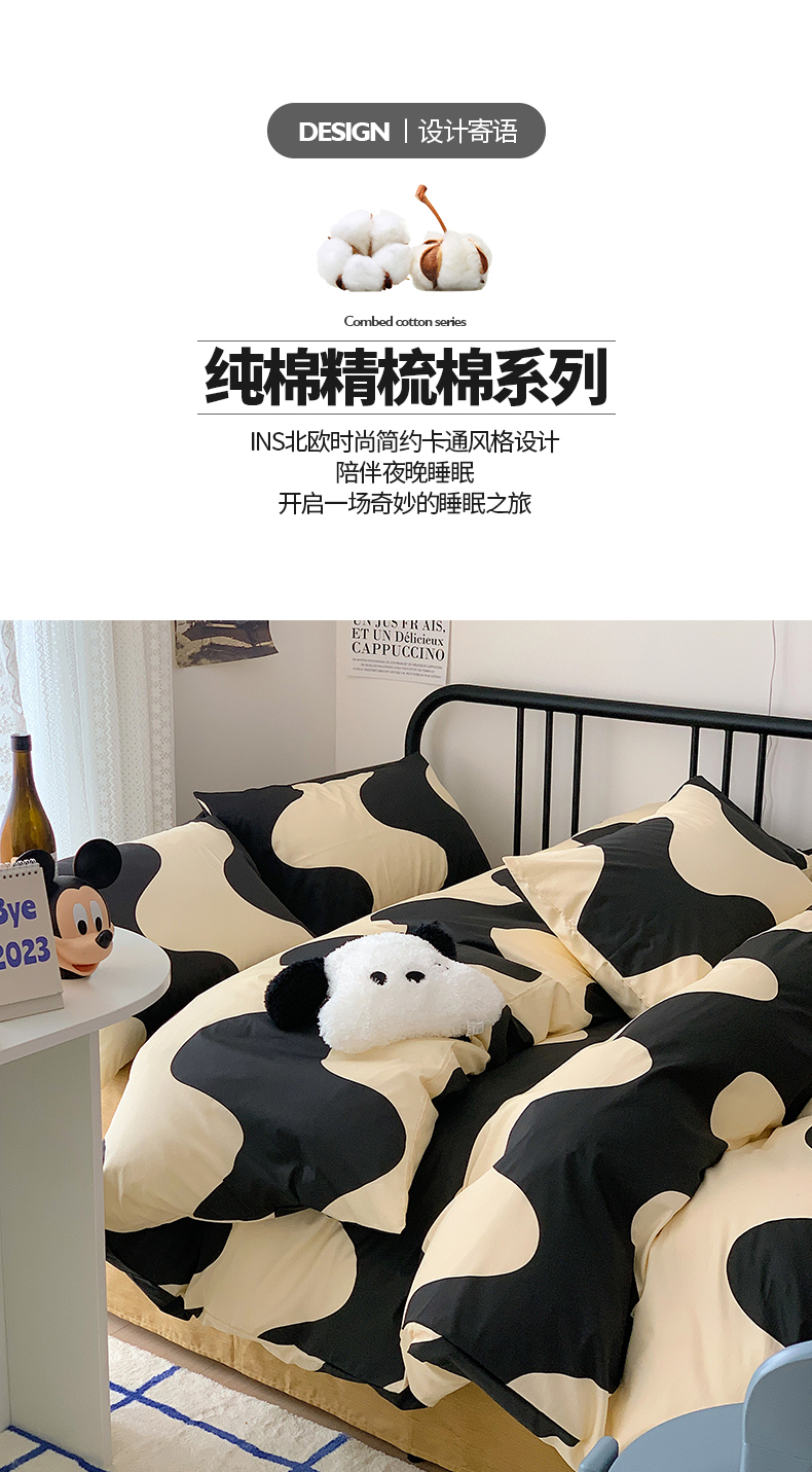 桃子家居 2023新款ins北欧时尚简约卡通纯棉四件套系列 棉-黑白波浪