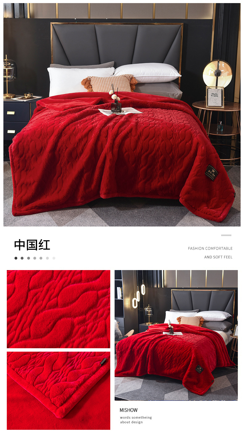 商品名称:尚品绵羊 2025秋冬新款双层加云毯毛毯直播爆款毯子 裘皮毯-中国红