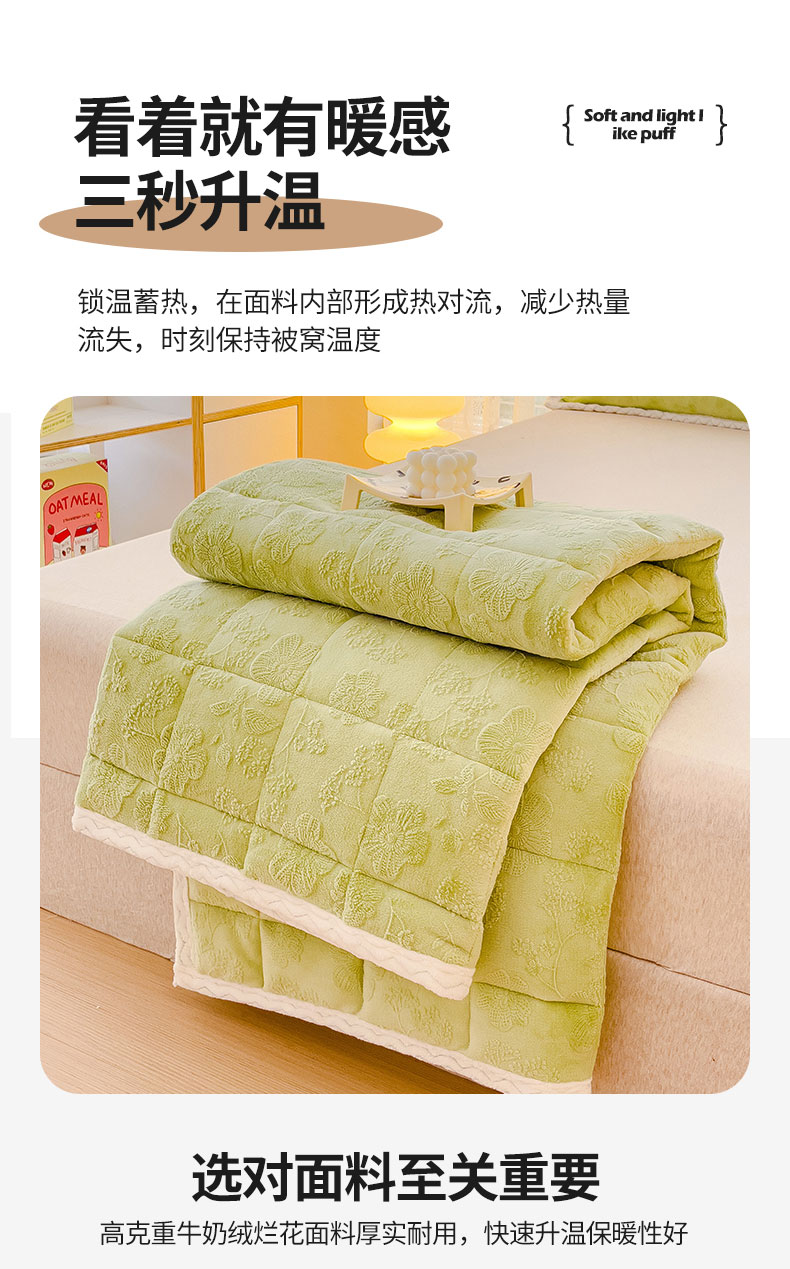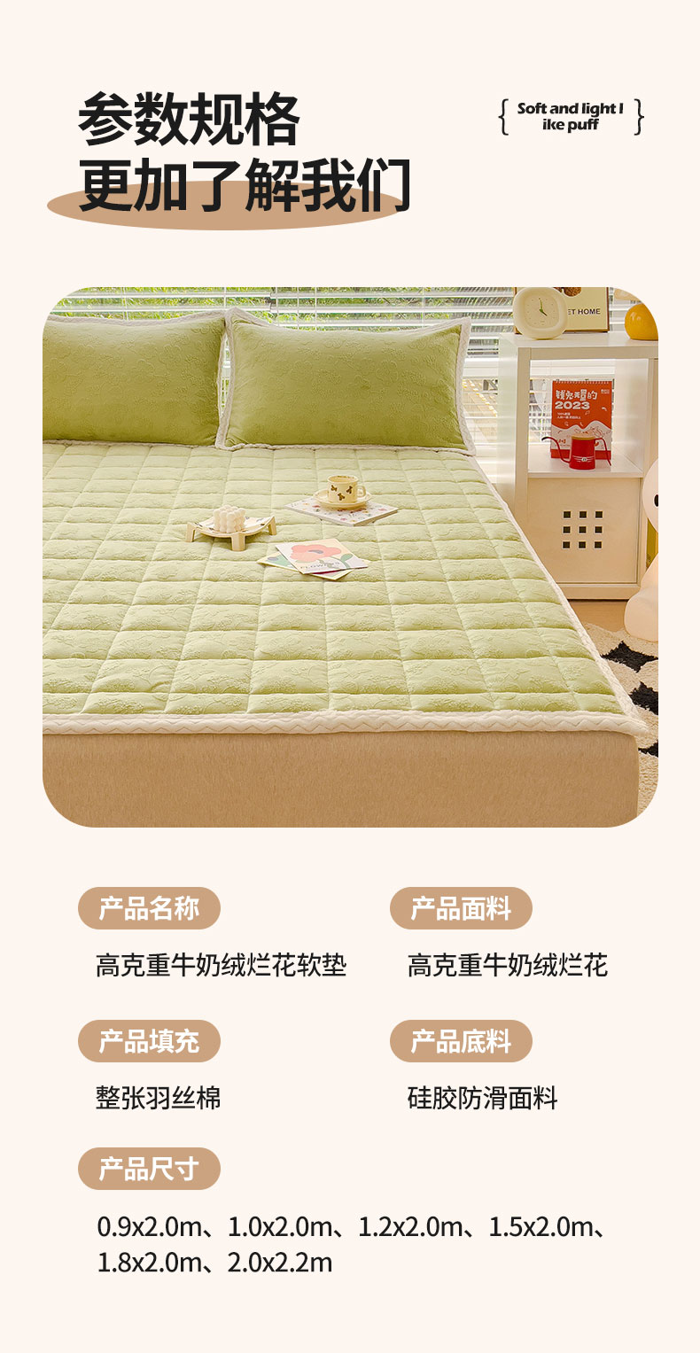 商品名称:米帛 2023新款牛奶绒烂花软垫 繁花绿