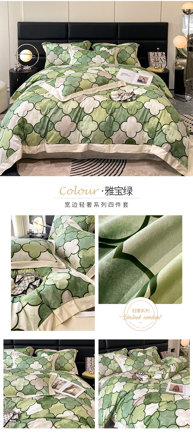 商品名称:金奇达 2024新款全棉宽边轻奢四件套 雅宝绿