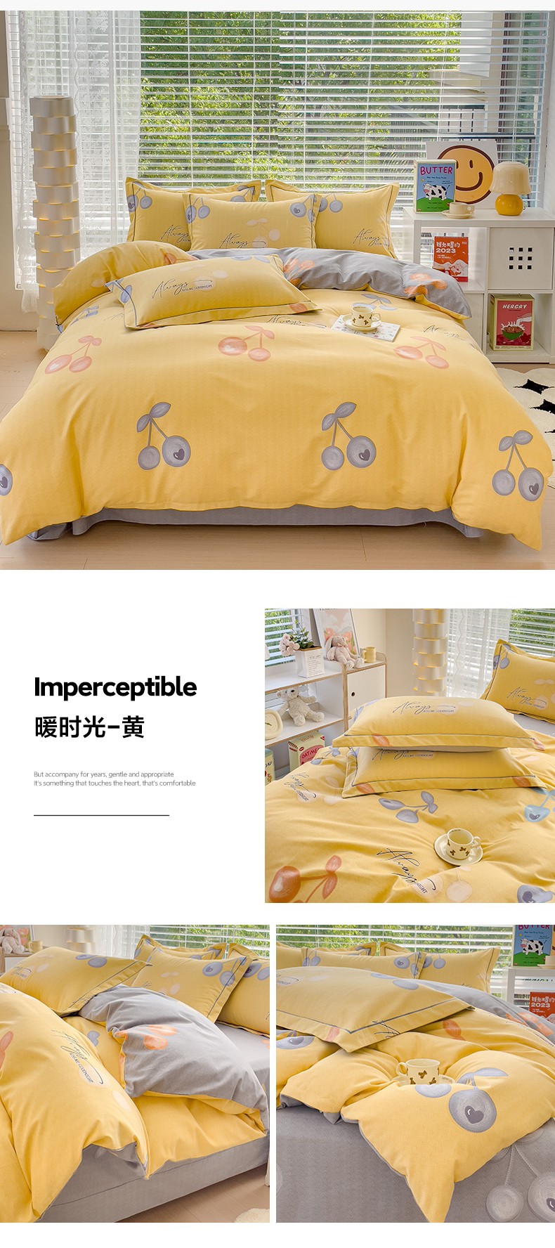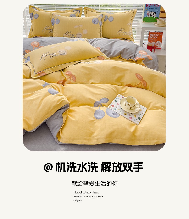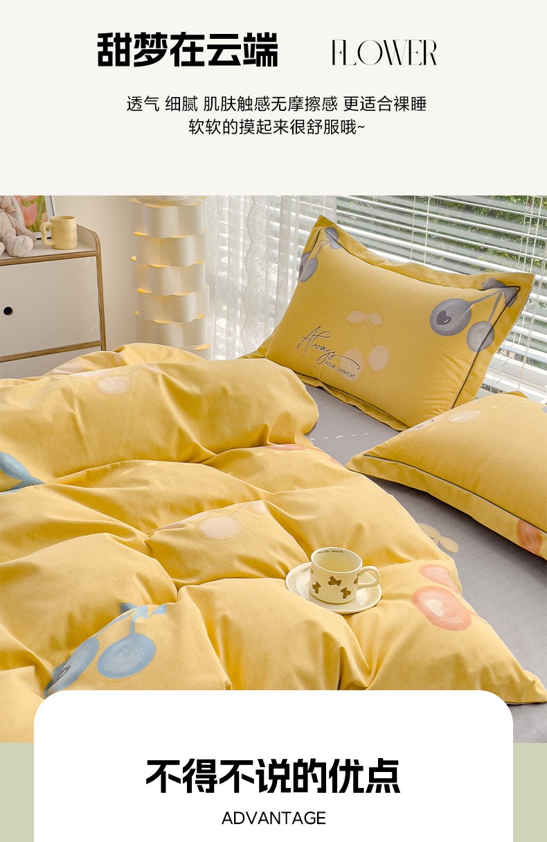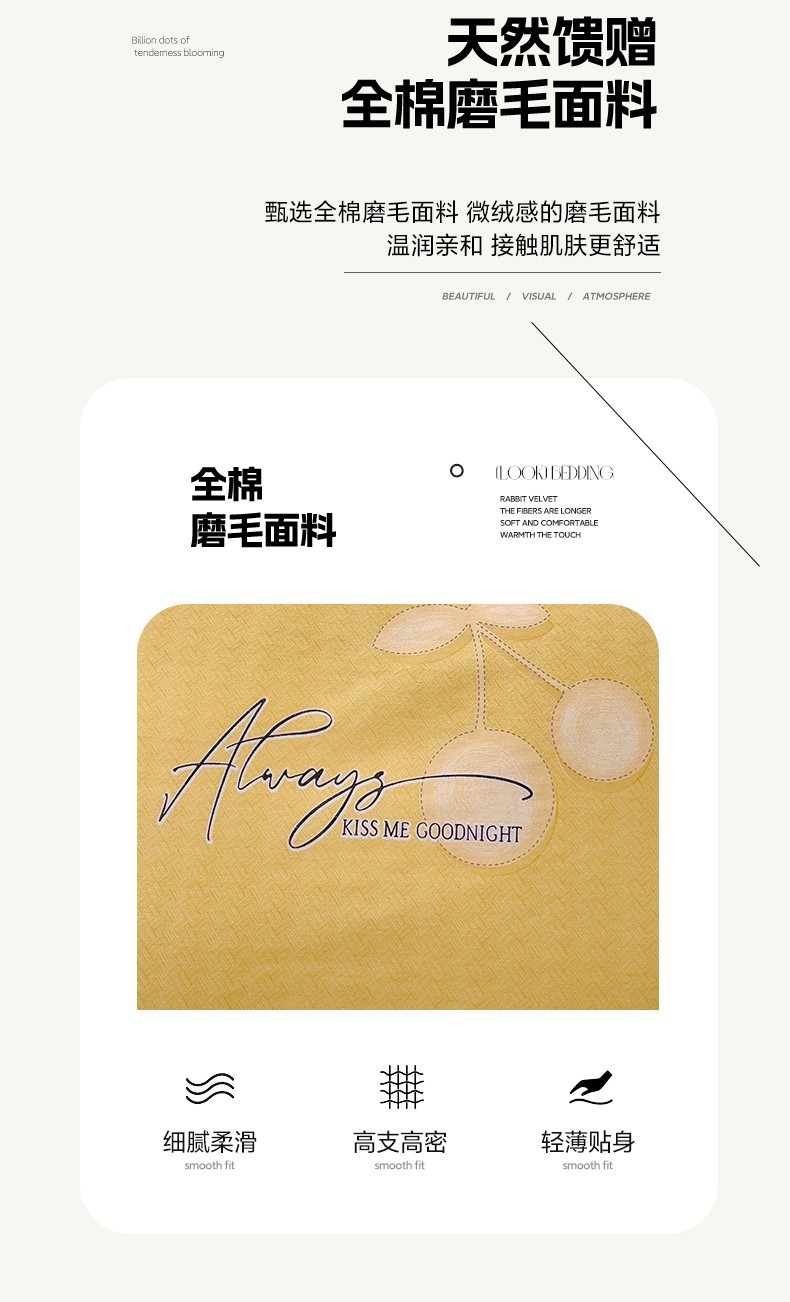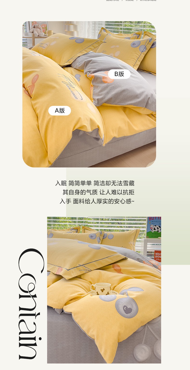 商品名称:铭浩 2025新款纯棉棉加厚磨毛升级喷气面料全棉四件套三件套 暖时光-黄