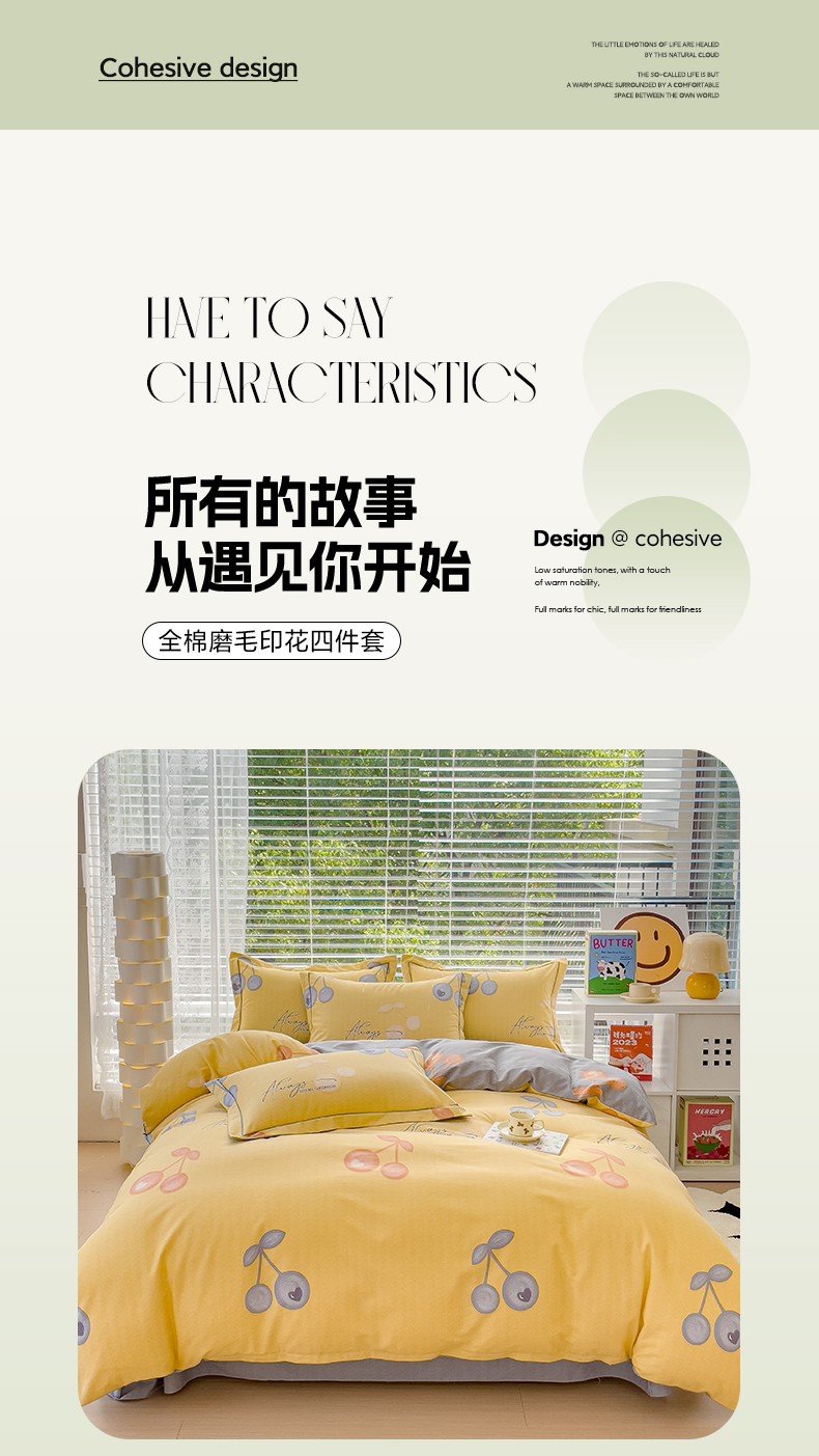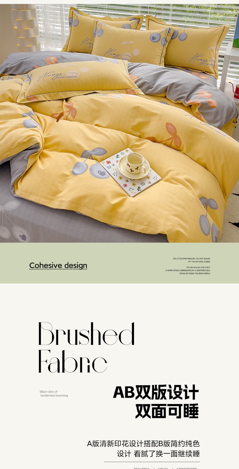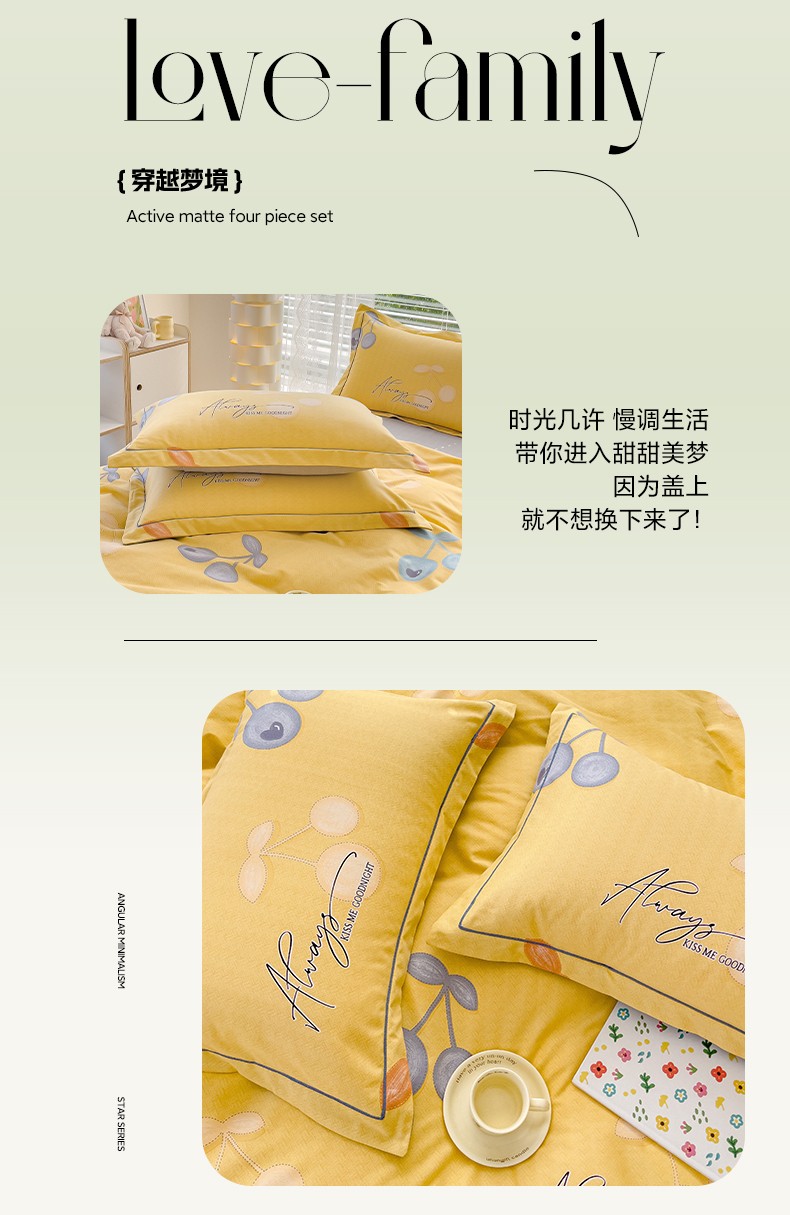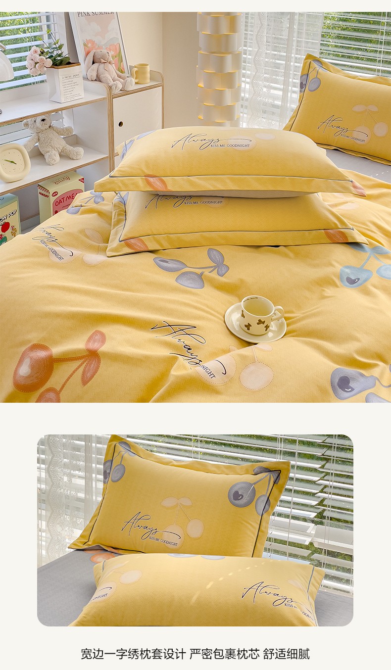 商品名称:铭浩 2025新款纯棉棉加厚磨毛升级喷气面料全棉四件套三件套 暖时光-黄