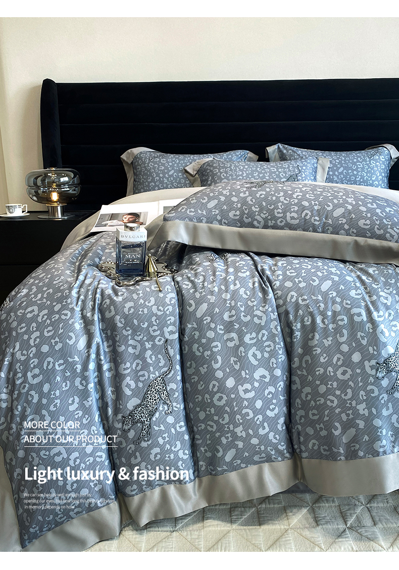 优悦 2023新款轻奢磨毛印花系列四件套 轻奢豹纹-灰