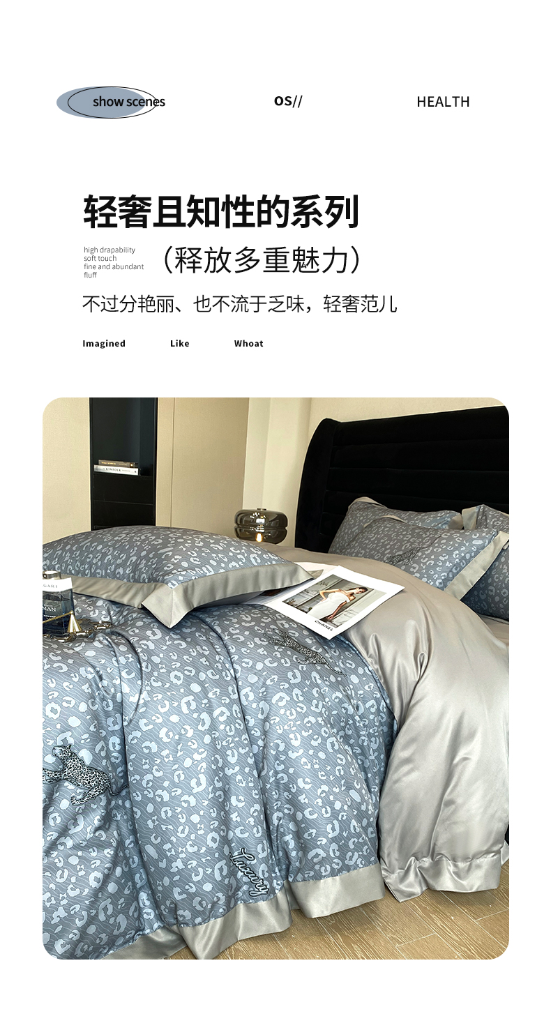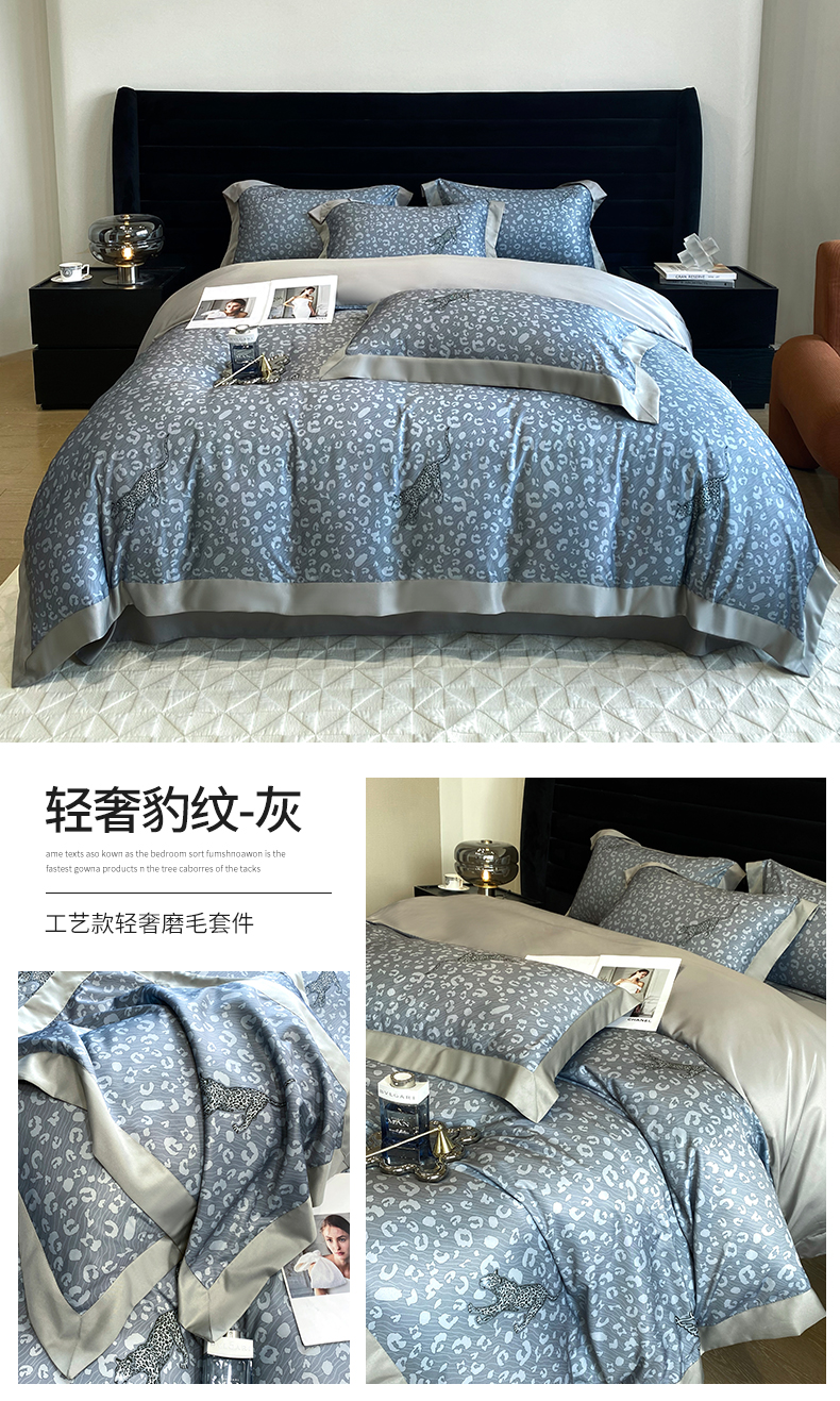 商品名称:优悦 2023新款轻奢磨毛印花系列四件套 轻奢豹纹-灰
