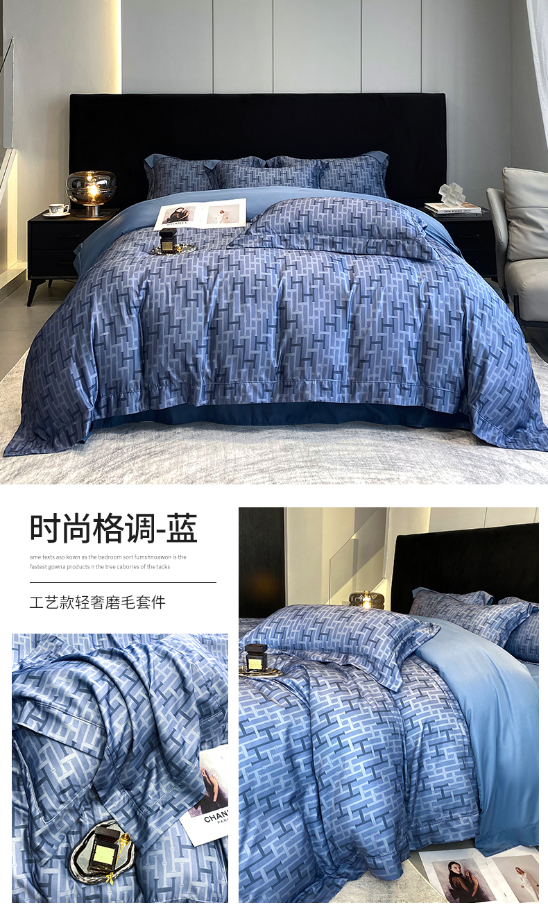 商品名称:优悦 2023新款轻奢磨毛印花系列四件套 时尚格调-蓝