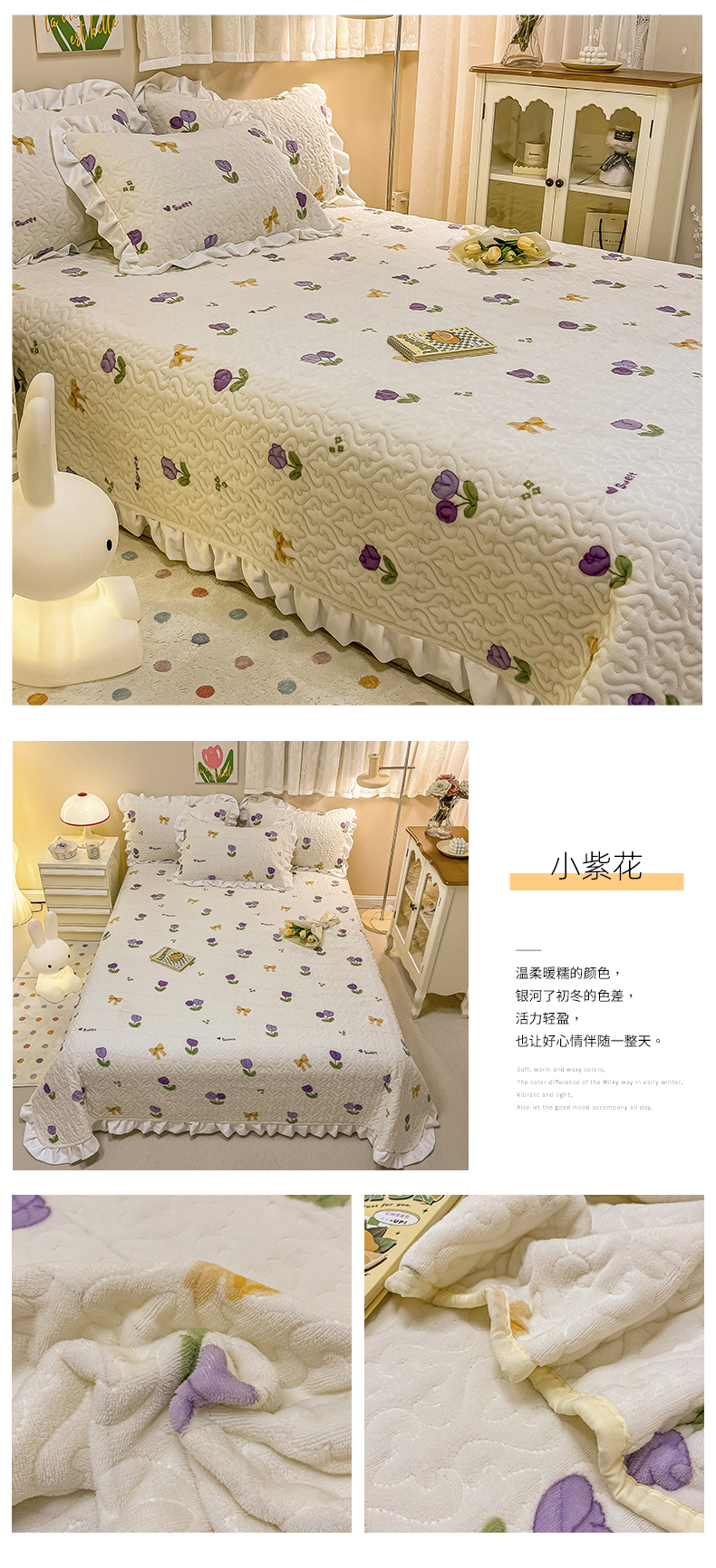 • 91家纺网 家纺一手货源 找家纺 沐辰家居2023新款牛奶绒印花床盖 小紫花