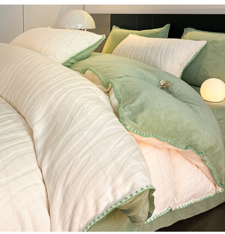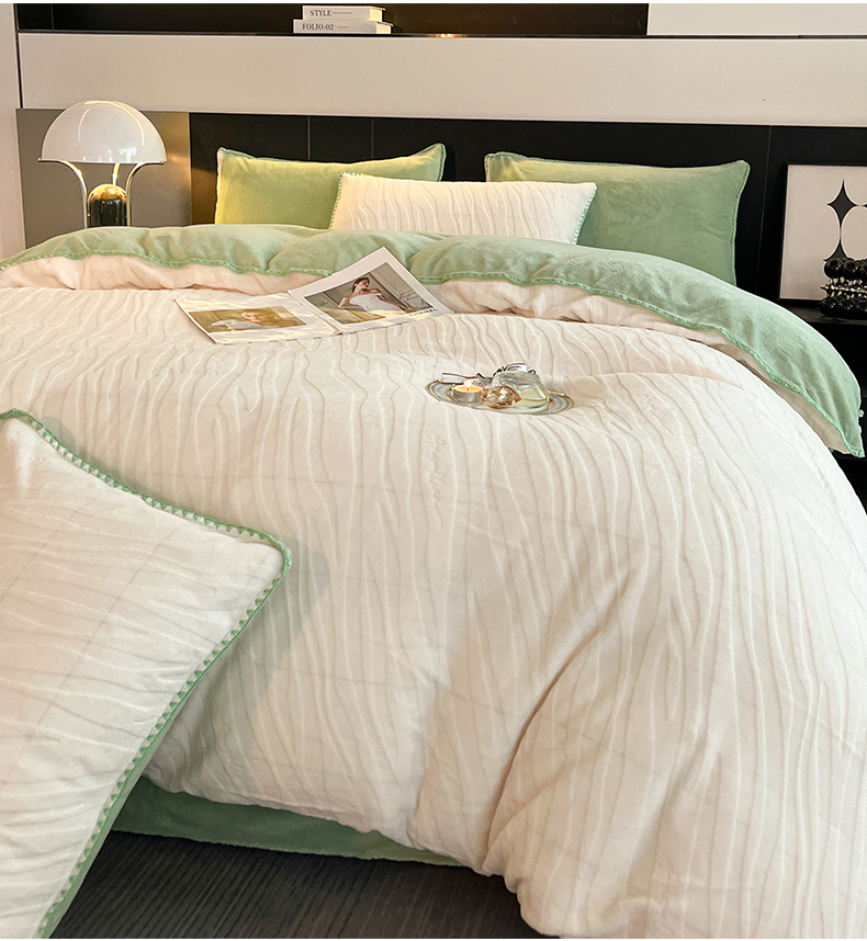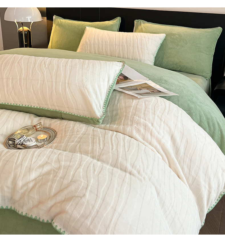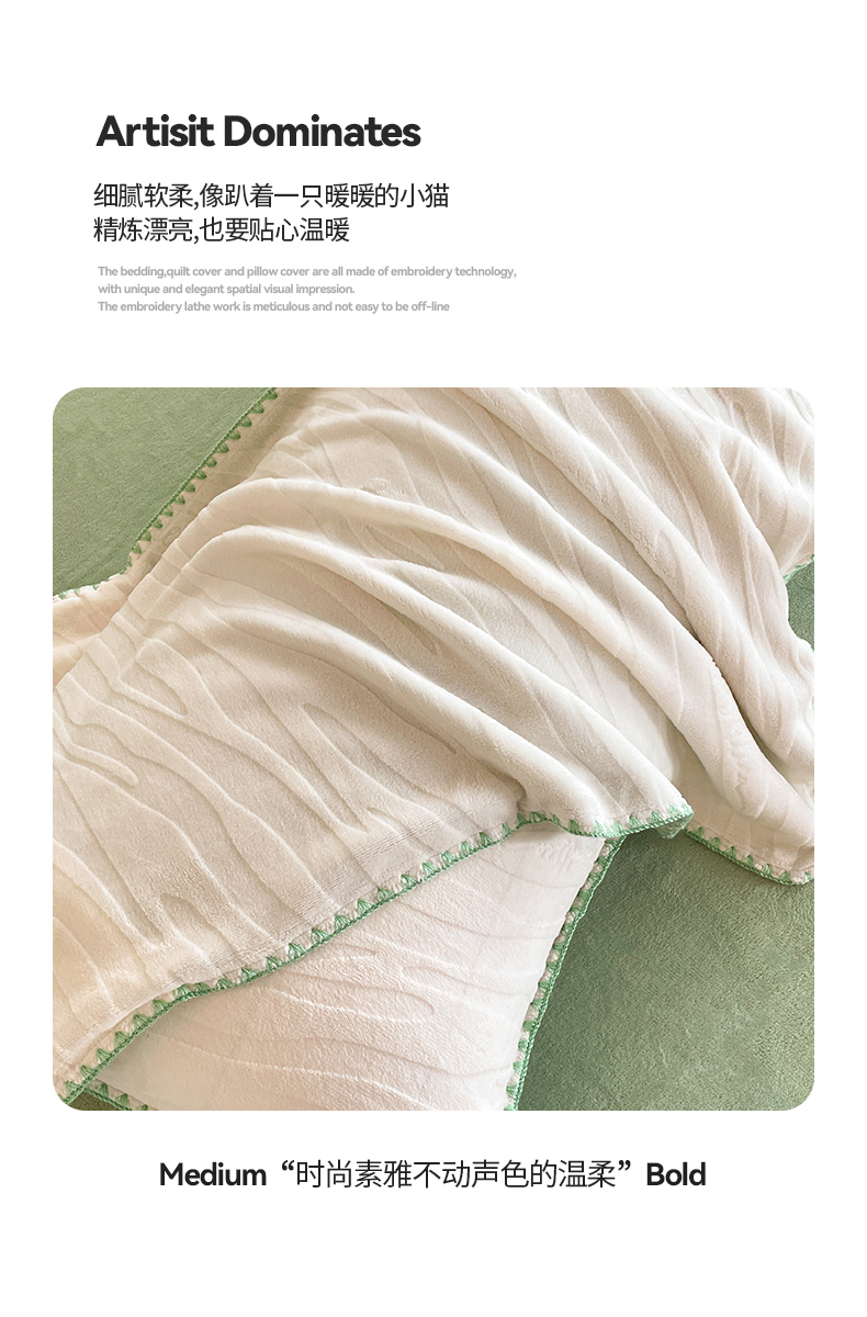 澳梵 2023新款雕花牛奶绒贝壳边工艺四件套 林希-白绿
