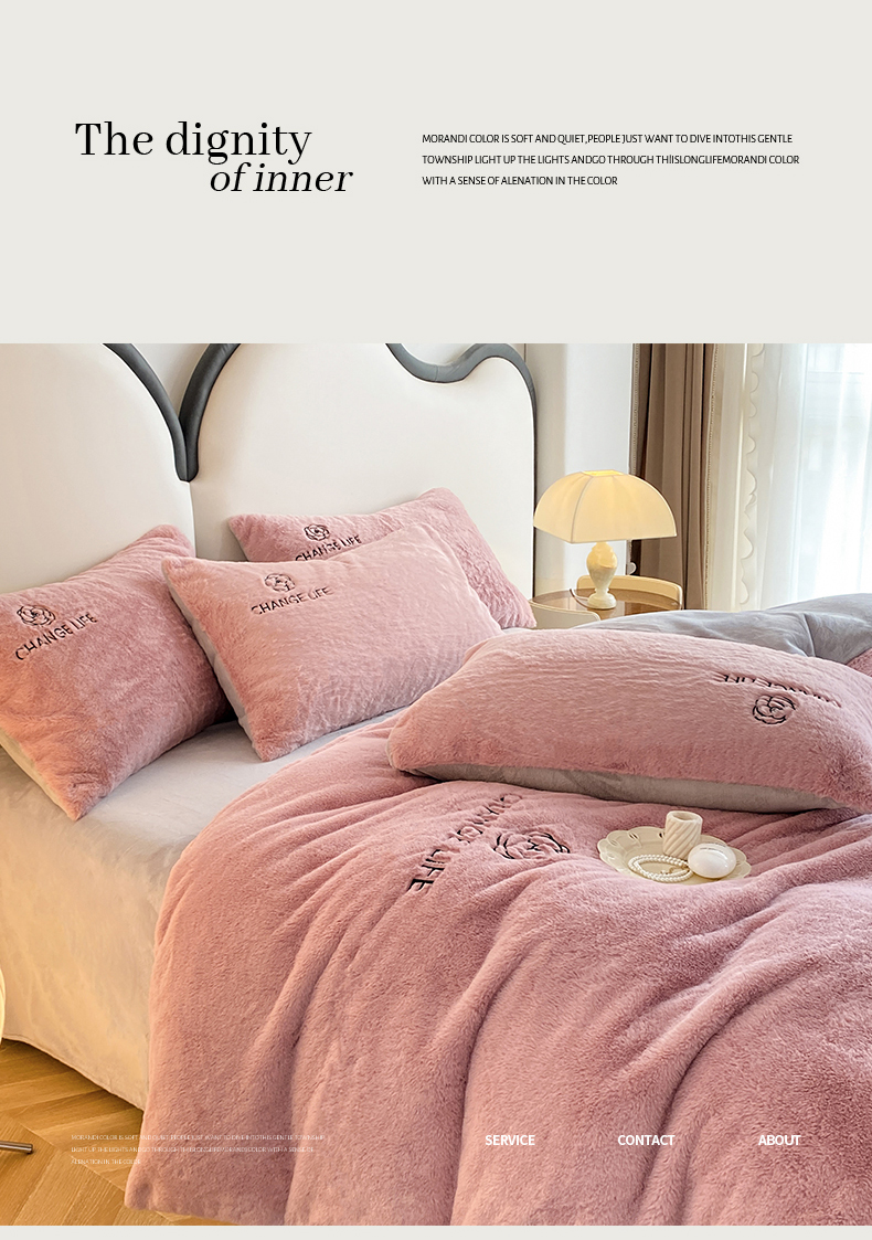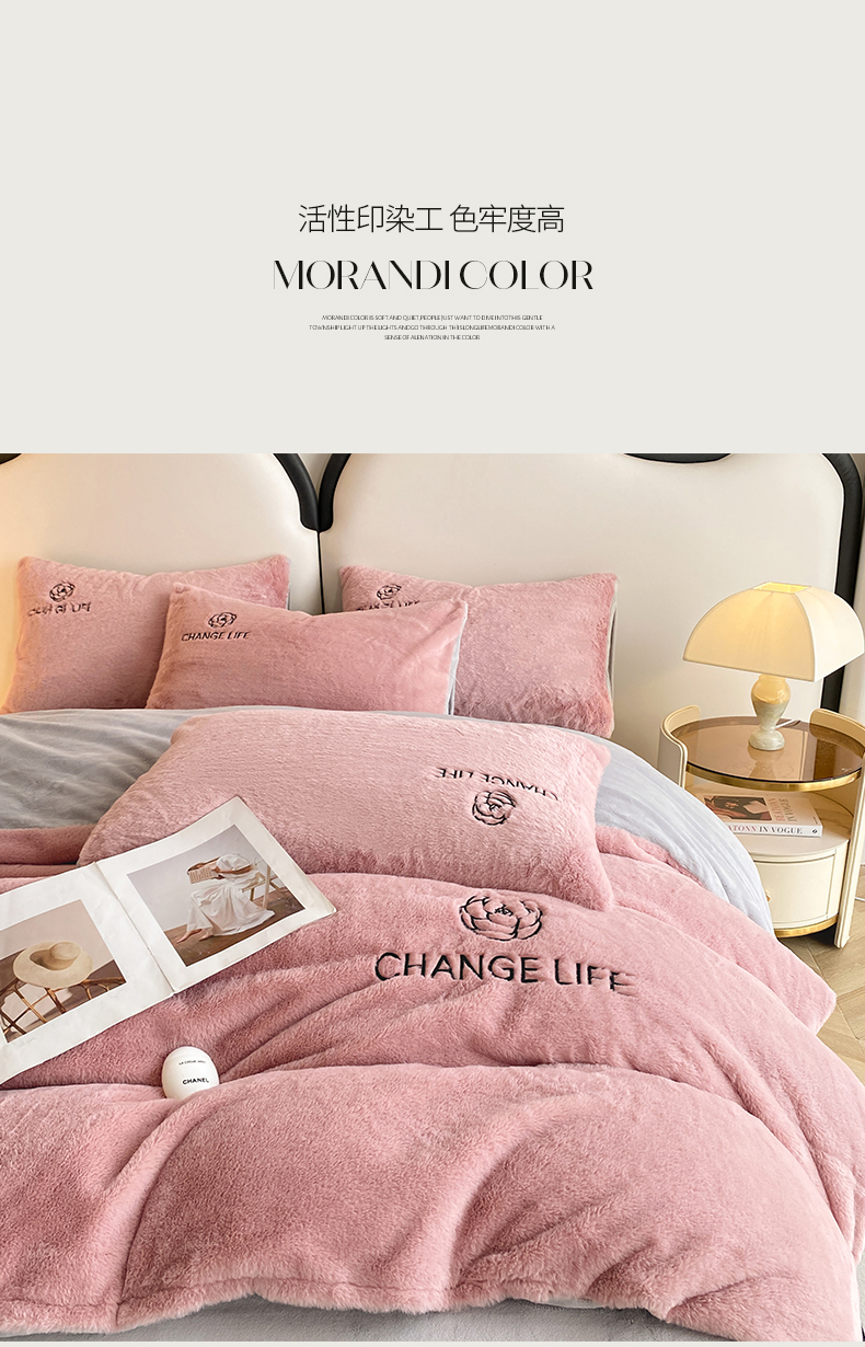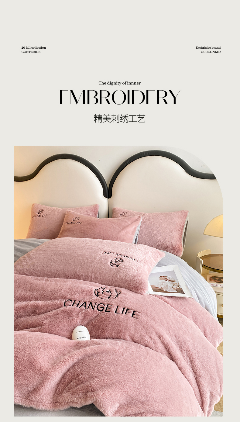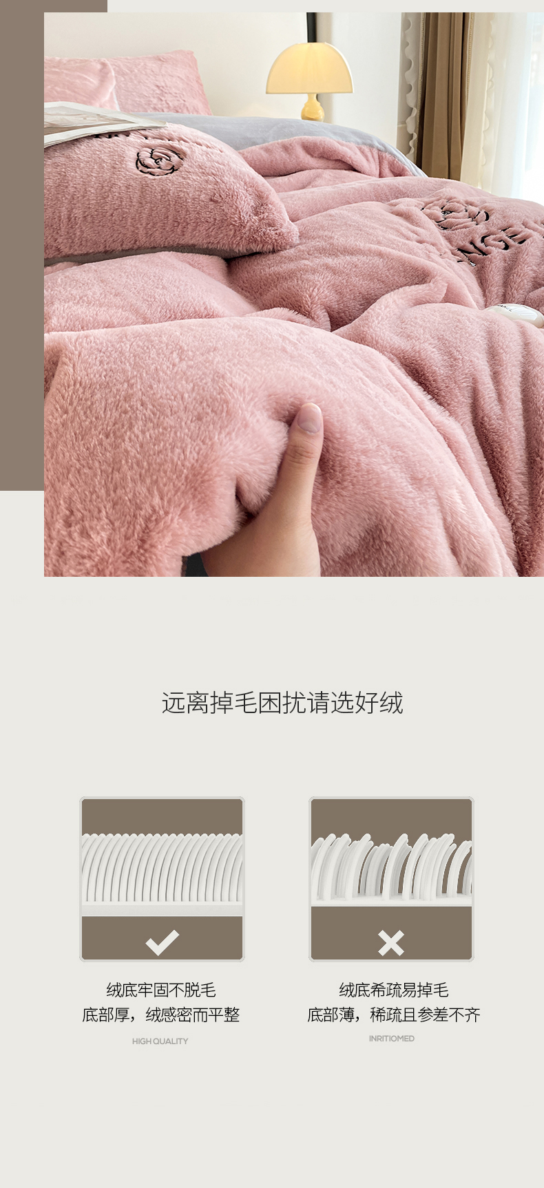 商品名称:澳梵 2023新款【山茶花】小香风刺绣兔兔绒牛奶绒四件 山茶花-豆沙红