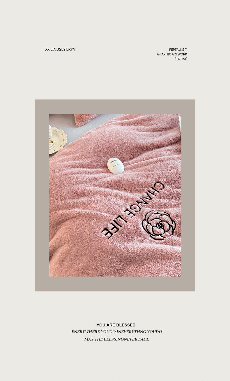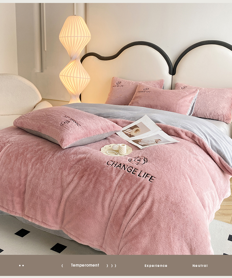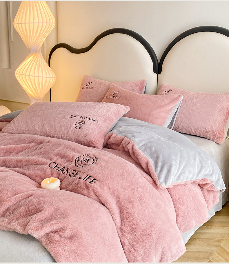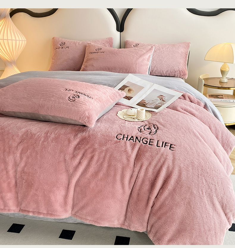 澳梵 2023新款【山茶花】小香风刺绣兔兔绒牛奶绒四件 山茶花-豆沙红
