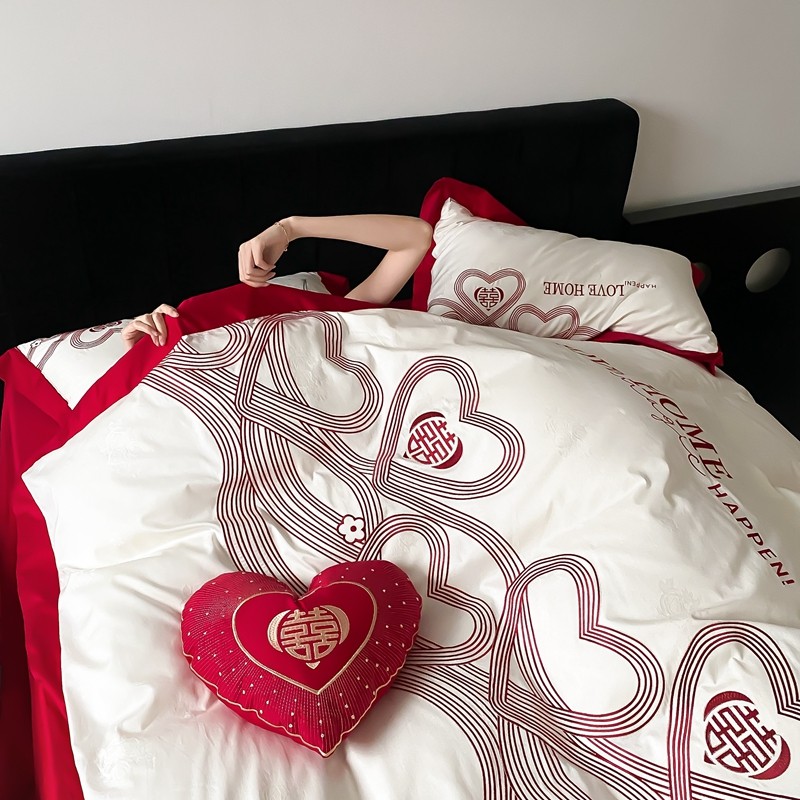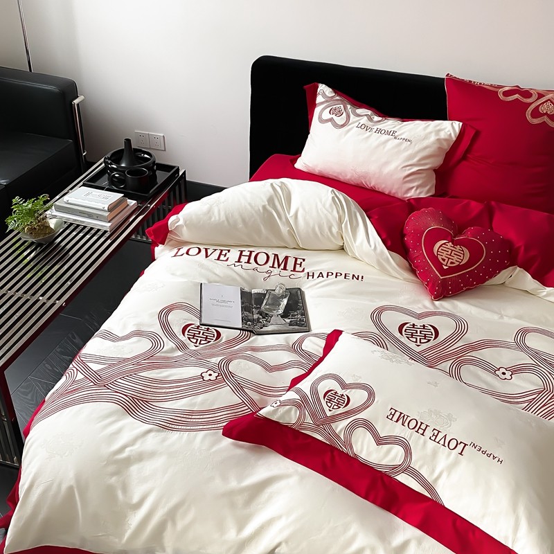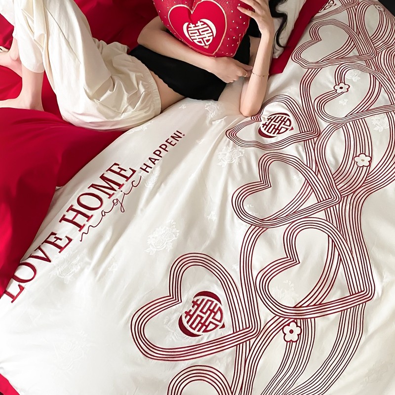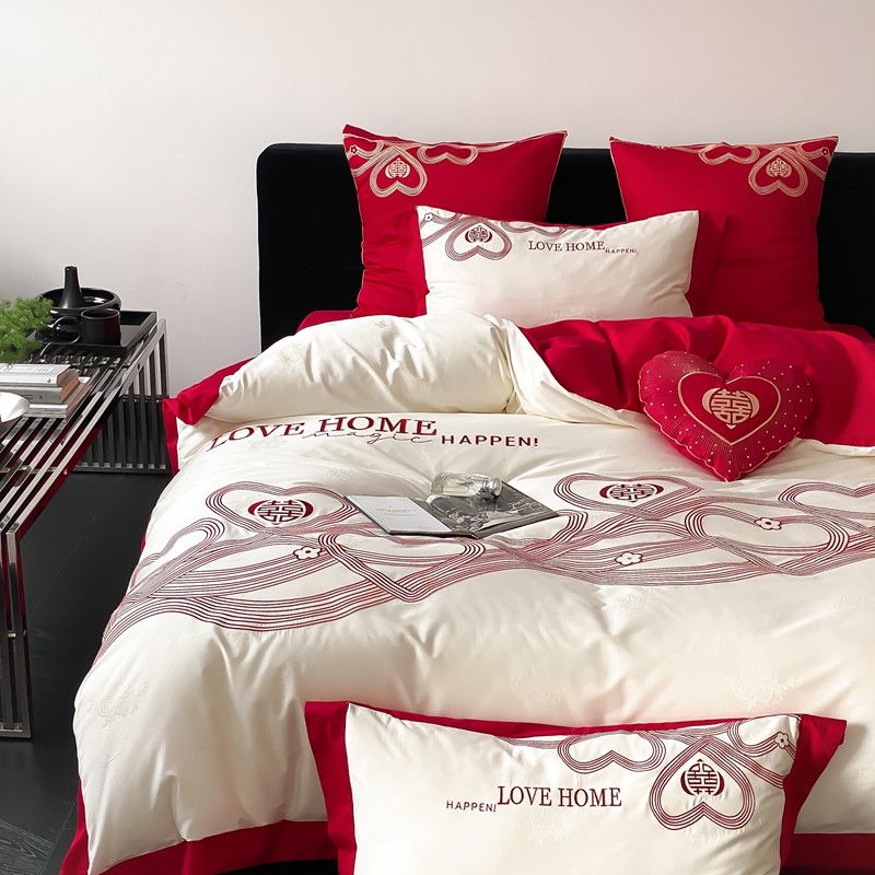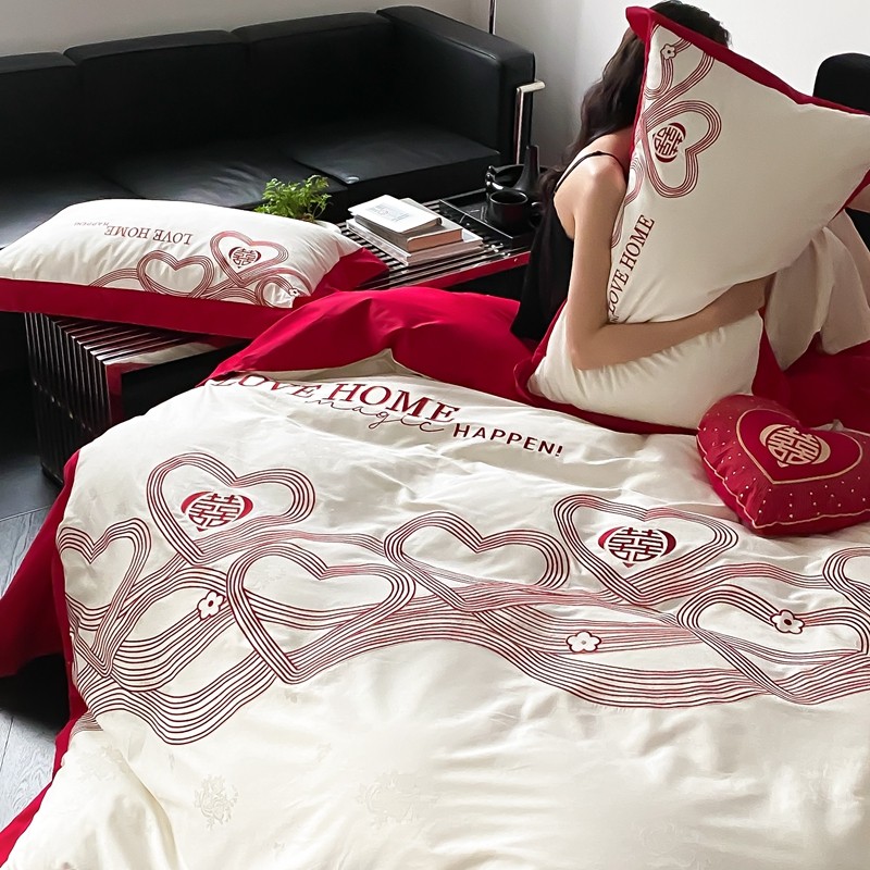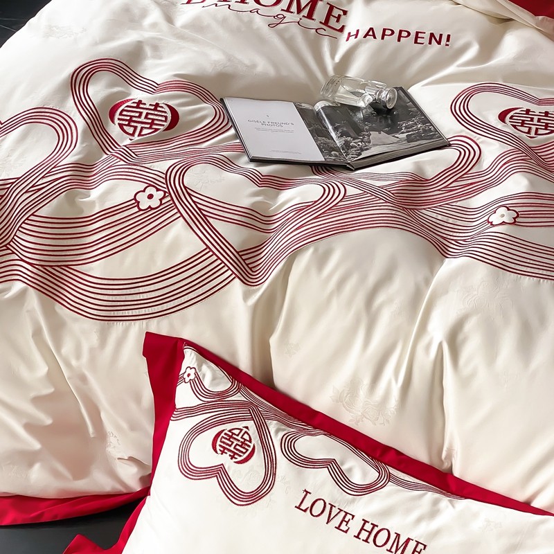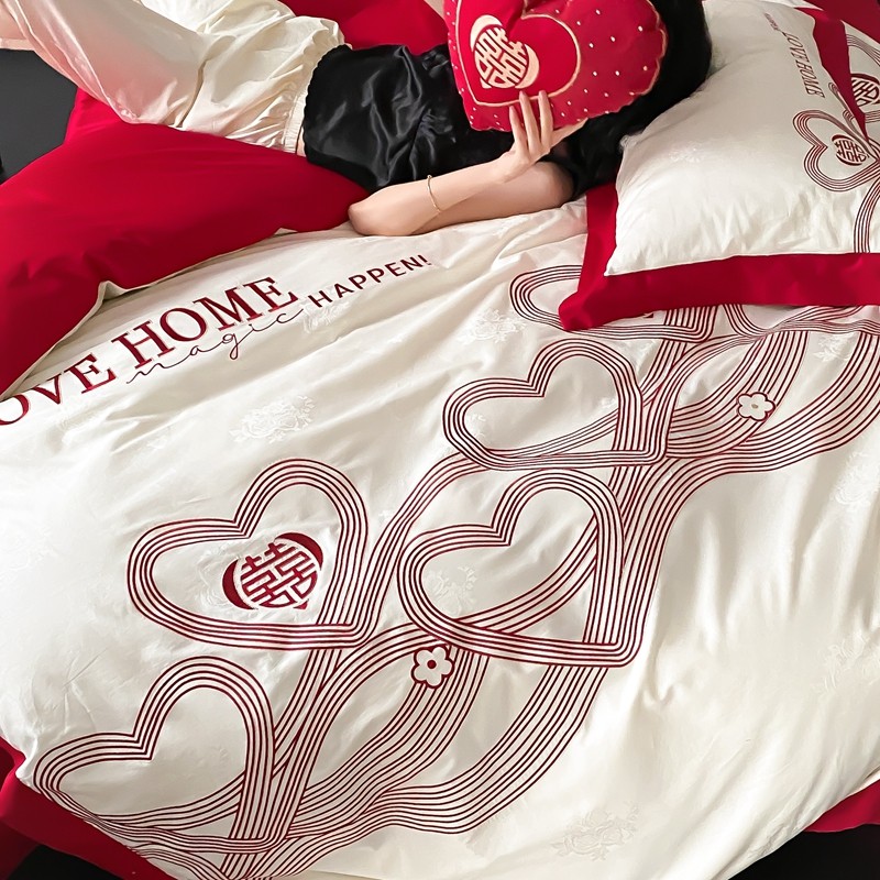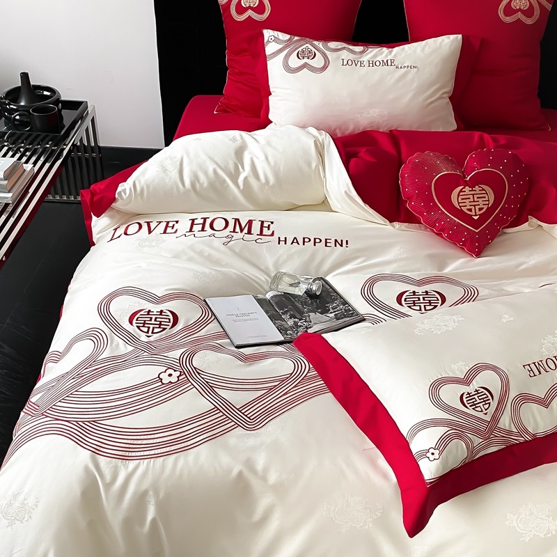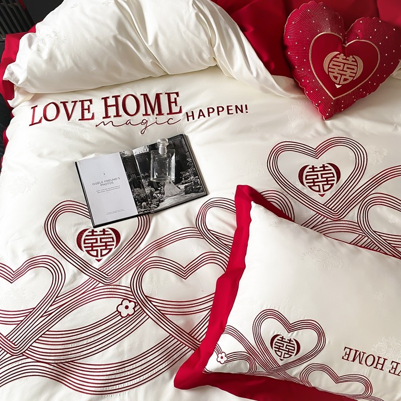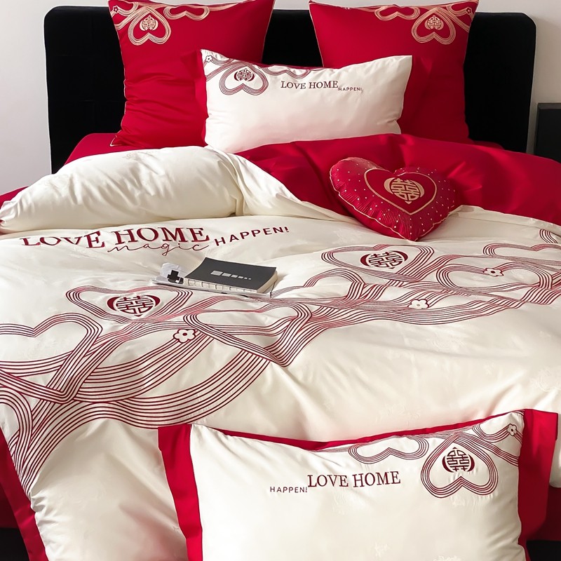 (总)用心 2026年新款双面长绒棉提花婚庆刺绣四件套,喜上喜,禧爱,吉祥