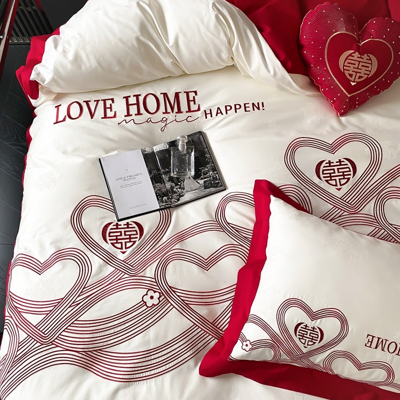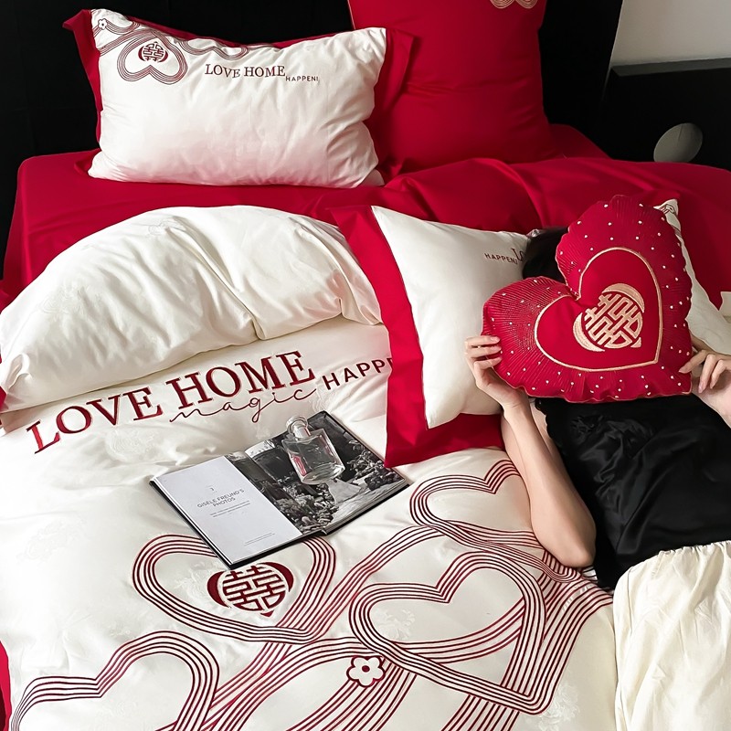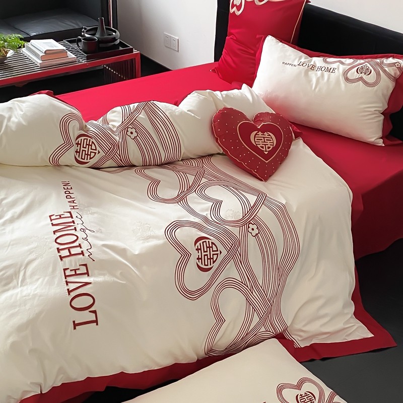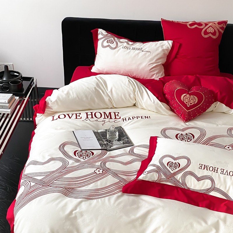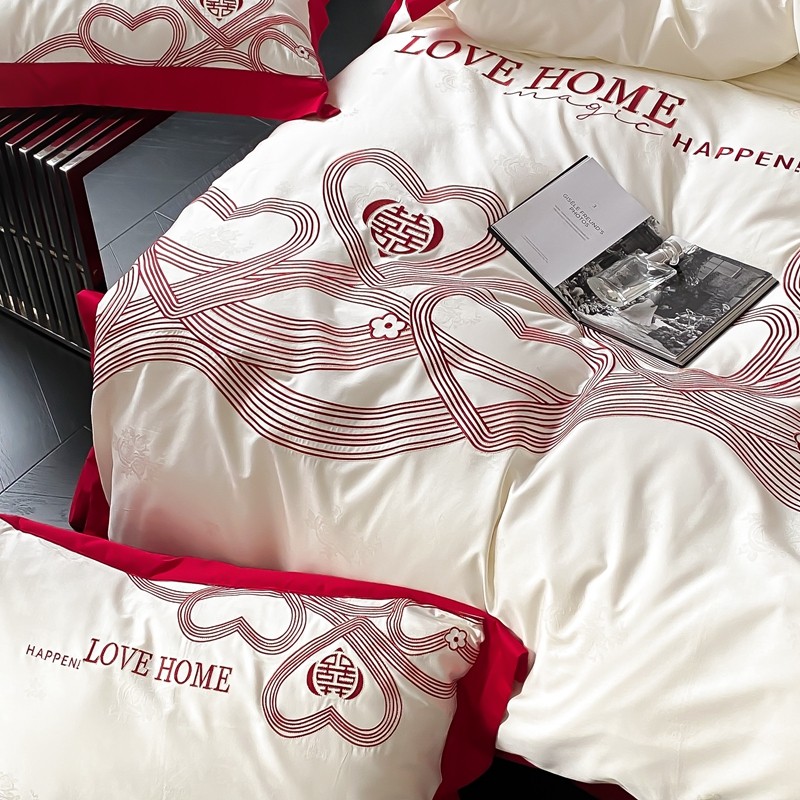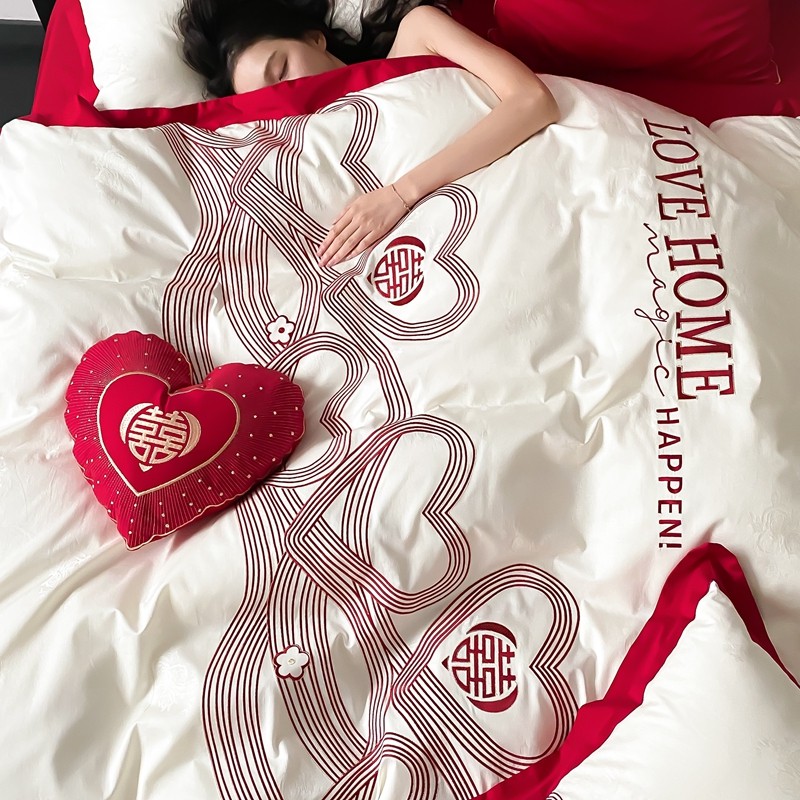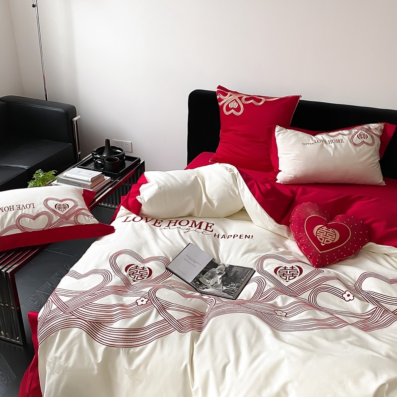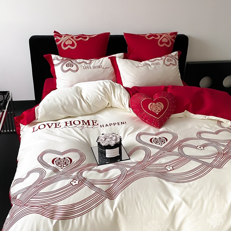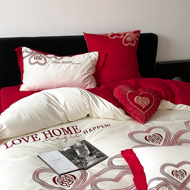(总)用心 2026年新款双面长绒棉提花婚庆刺绣四件套,喜上喜,禧爱,吉祥