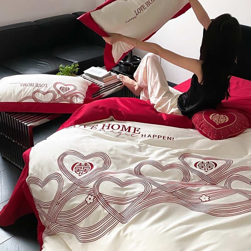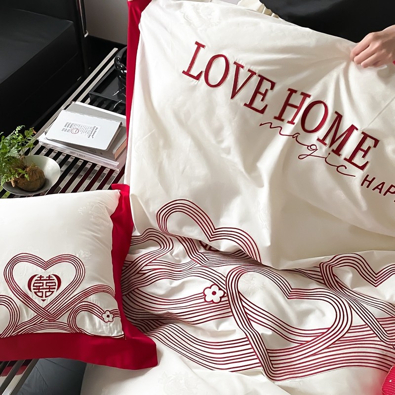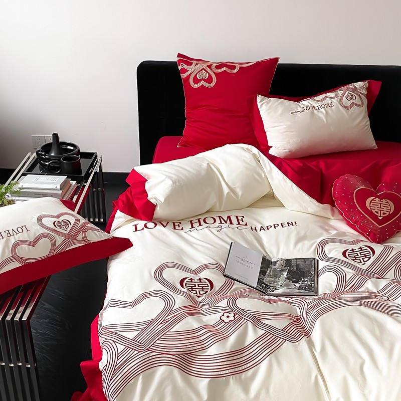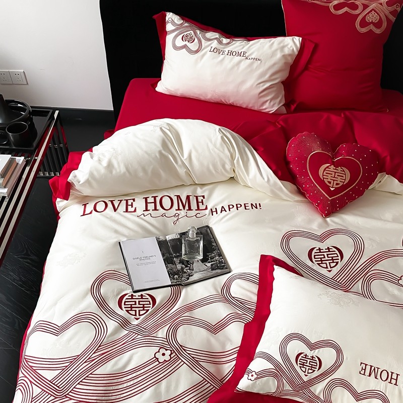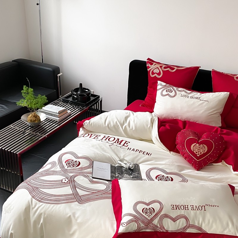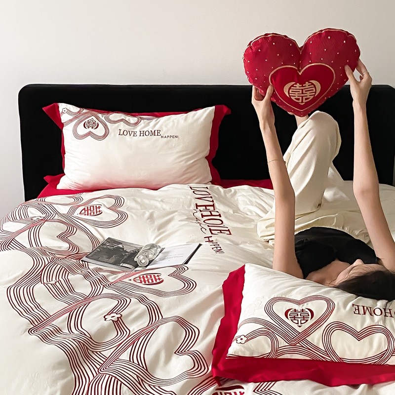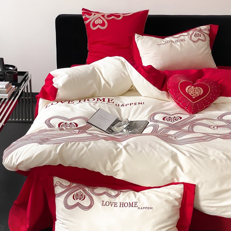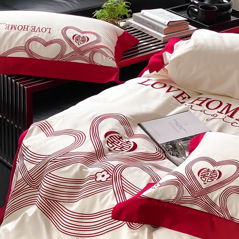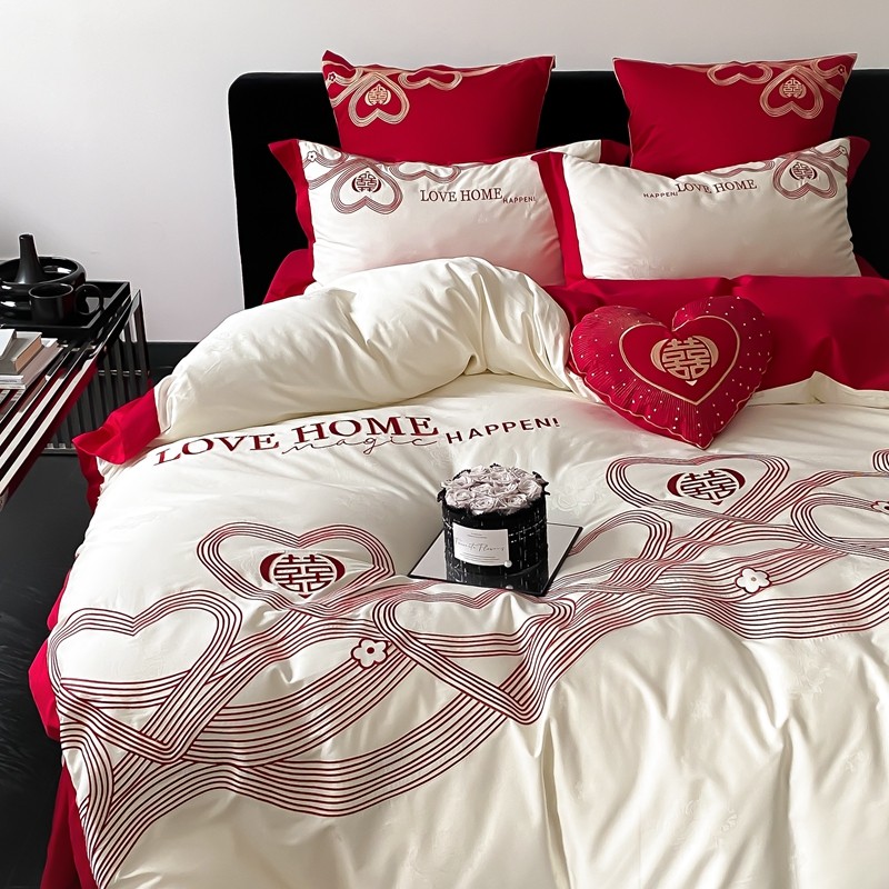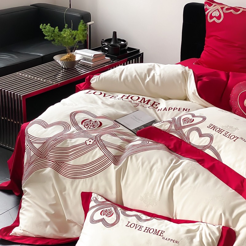 (总)用心 2026年新款双面长绒棉提花婚庆刺绣四件套,喜上喜,禧爱,吉祥