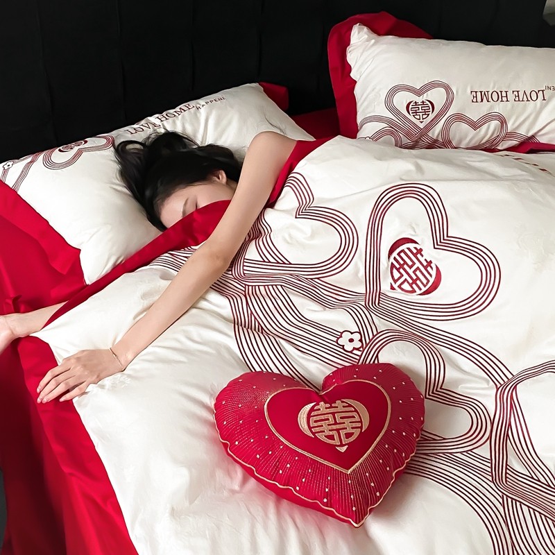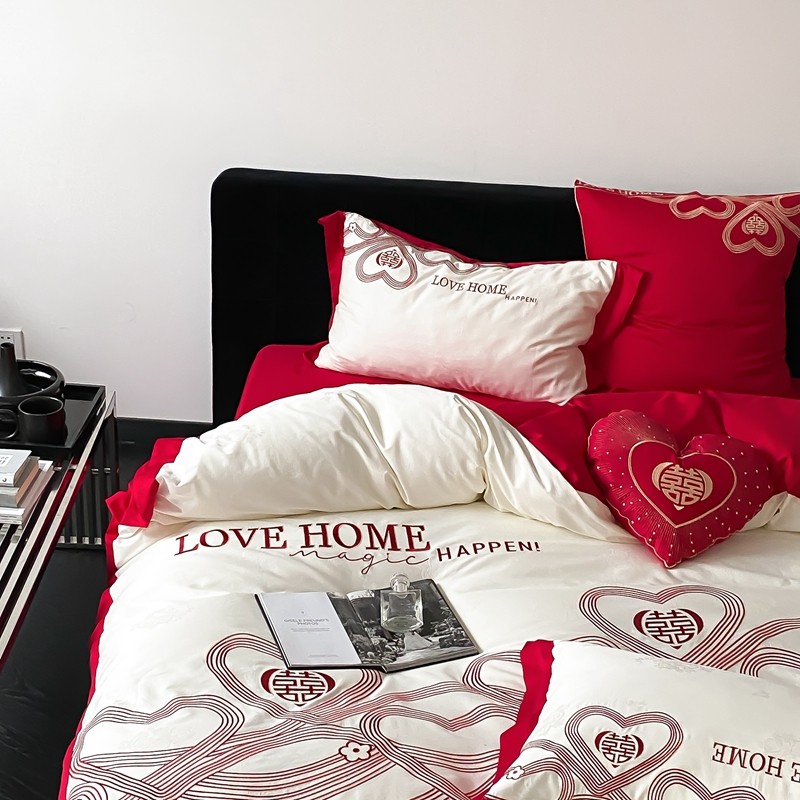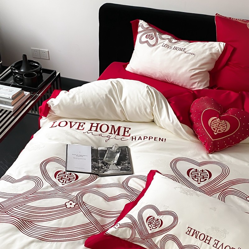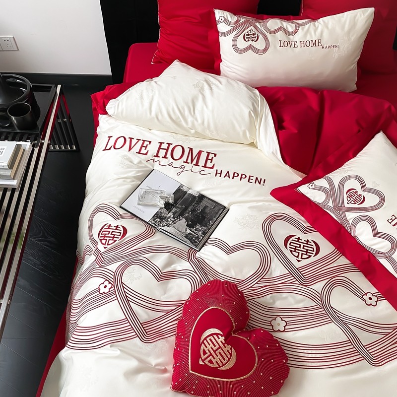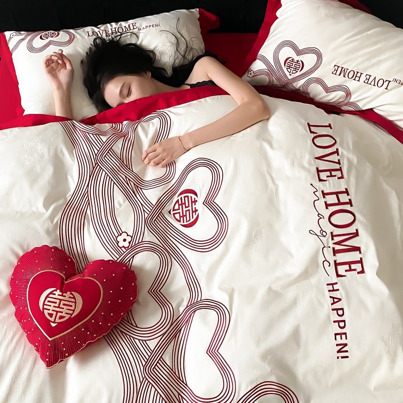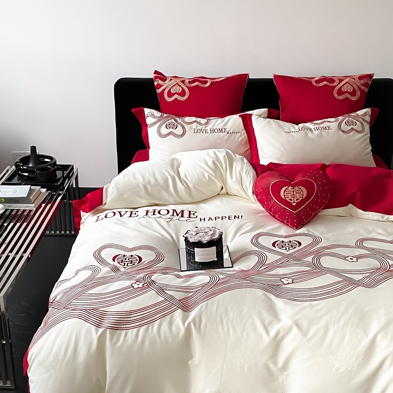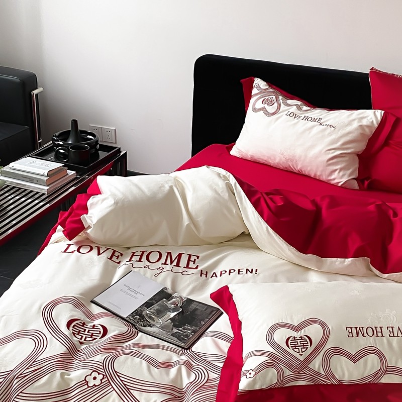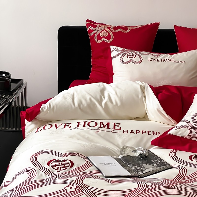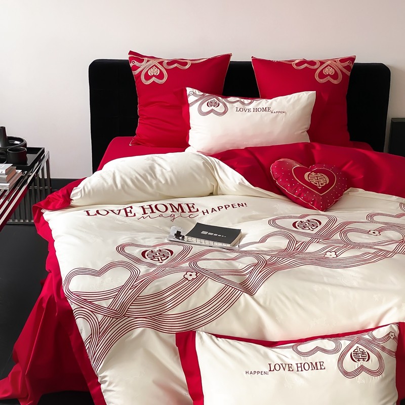 (总)用心 2026年新款双面长绒棉提花婚庆刺绣四件套,喜上喜,禧爱,吉祥