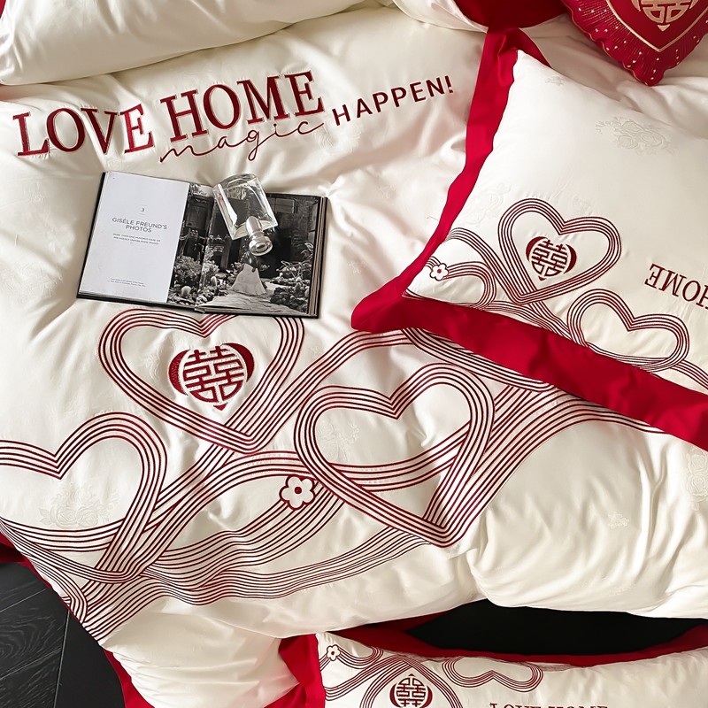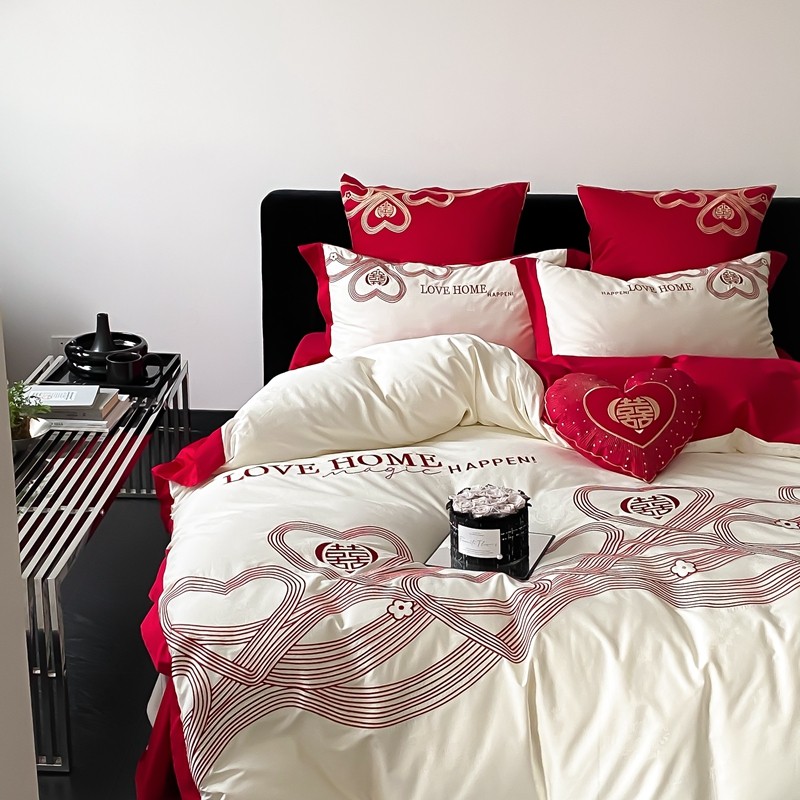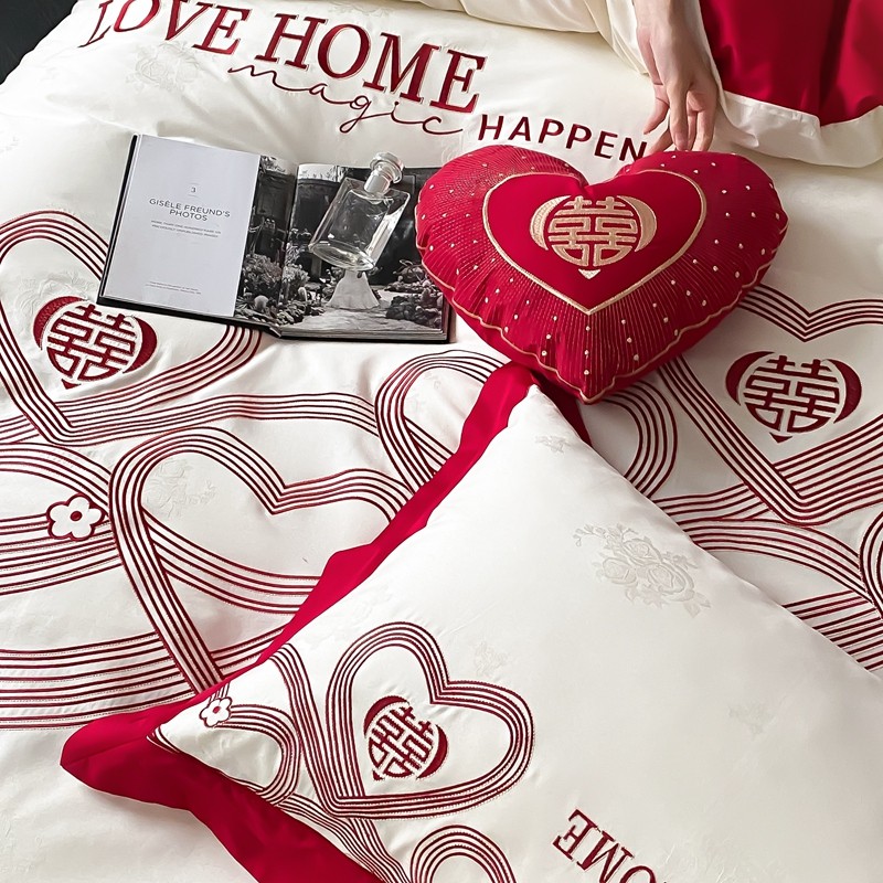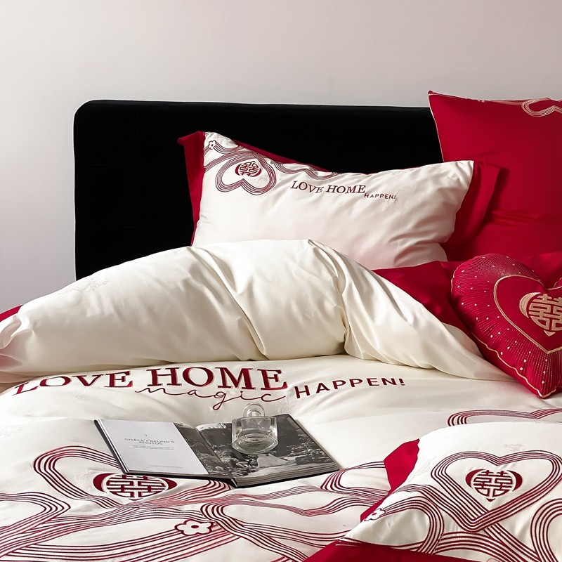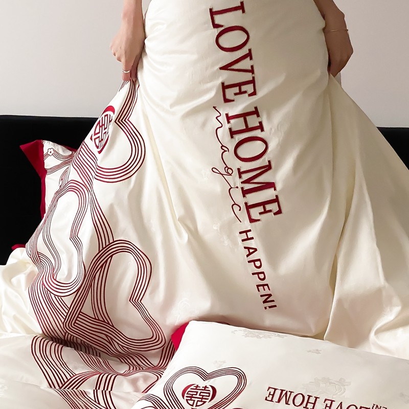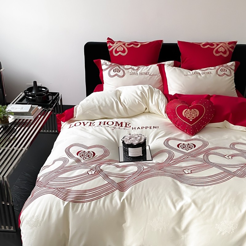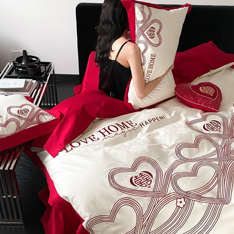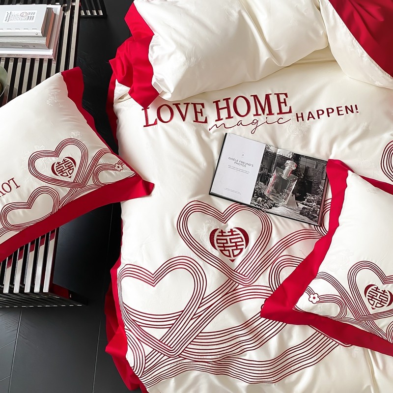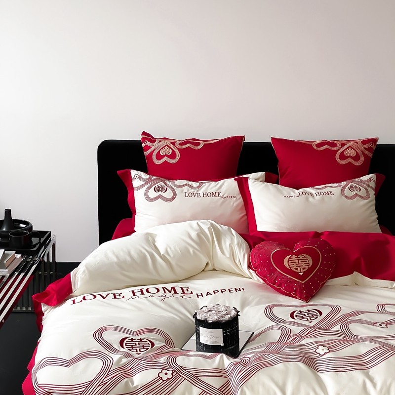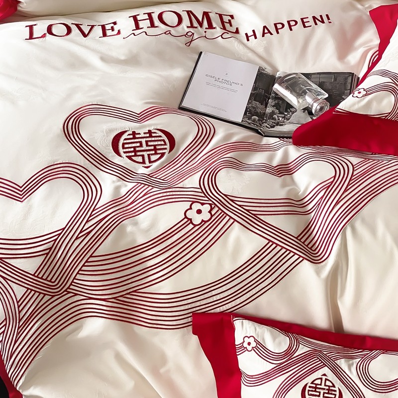 (总)用心 2026年新款双面长绒棉提花婚庆刺绣四件套,喜上喜,禧爱,吉祥