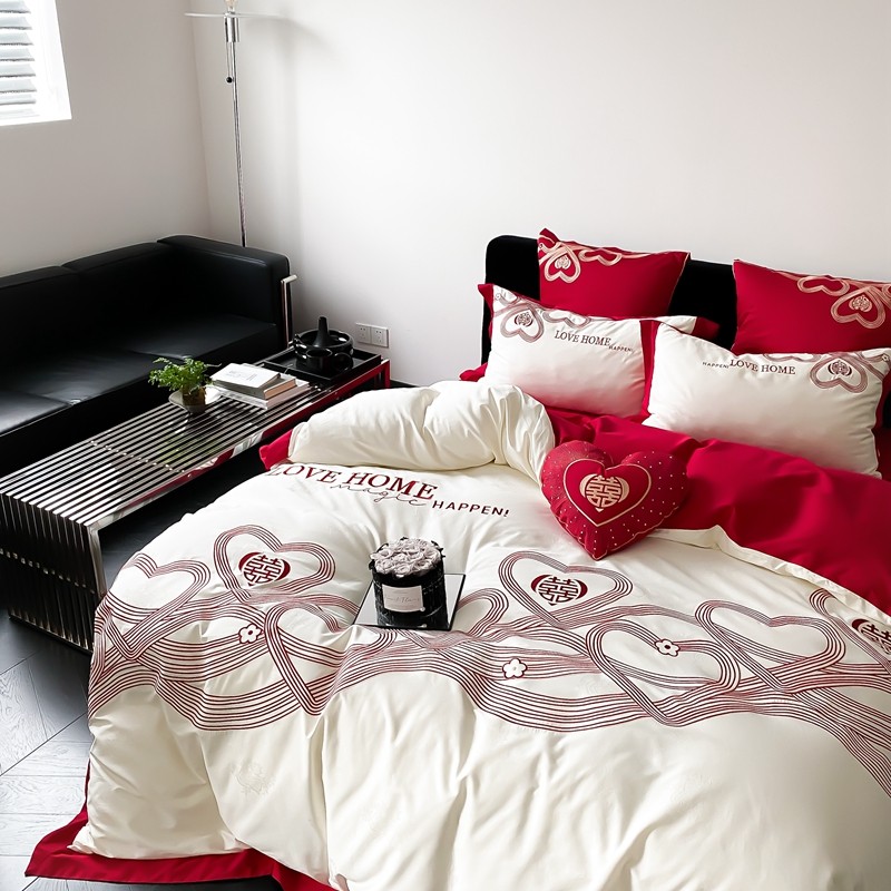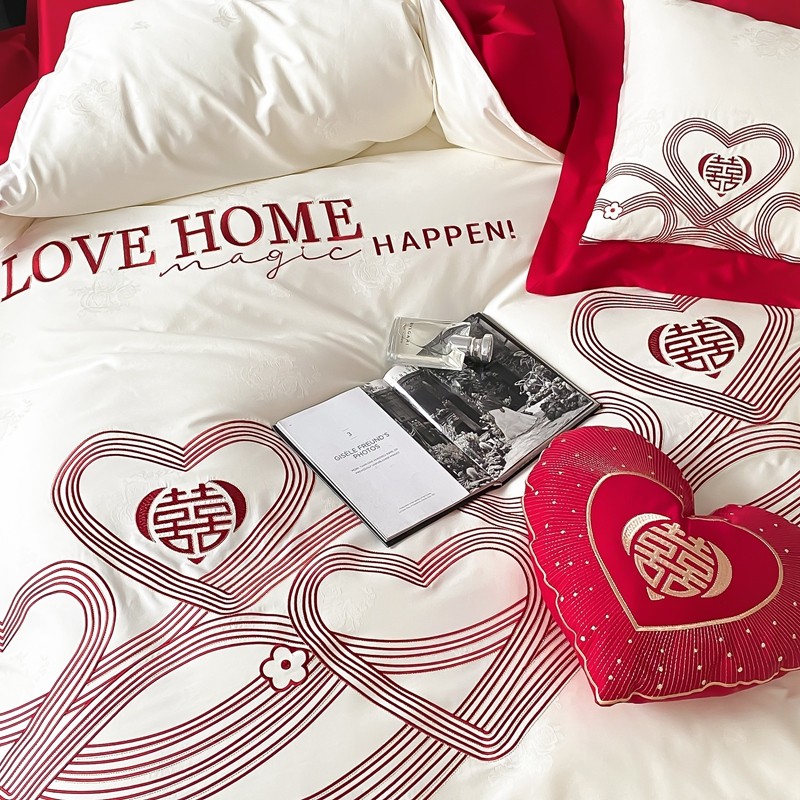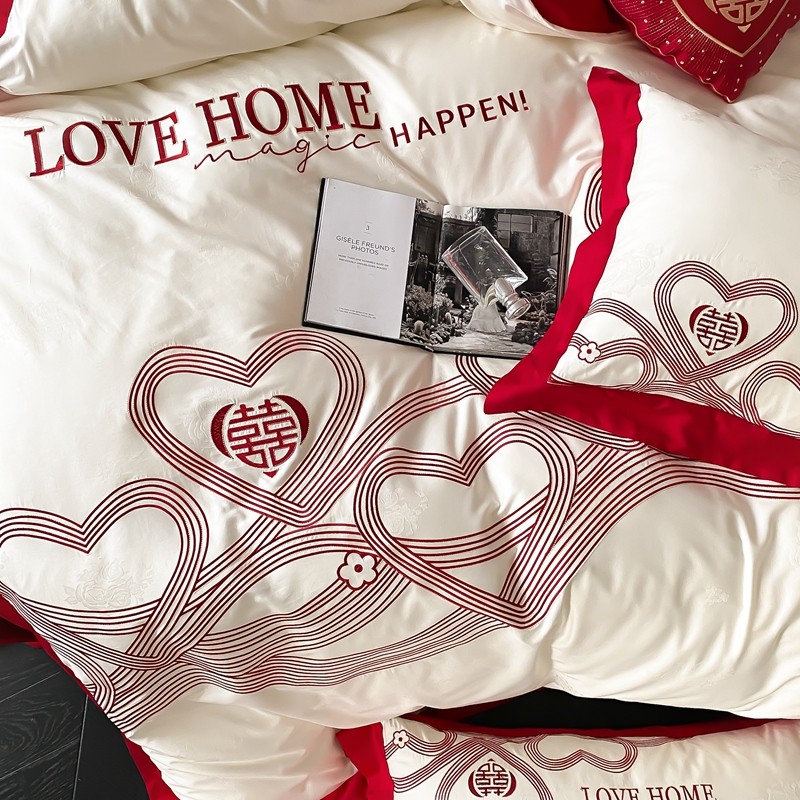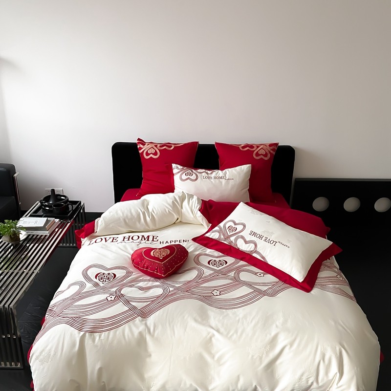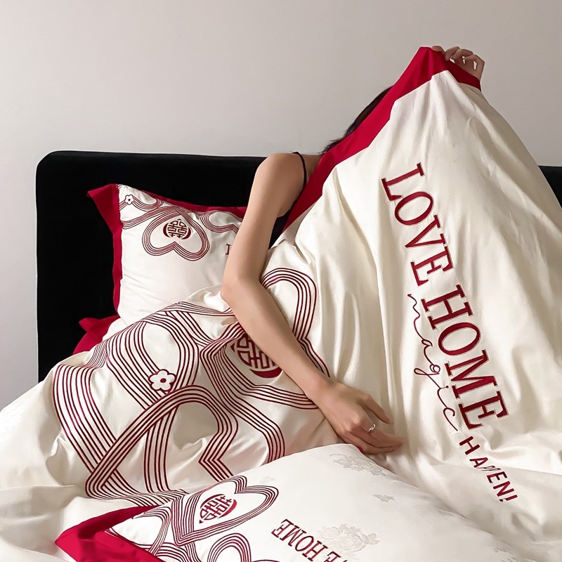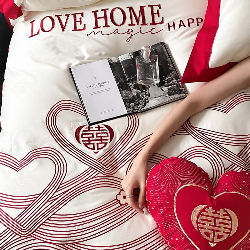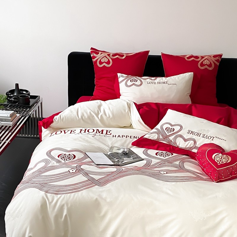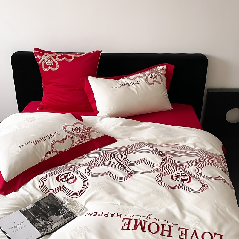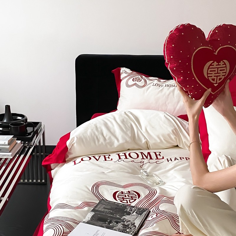 (总)用心 2026年新款双面长绒棉提花婚庆刺绣四件套,喜上喜,禧爱,吉祥